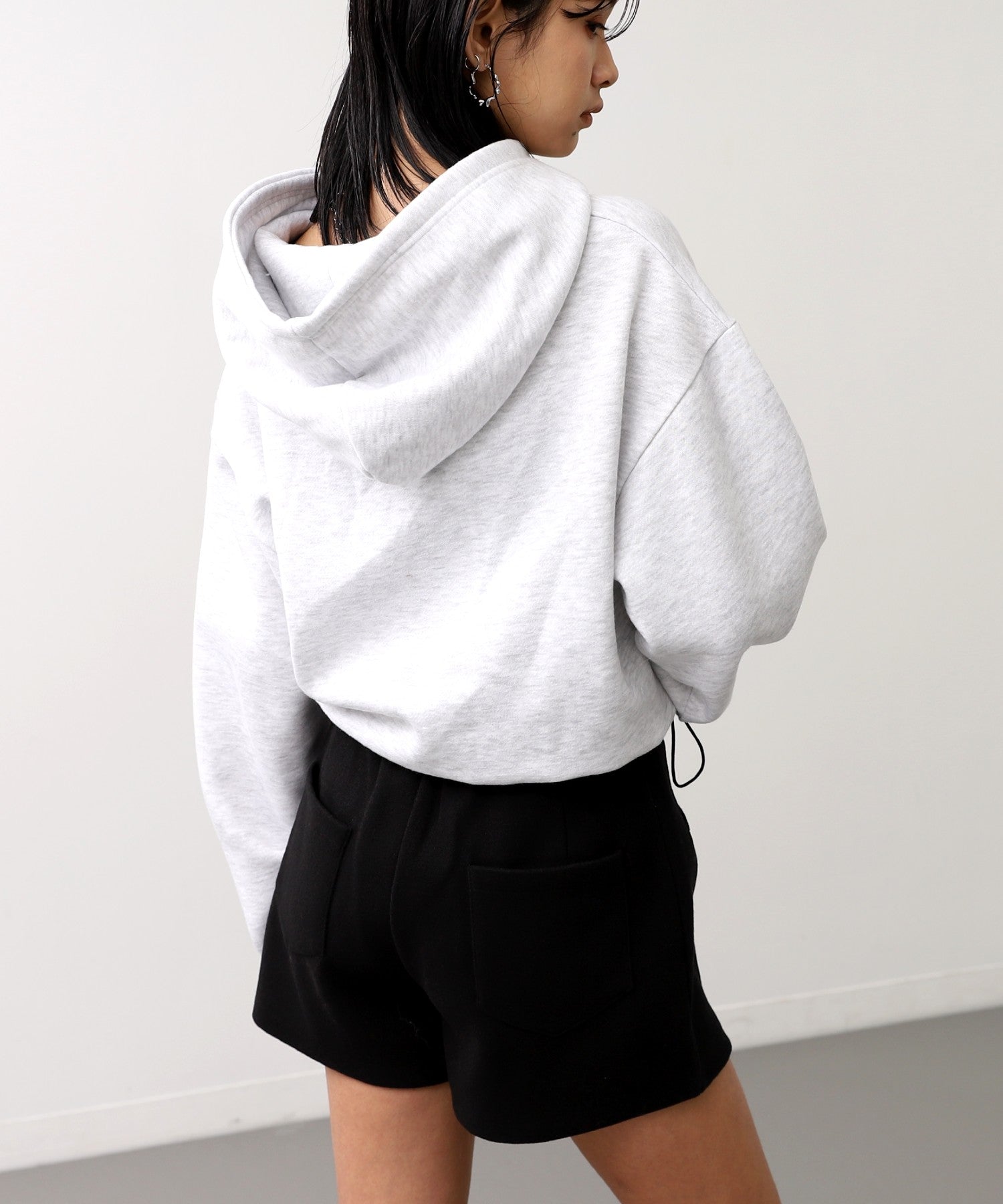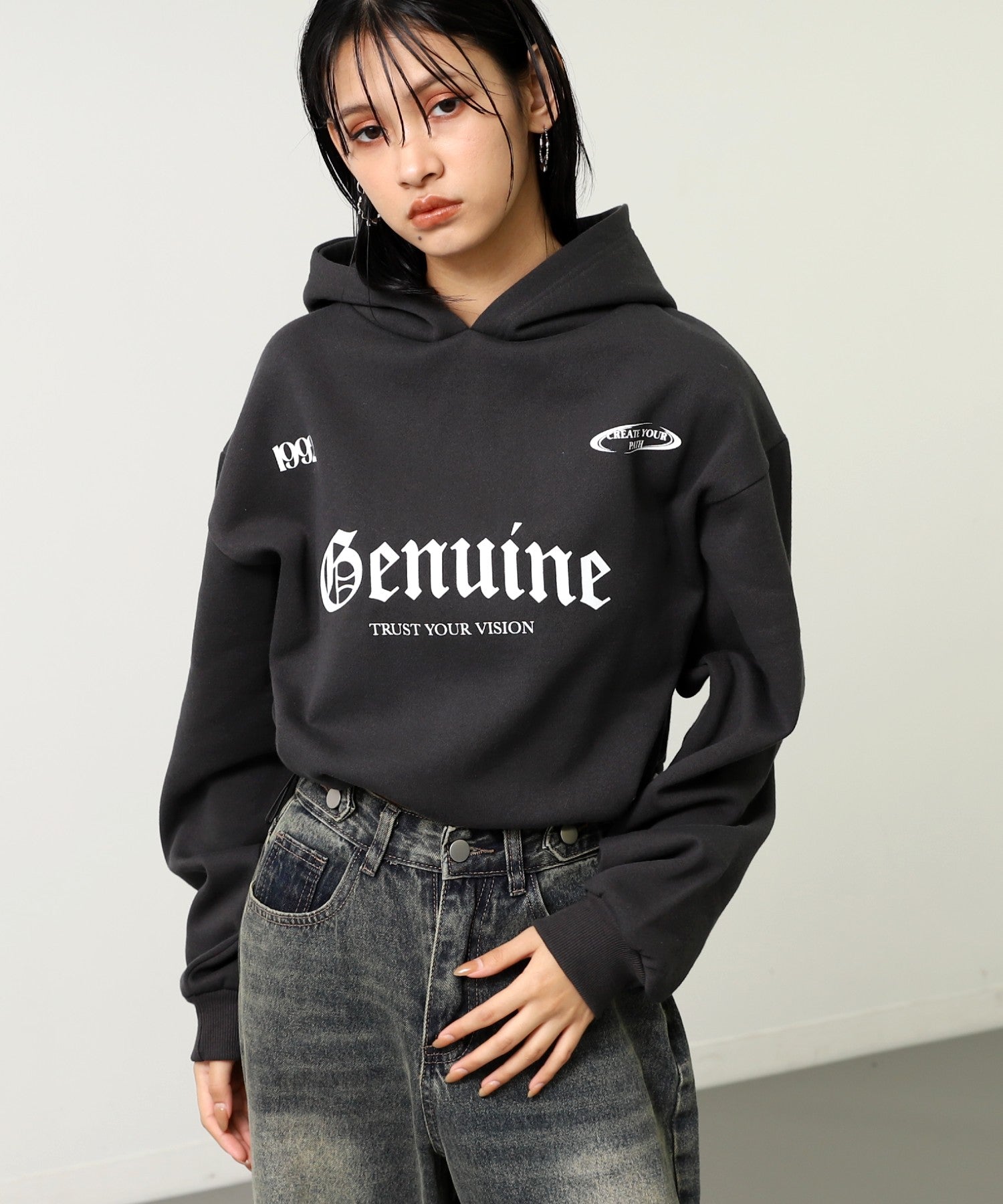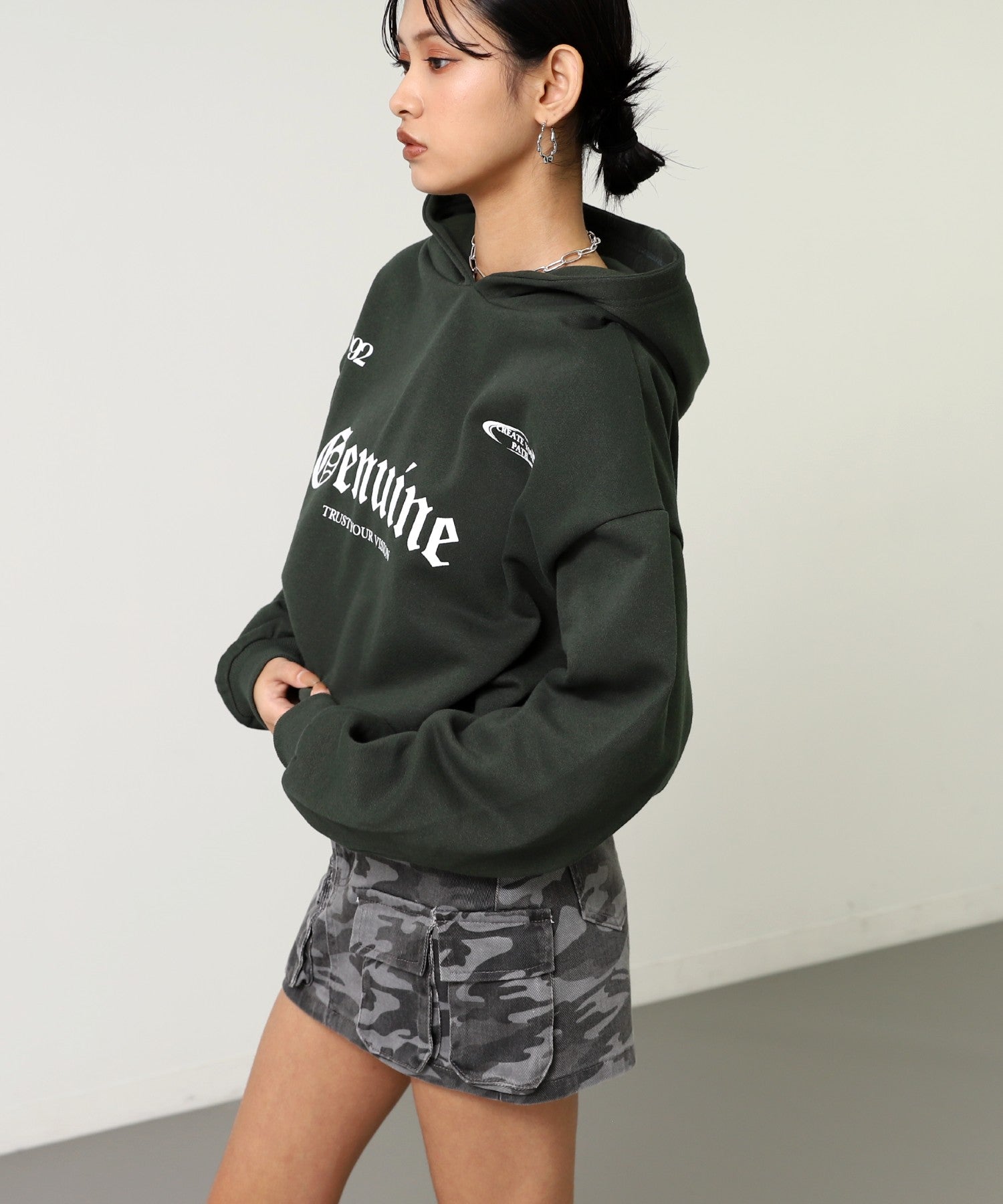 存在感を放つロゴが魅せる、都会的クロップドフーディー