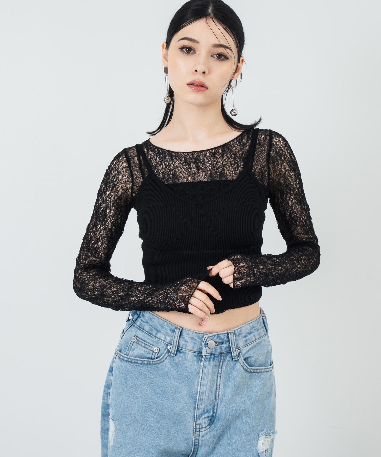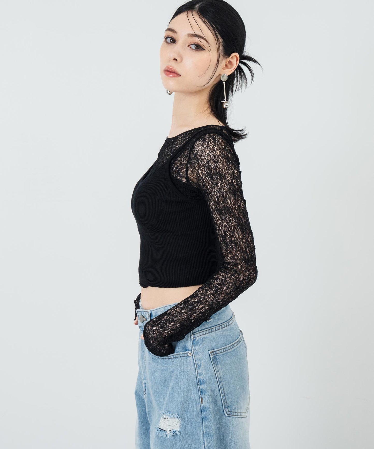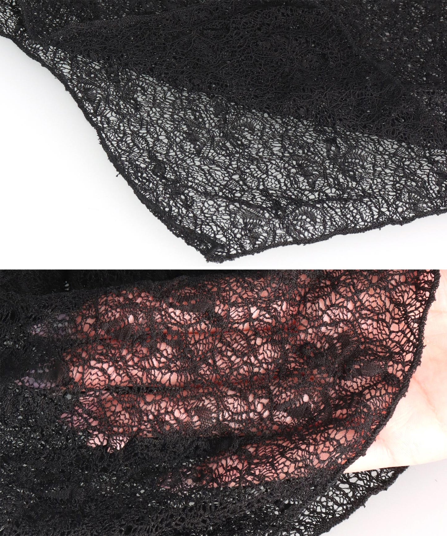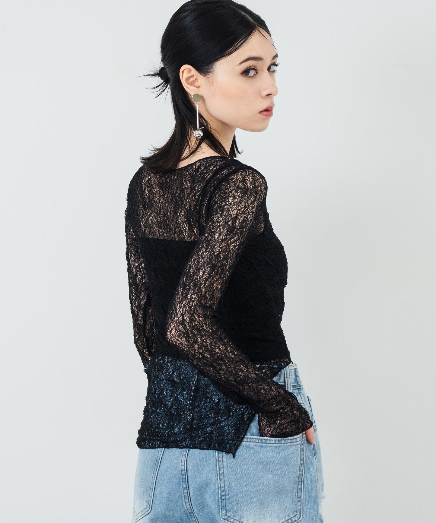 繊細なレースが全体にあしらわれた、華やかでありながらも主張しすぎないシアートップス。