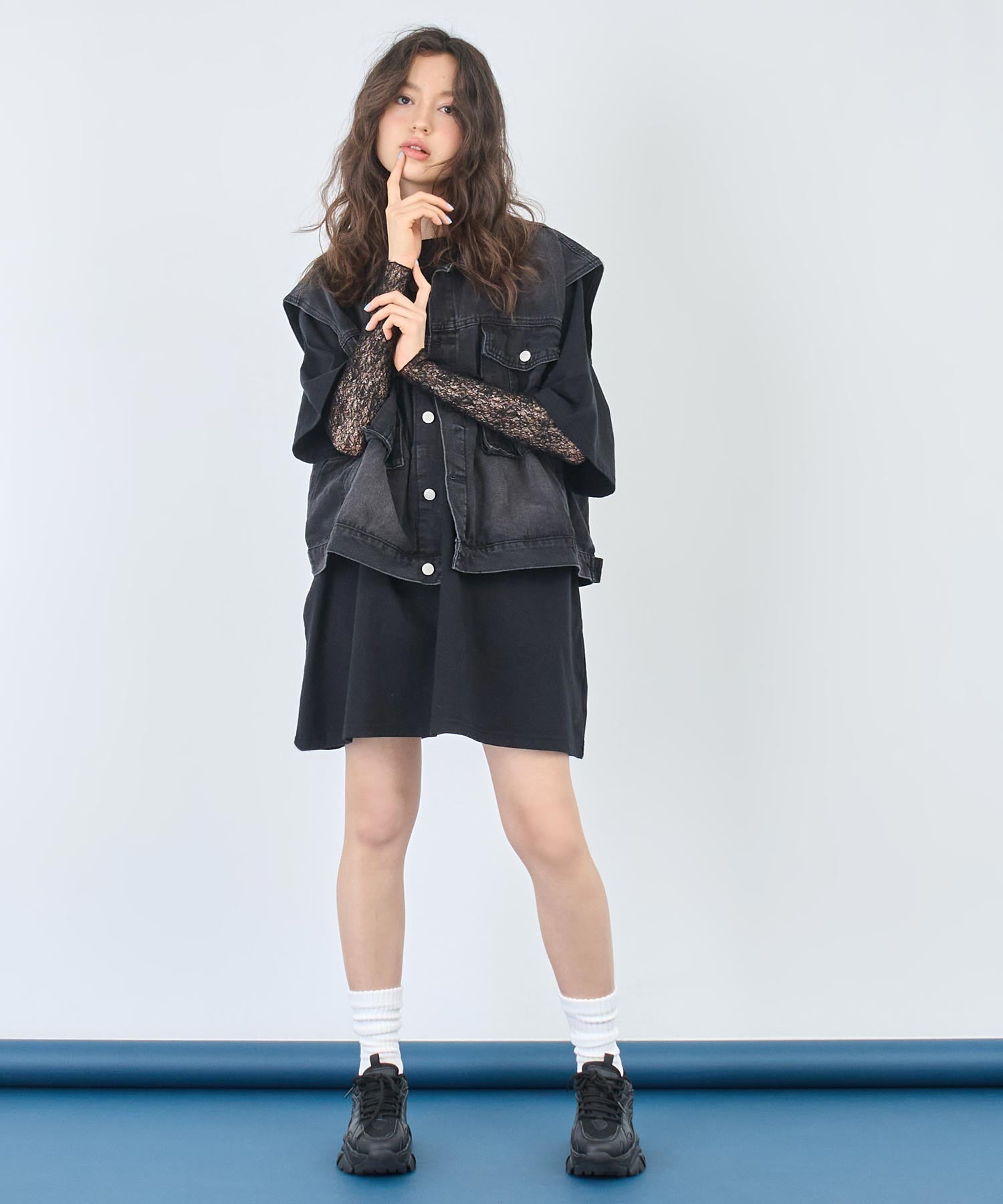 スカート レイヤード デザイン ワイド デニム パンツ(152-5709)