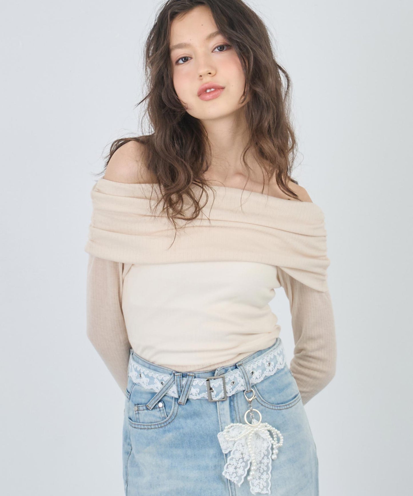 自然体の美しさを引き出すオフショルトップスが、日常に華やぎをプラス。