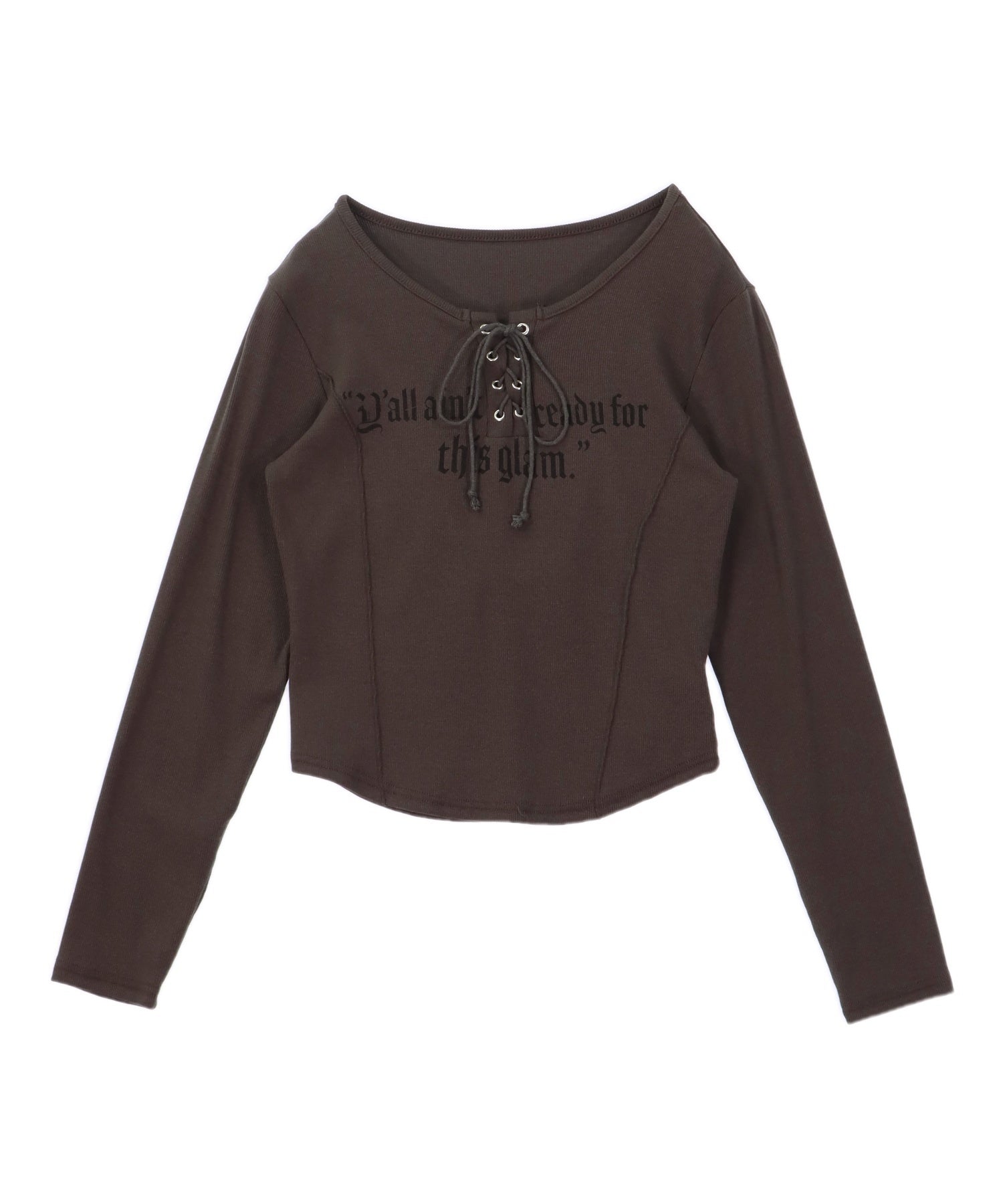 プリント レースアップ コルセット リブトップス カットソー 153-5950