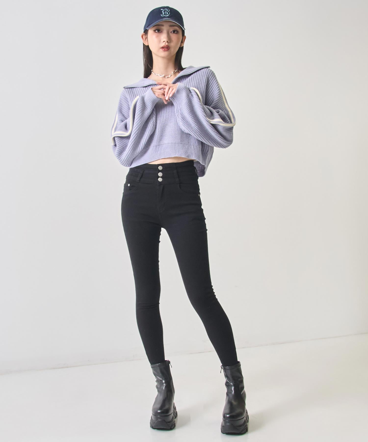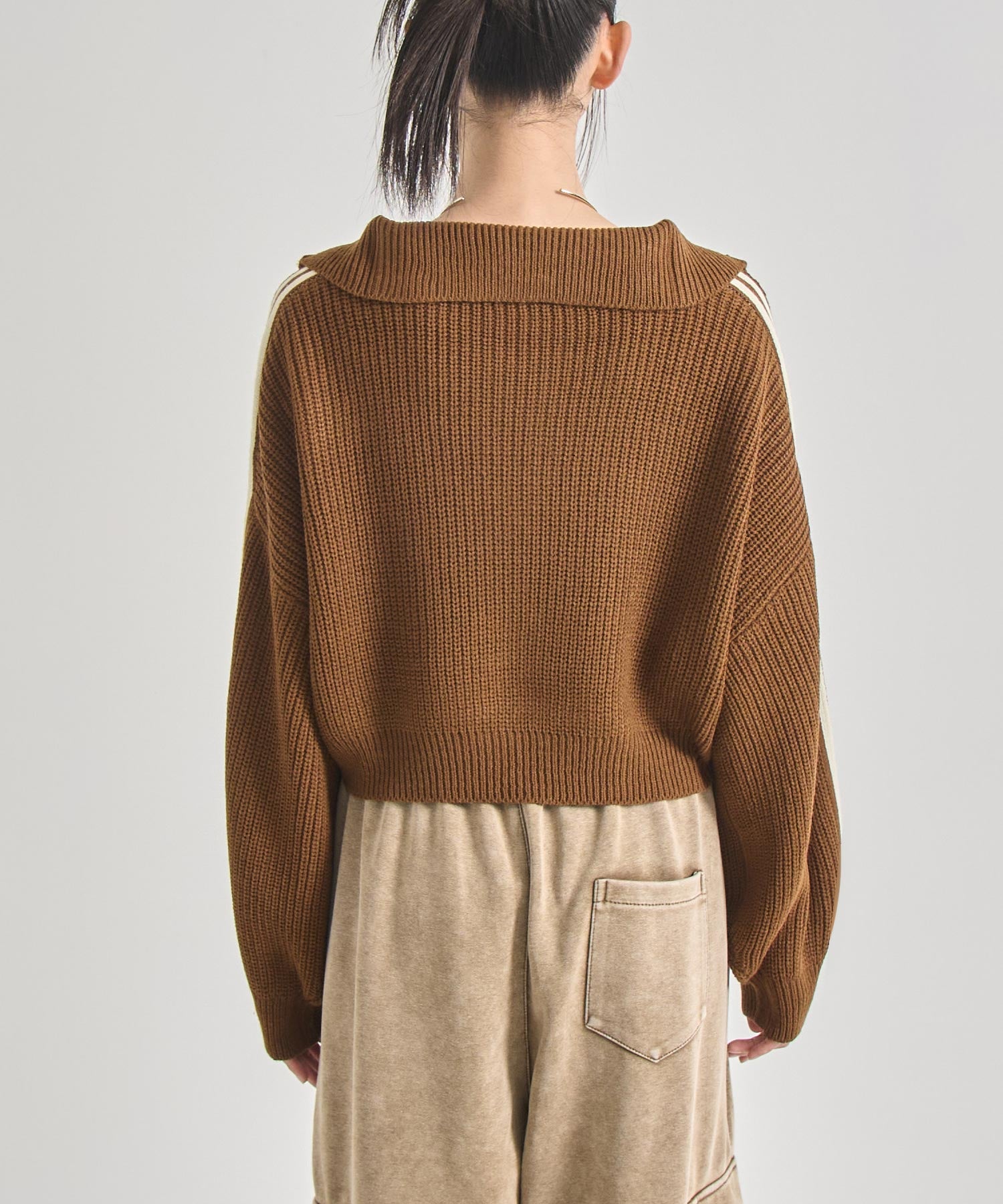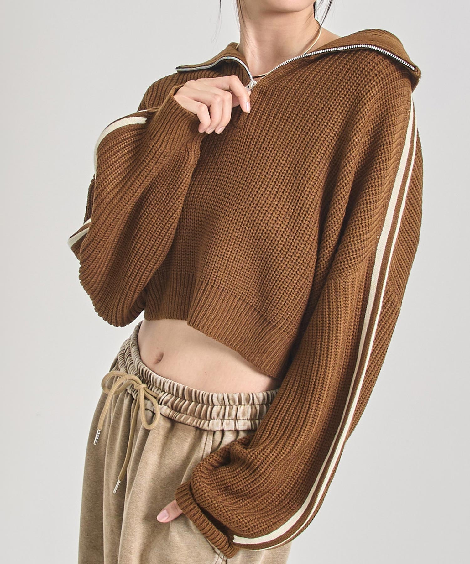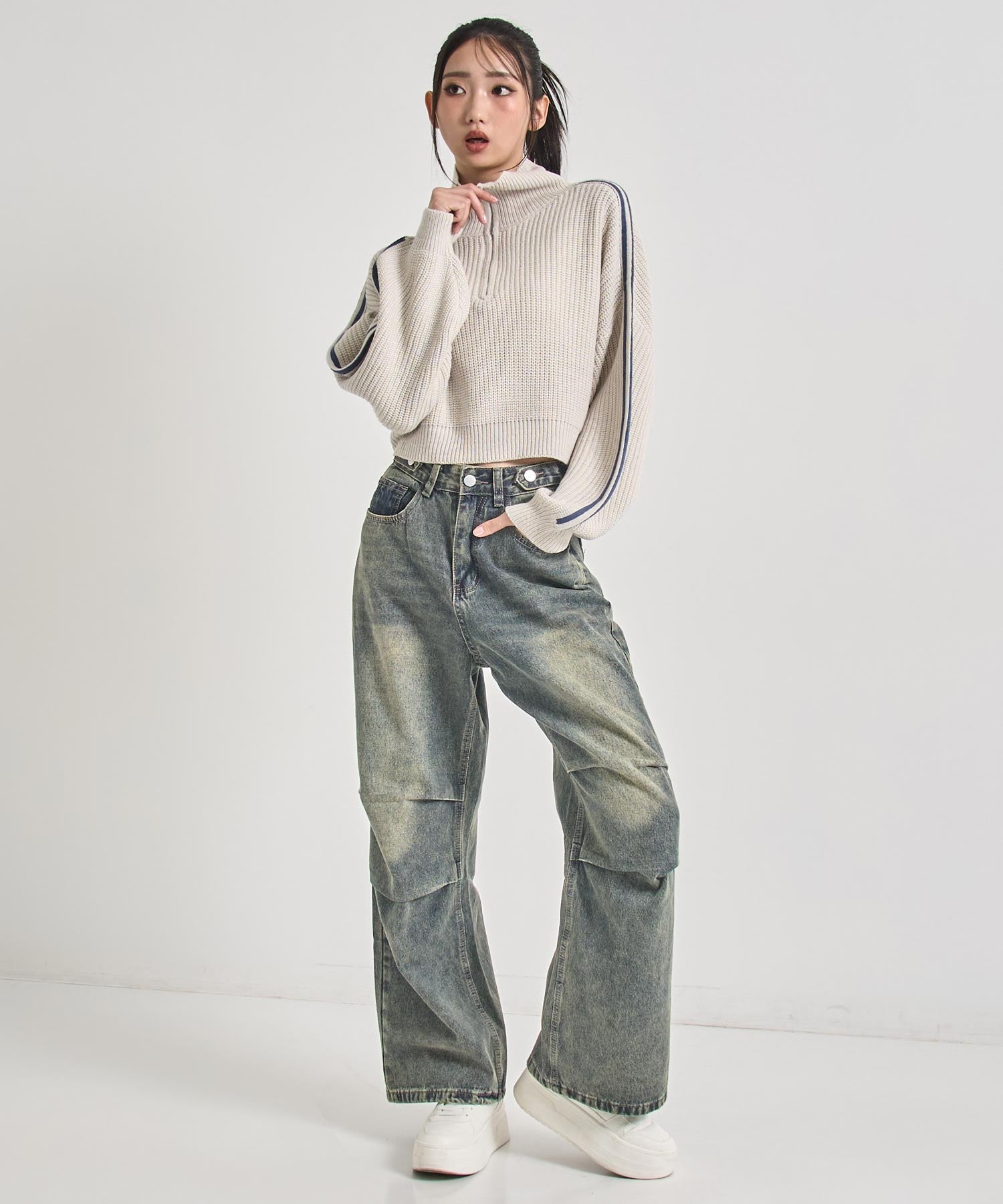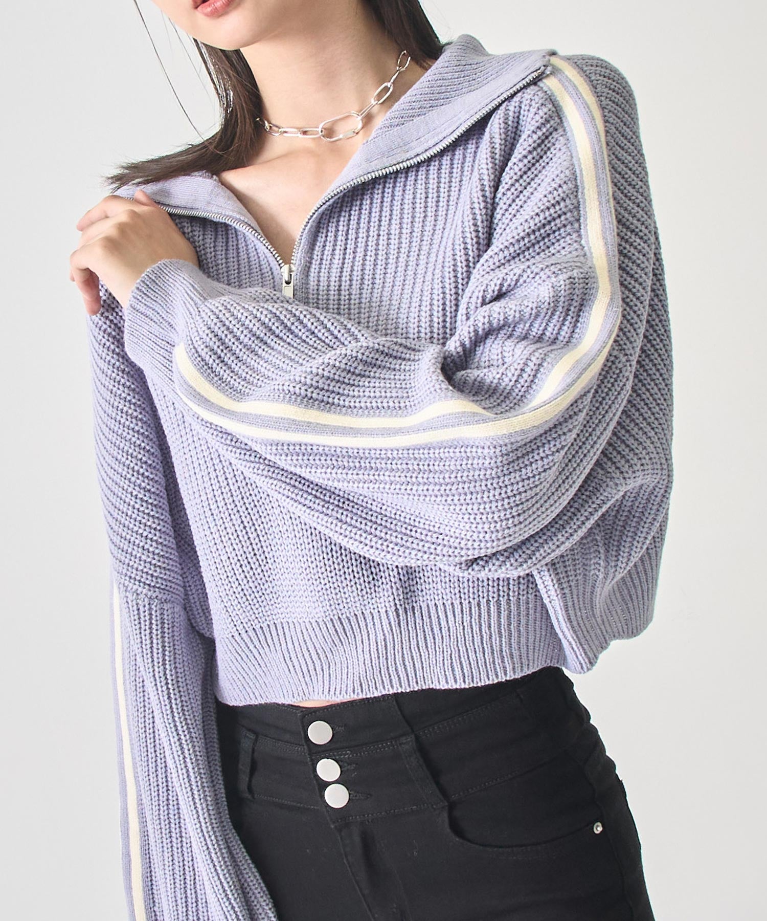 ストリート×ガーリーな抜け感を纏う、ラインで差をつけるハーフジップニット。