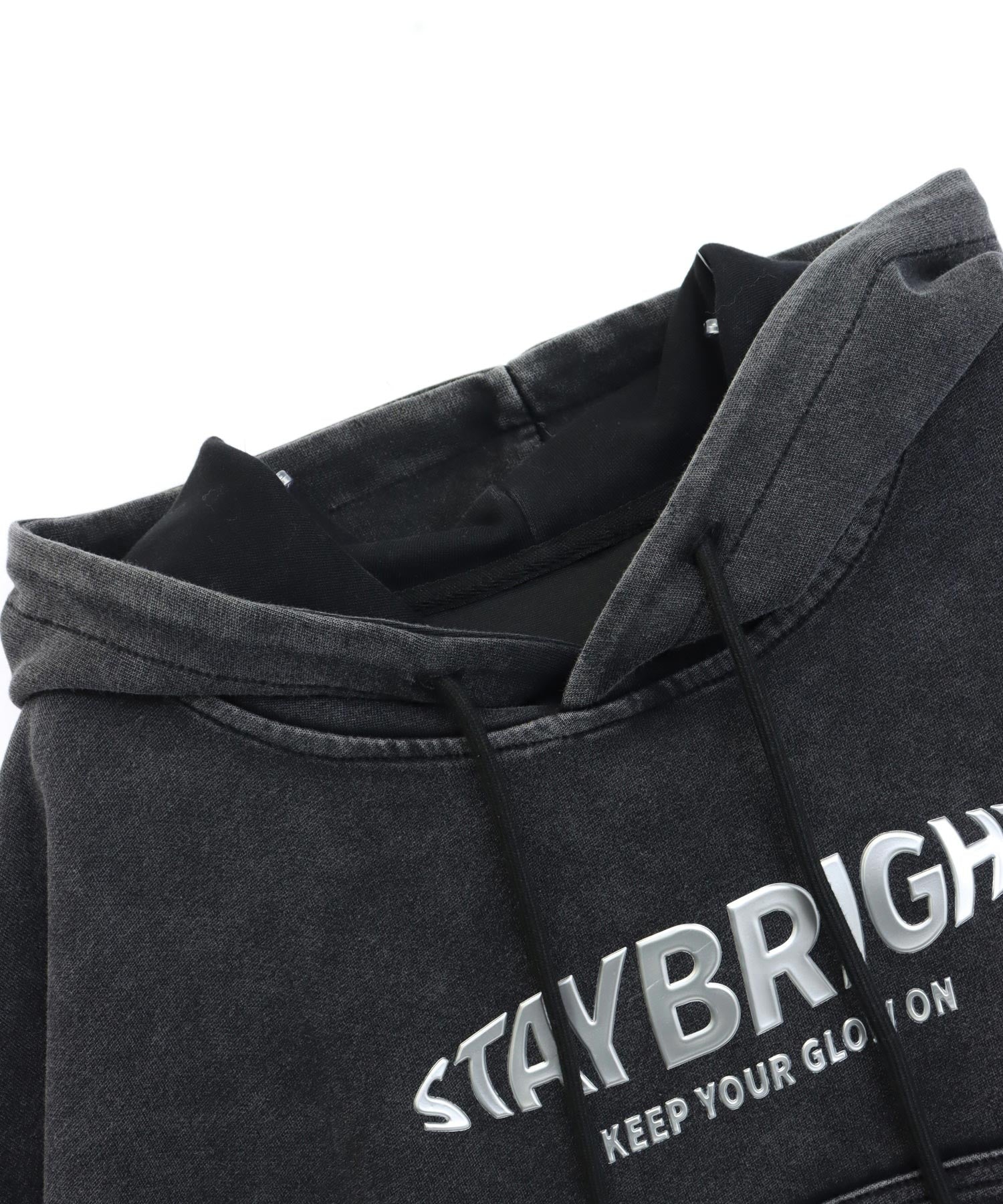 ヴィンテージライクな風合いに、メタルプリントが映えるスウェットフーディー。