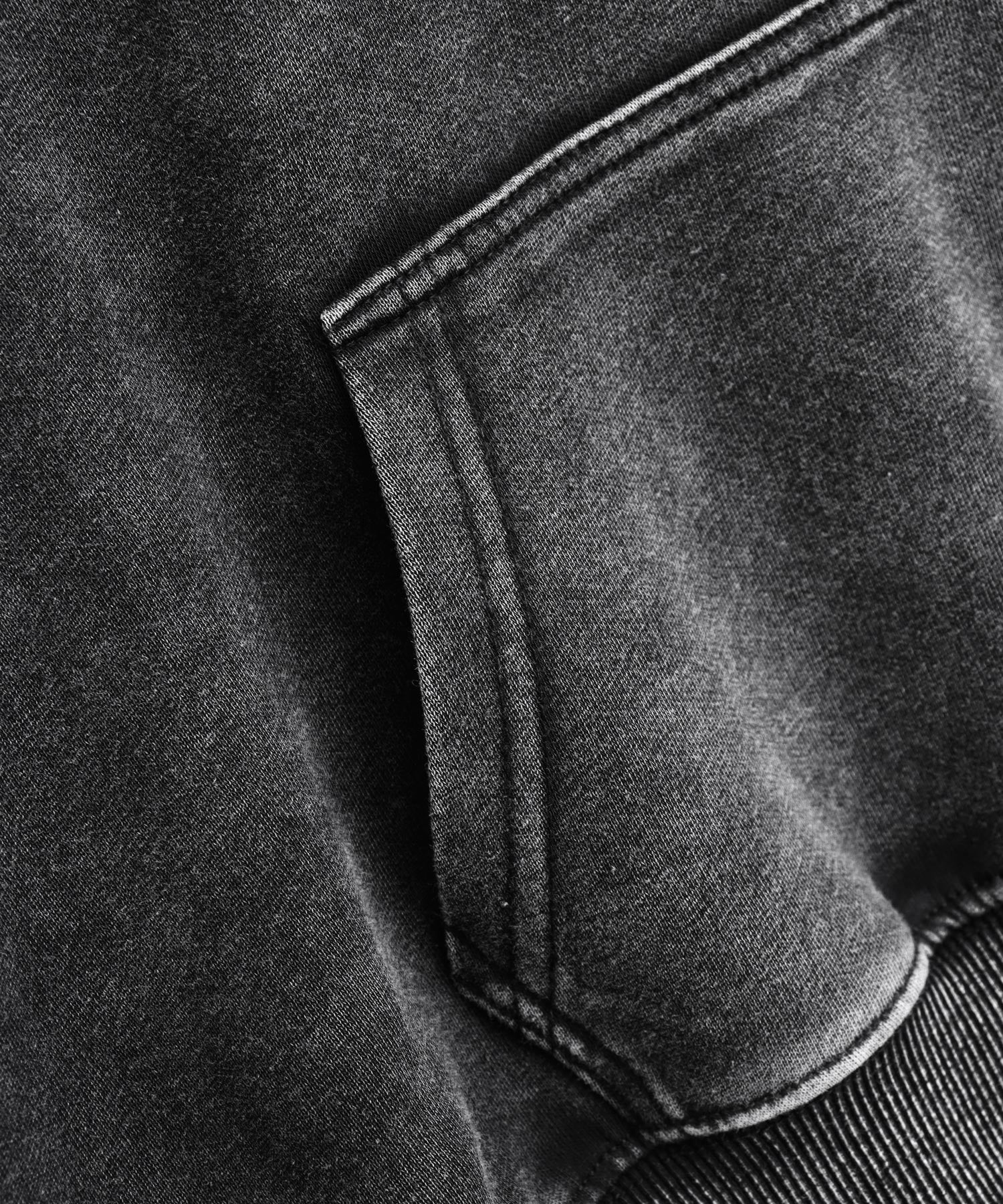 ウォッシュ加工を施すことで、着始めから肌に馴染む柔らかな風合いに仕上げたスウェットフーディーです。
