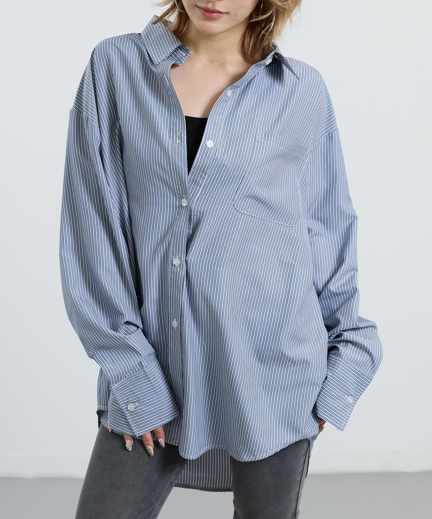 2way ストライプ オーバーサイズ シャツ 794-9466