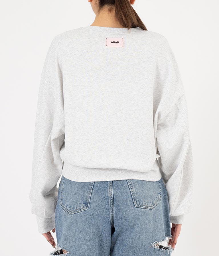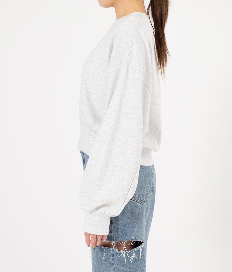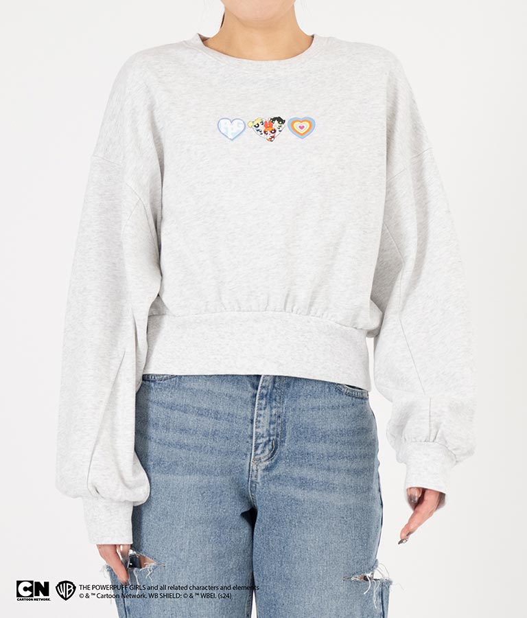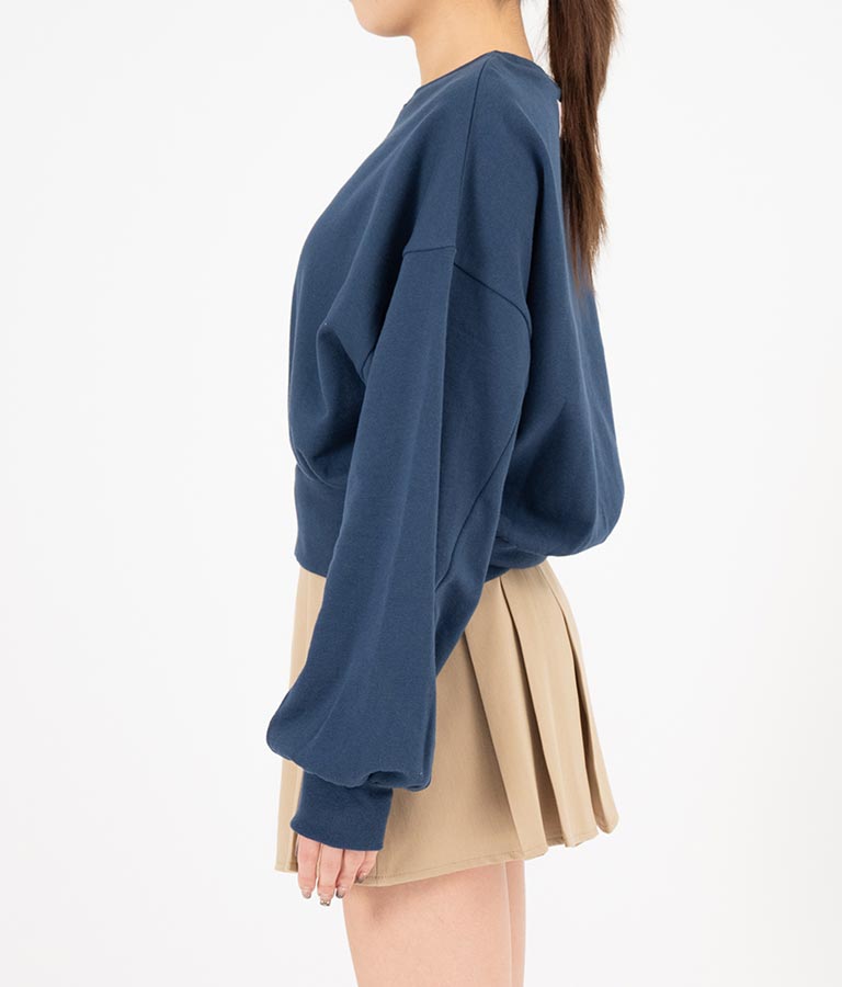 袖のボリュームが可愛いクロップド丈のスウェットトップス。