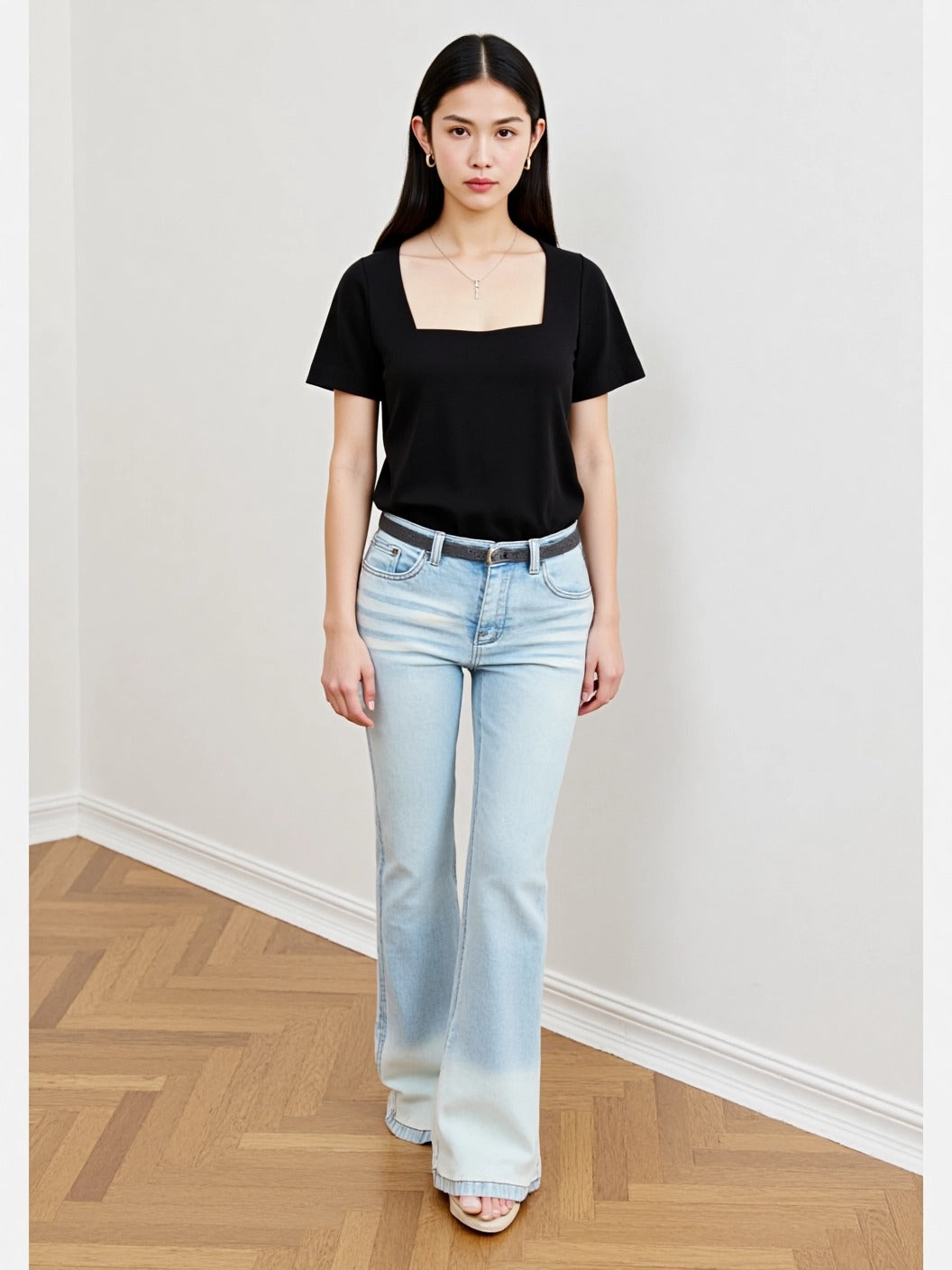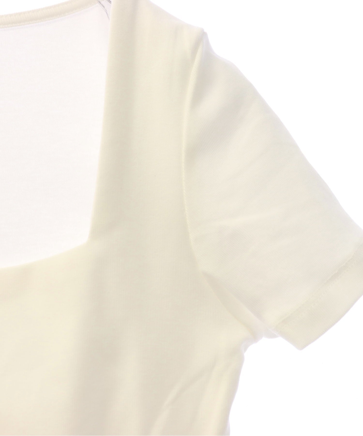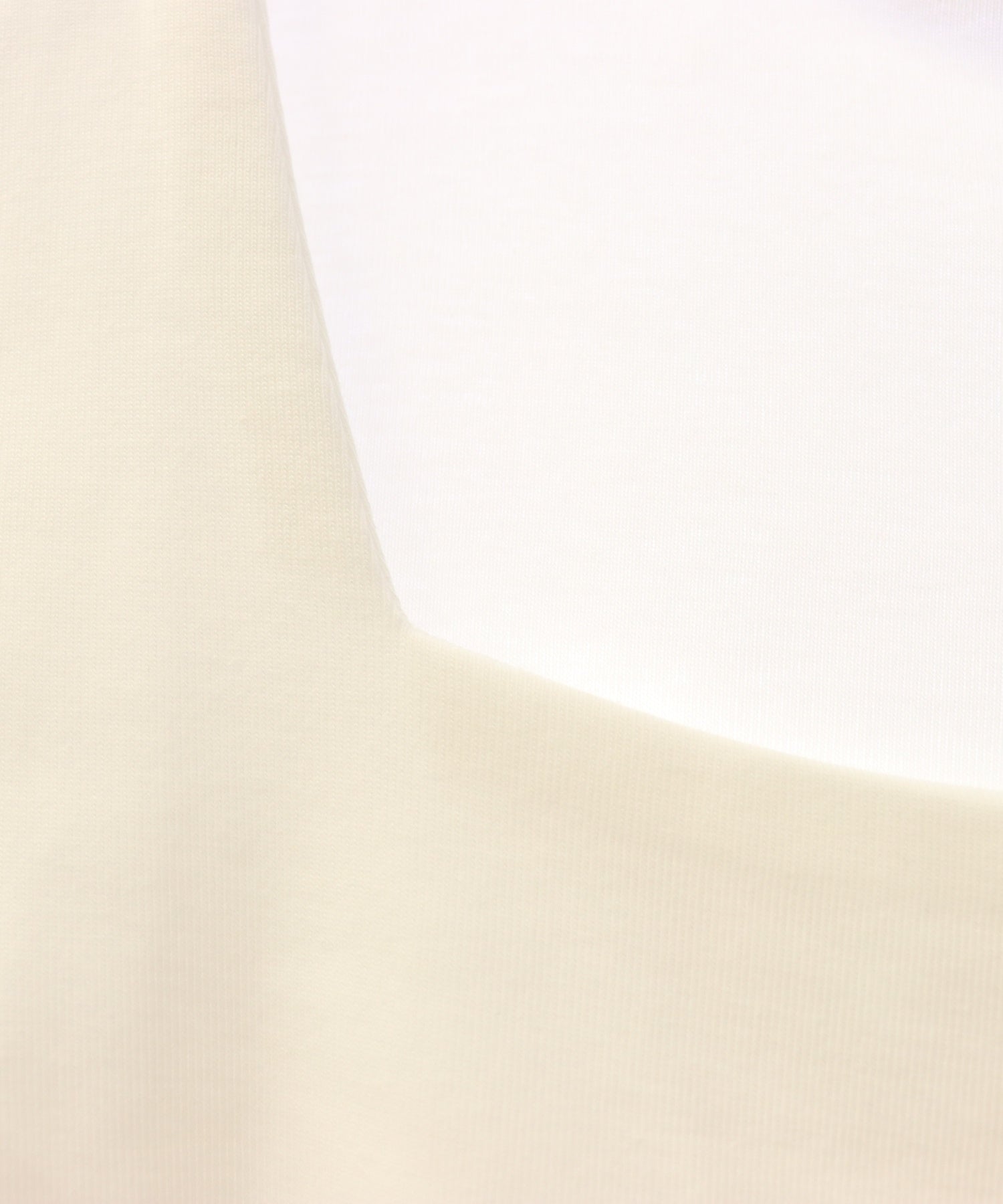 体のラインに程よくフィットし、スクエアネックがデコルテをキレイに見せてくれるのも嬉しいポイント。