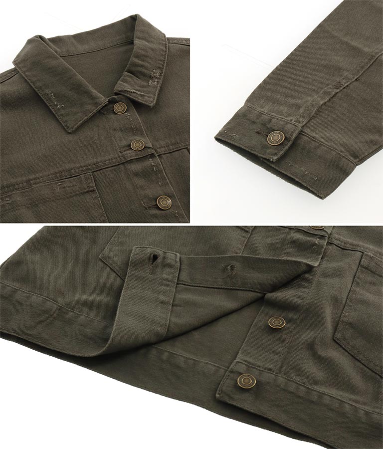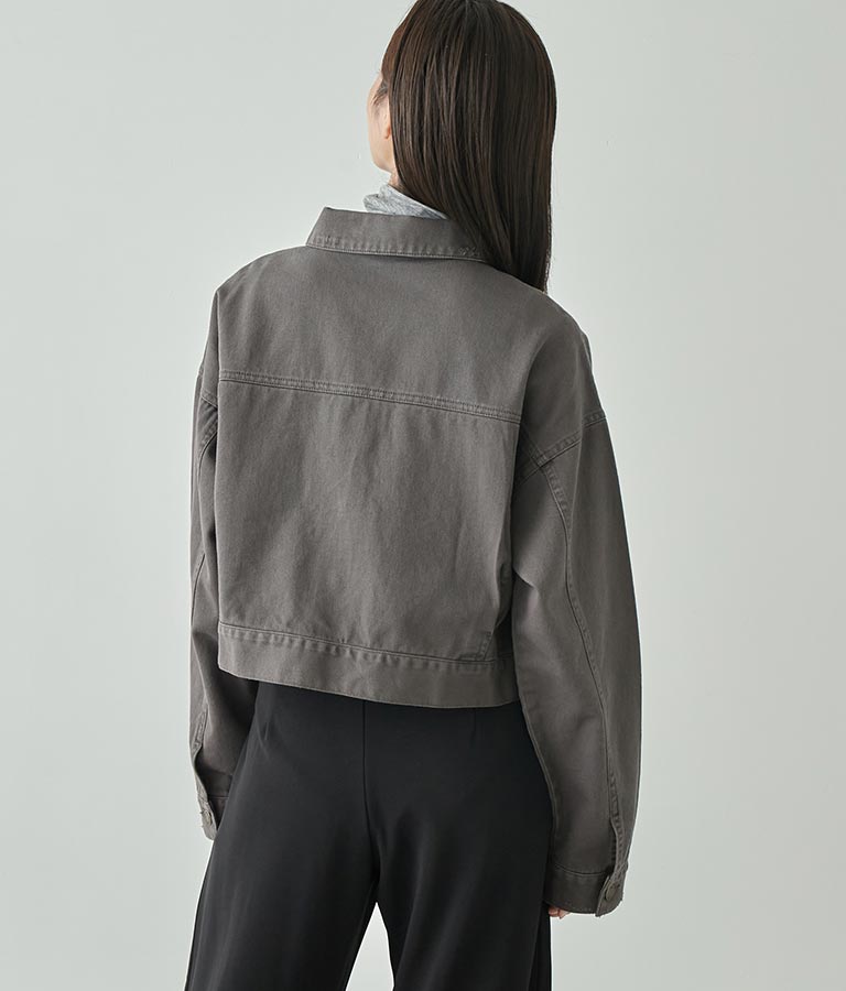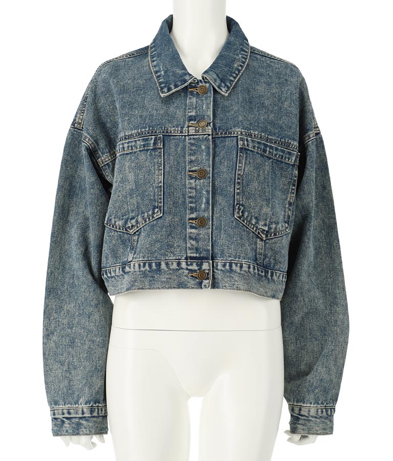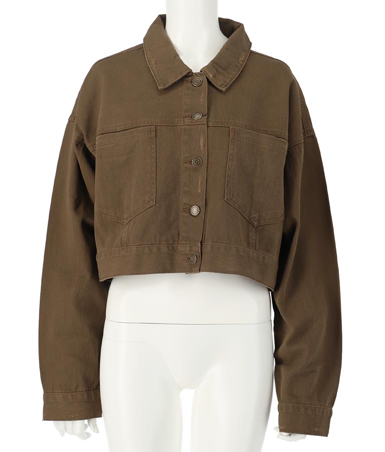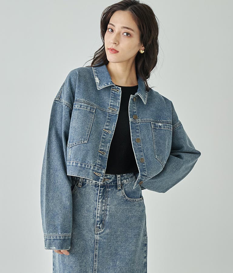 ダメージ加工を施した、ヴィンテージ感たっぷりなクロップドジャケット。