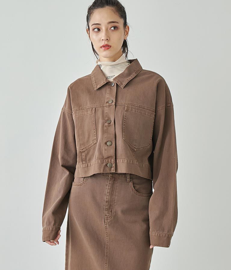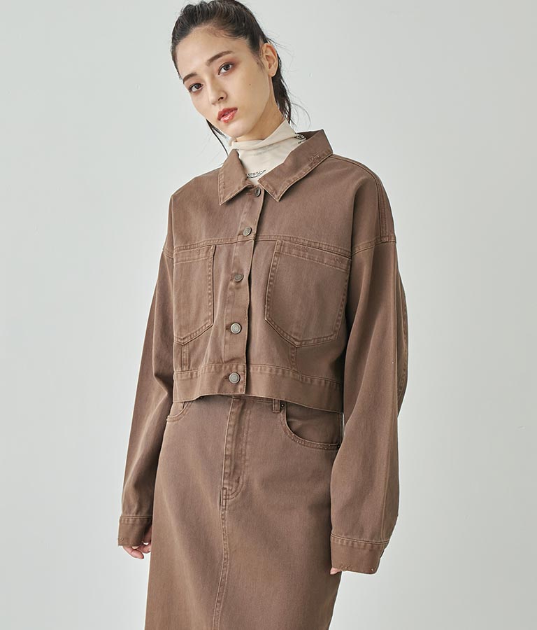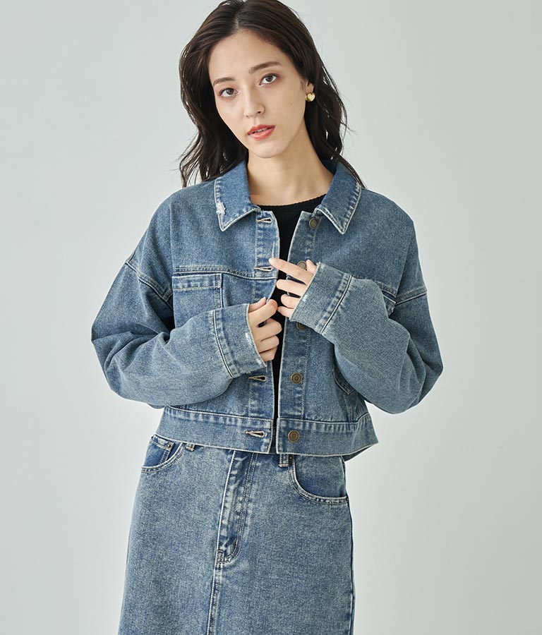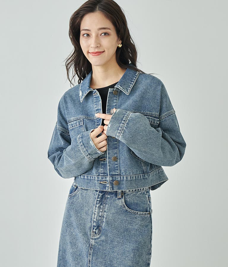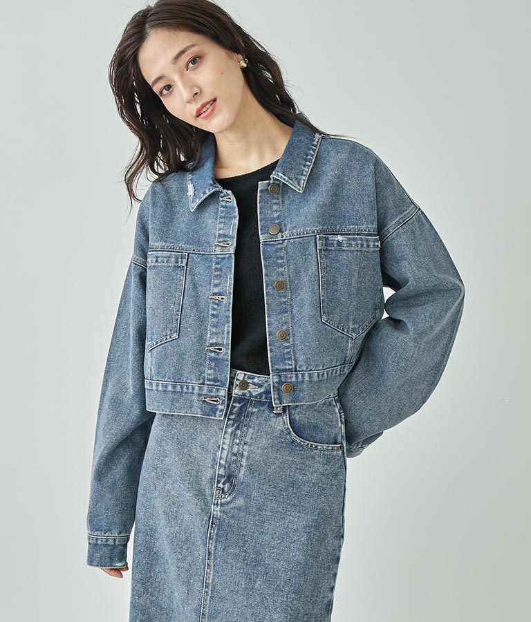 同素材を使用した【デニムバックスリットロングスカート】とのセットアップでの着こなしもおススメ。