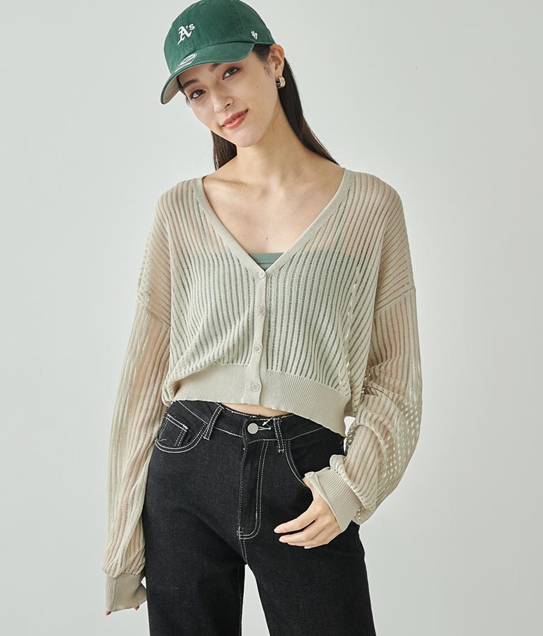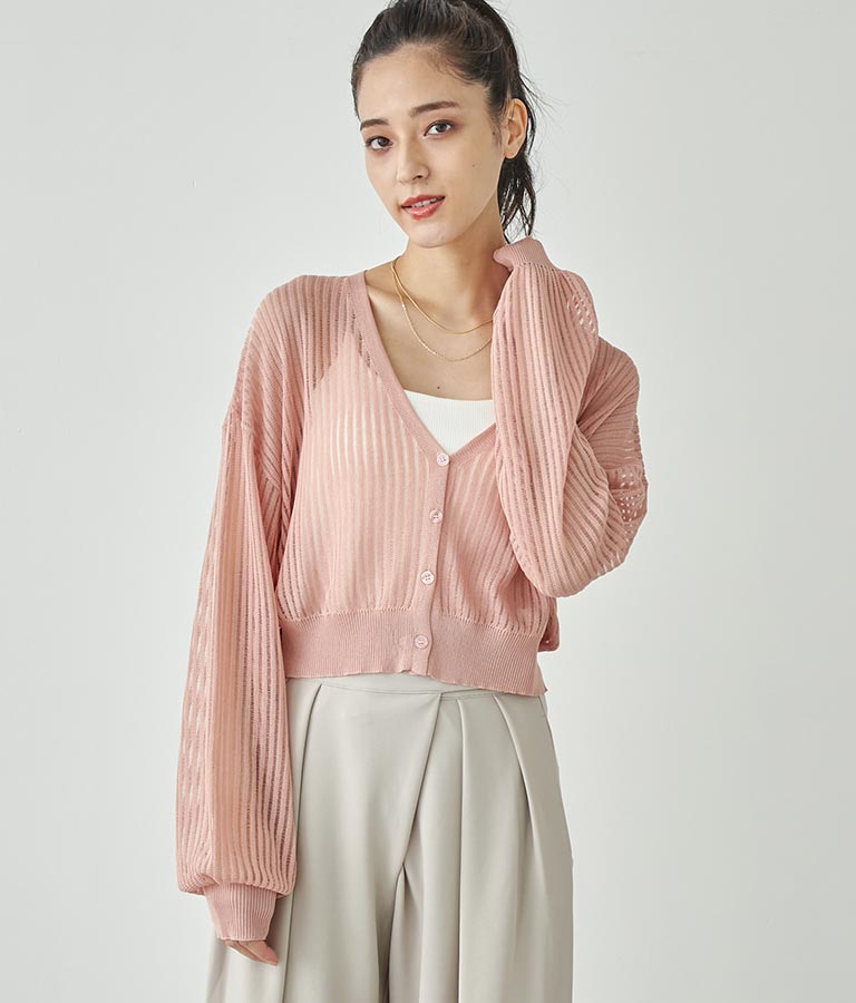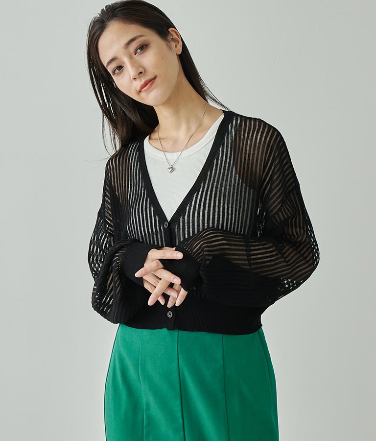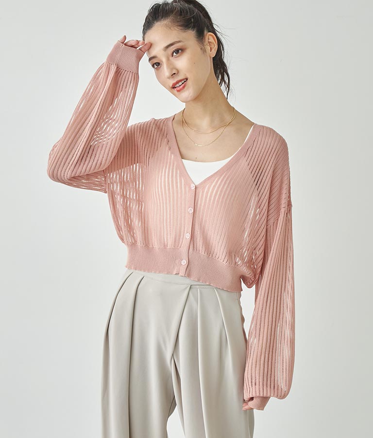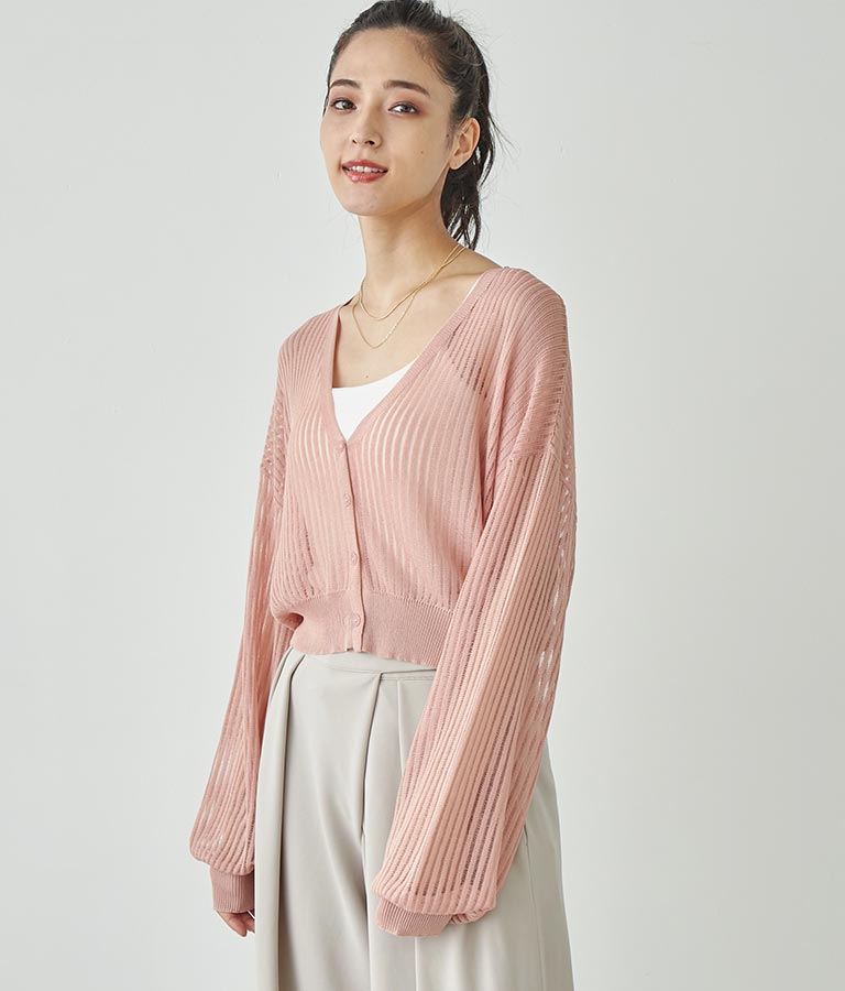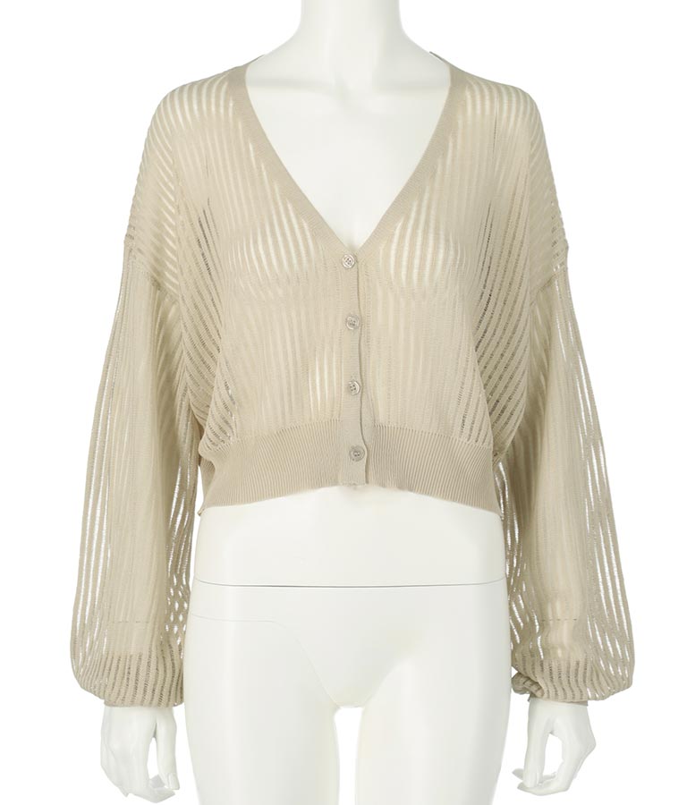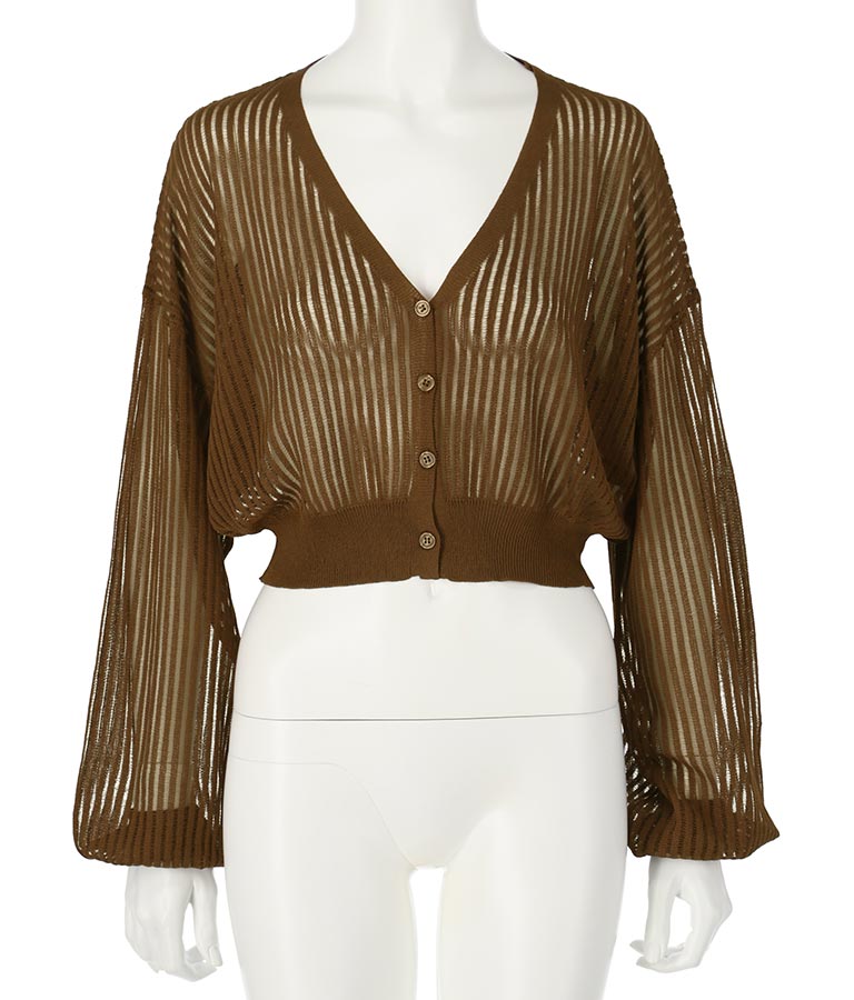 クロップド シアー ニット カーディガン 長袖 154-5481
