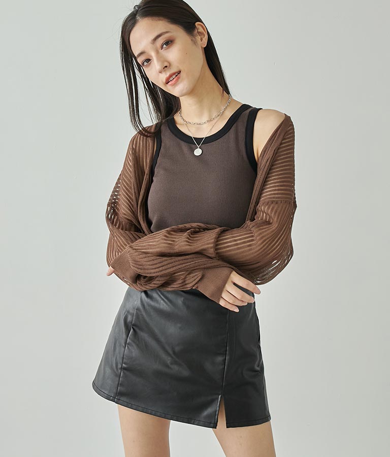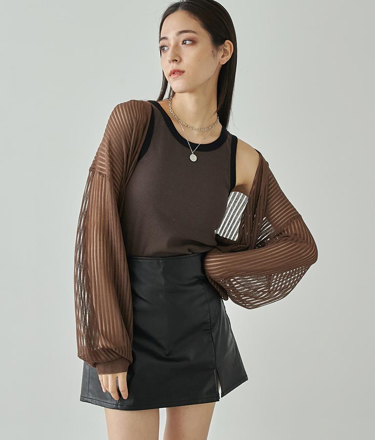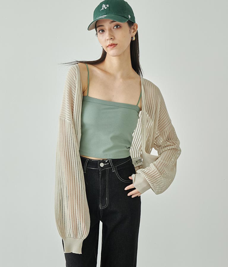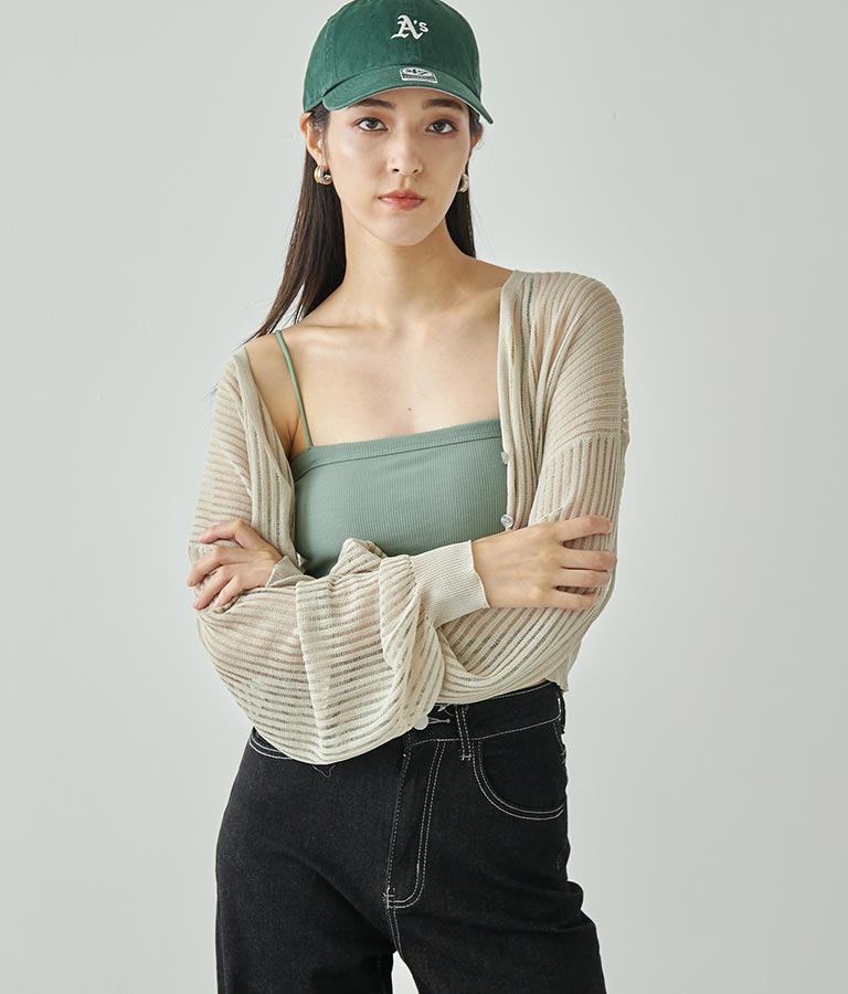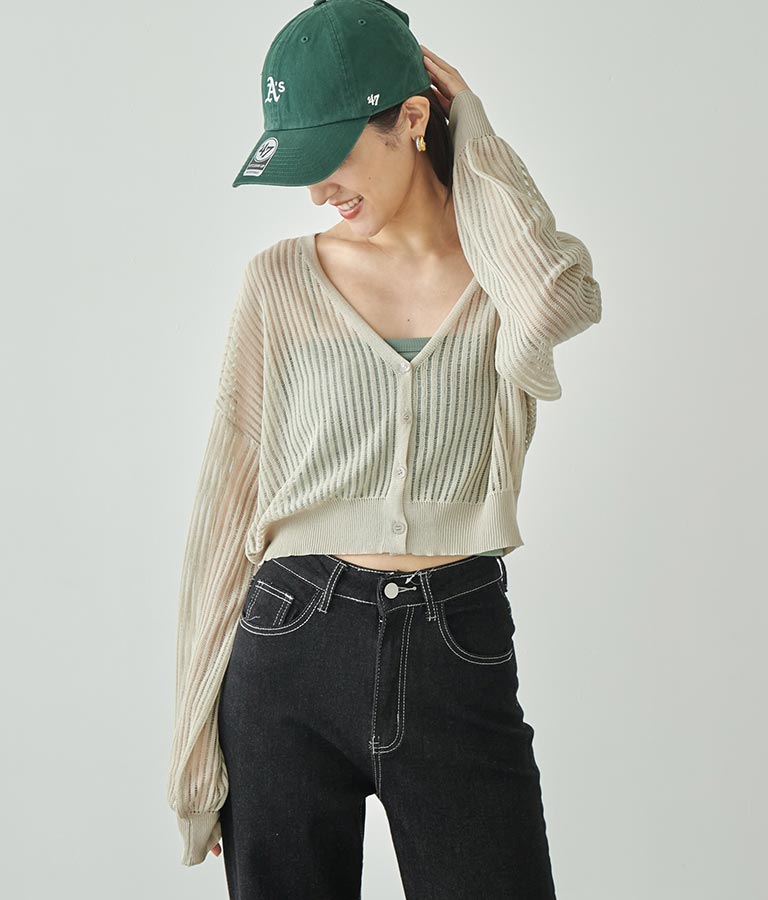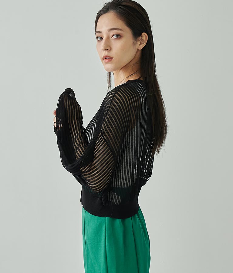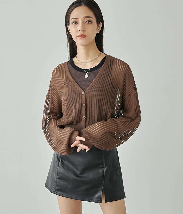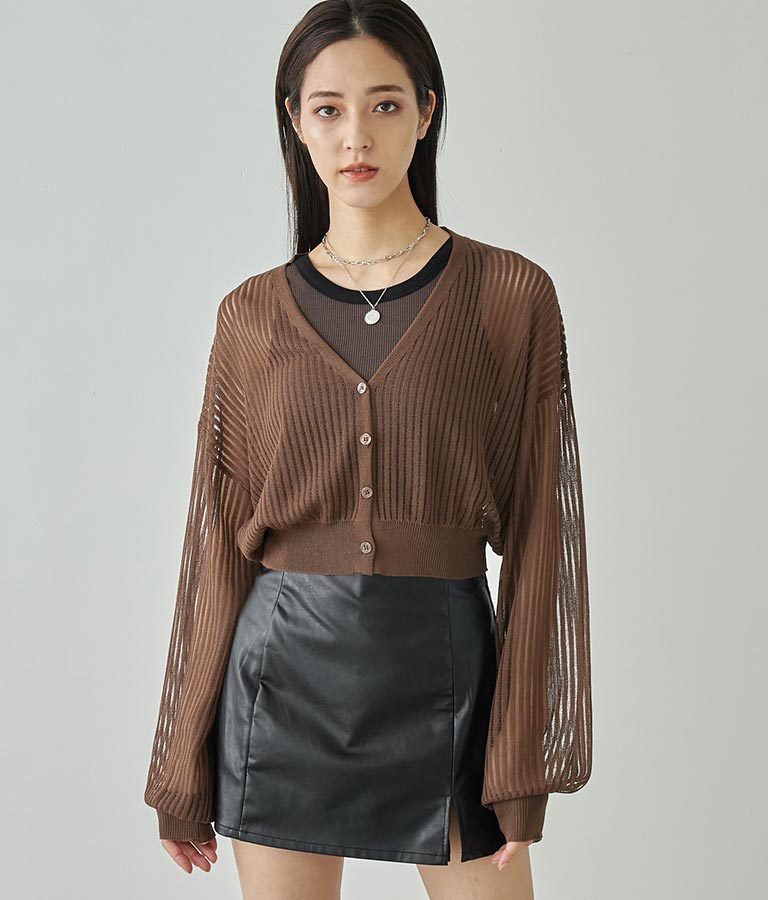 クロップド シアー ニット カーディガン 長袖 154-5481