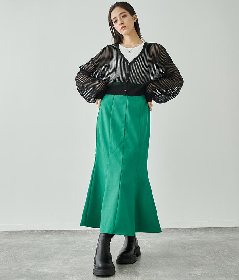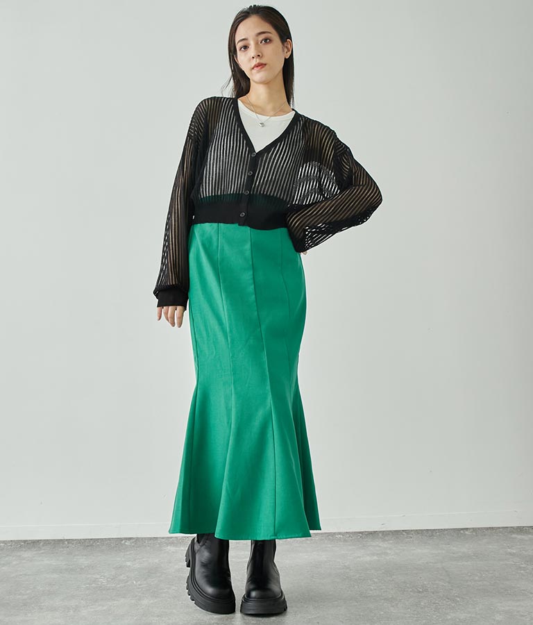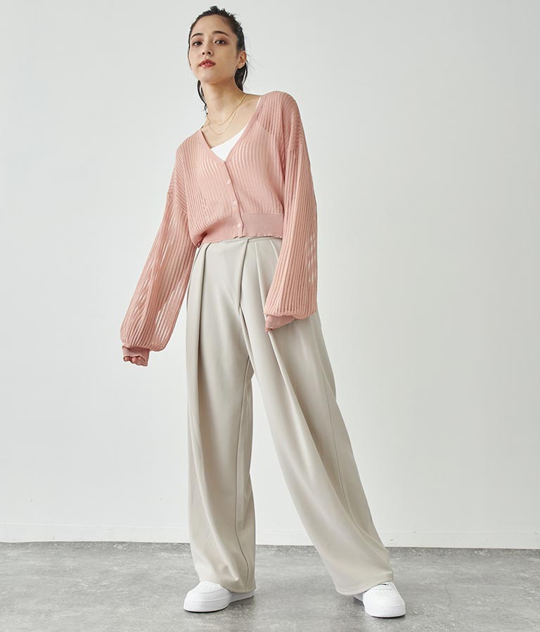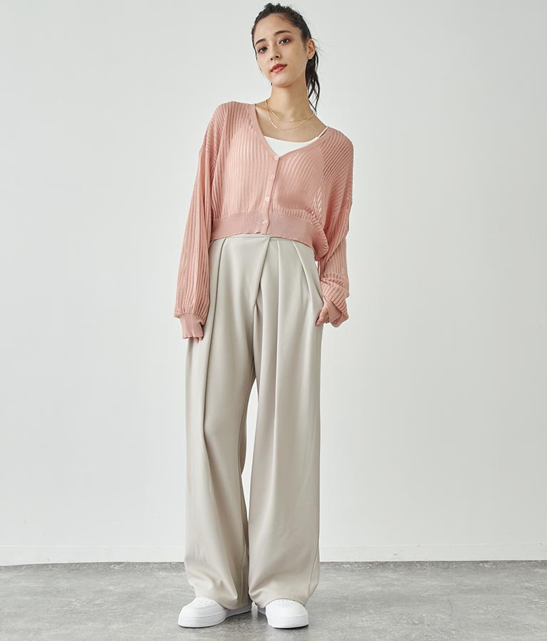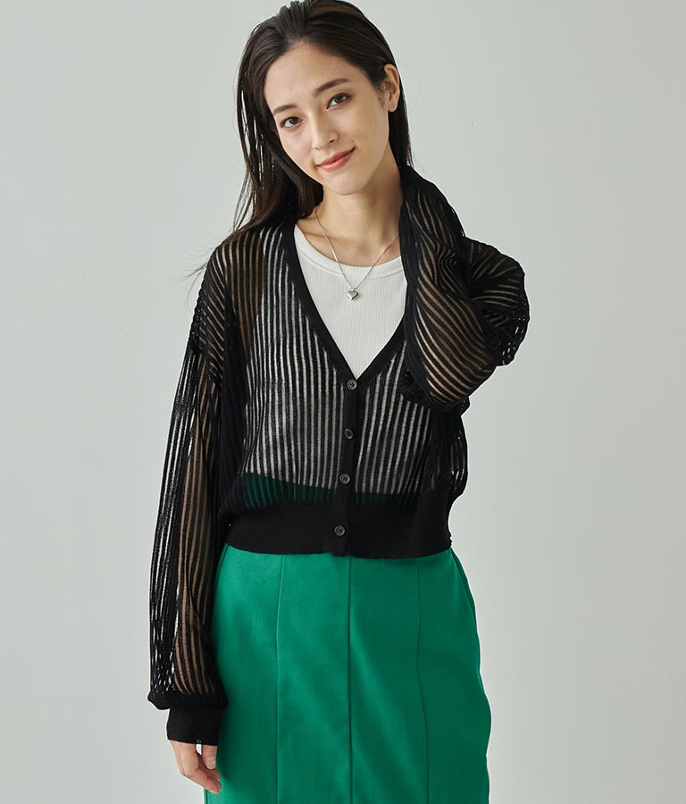 程よくシアーな素材がトレンド感あふれるニットカーディガン。