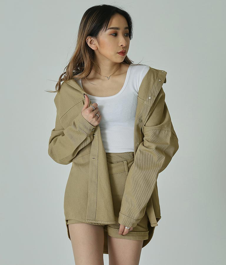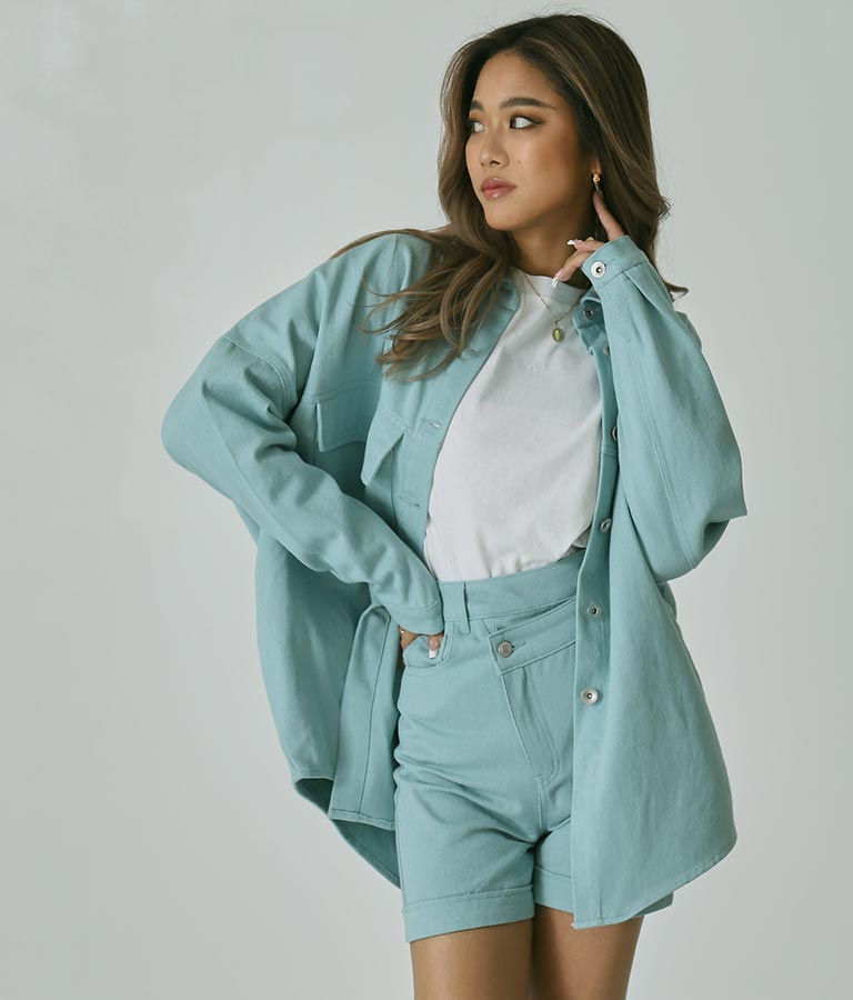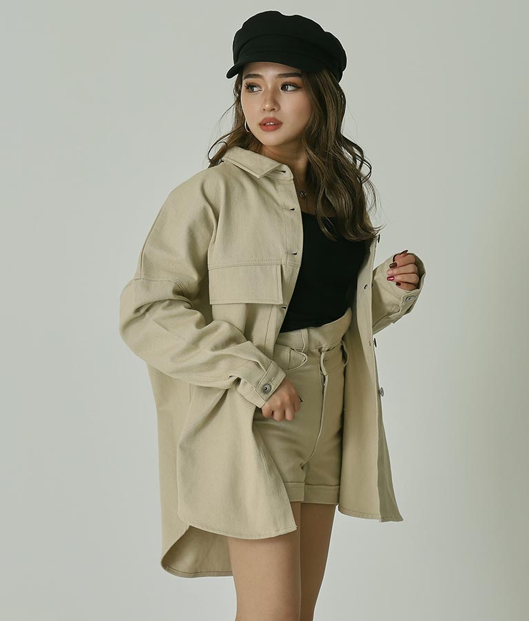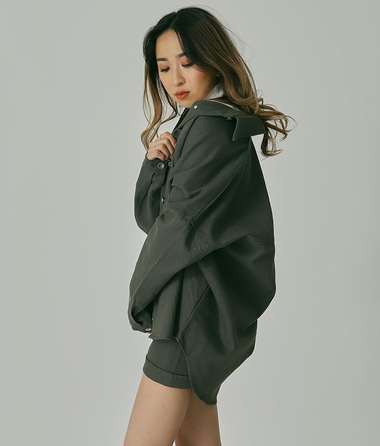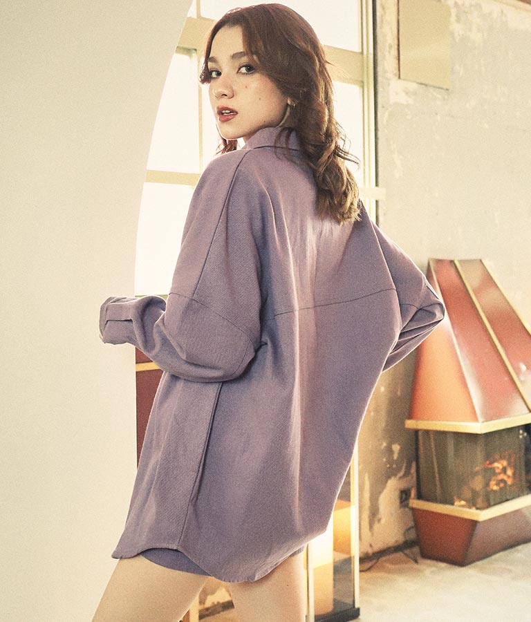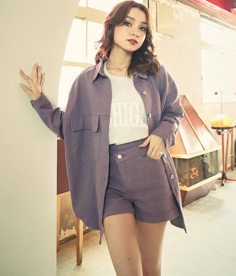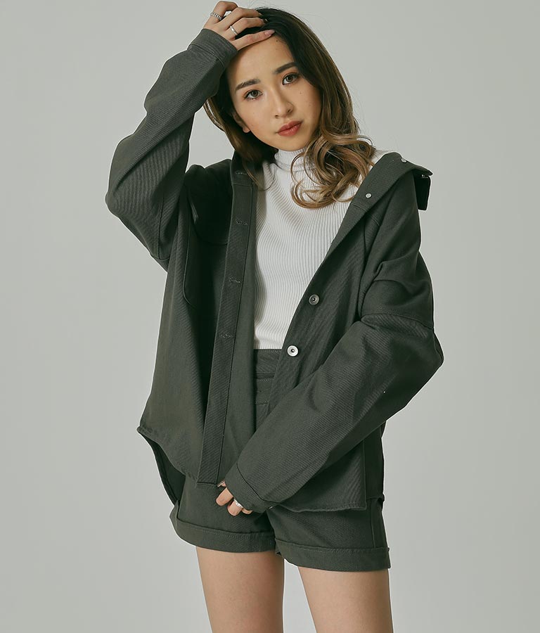 オーバーサイズでゆるっと着られるジャケットです。 くすみカラーの色合いがトレンドな1枚です。 お揃いのボトムスとセットアップ可能。