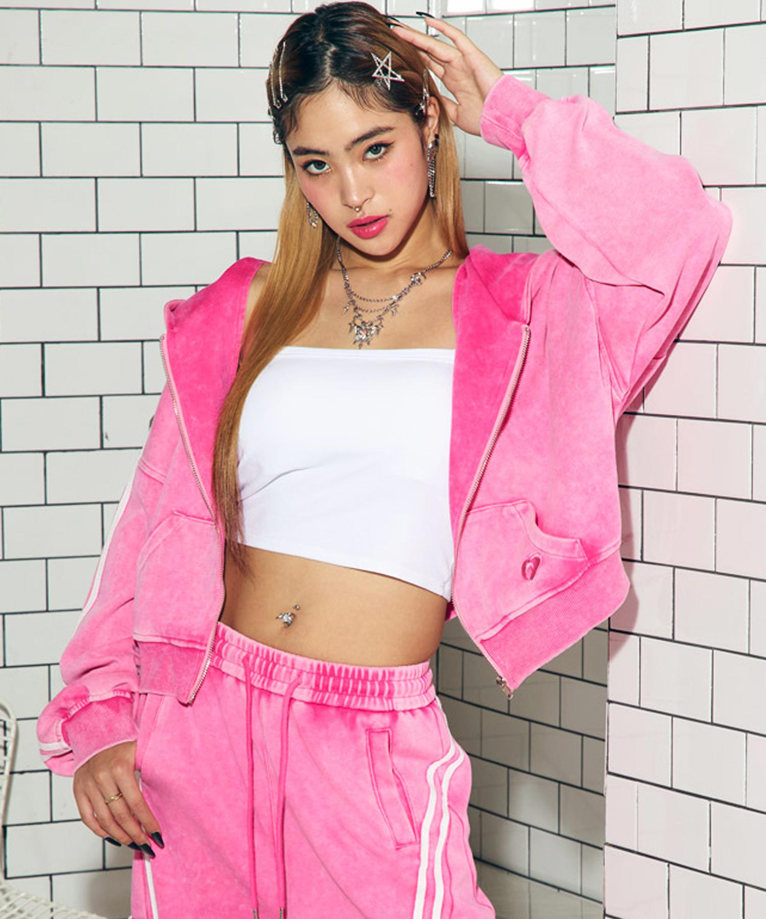 柔らかいスウェット素材で仕上げたジップアップパーカーは、存在感のあるカラーとゆったりとしたシルエットが魅力。