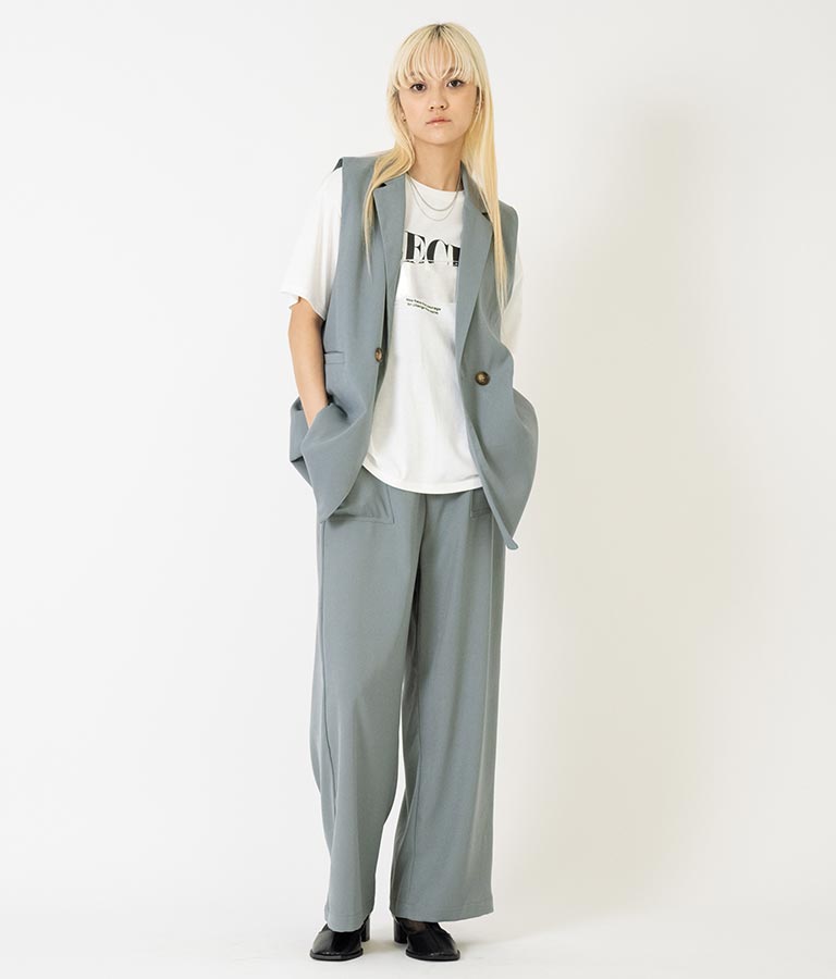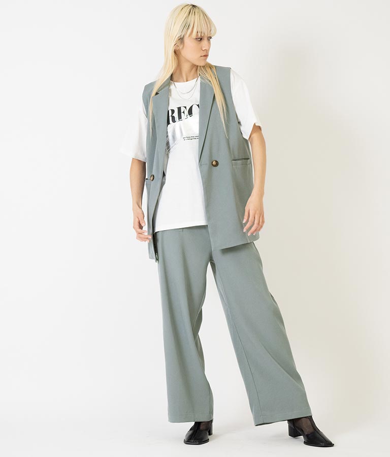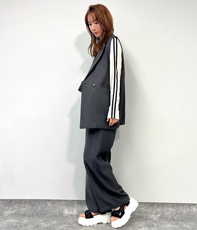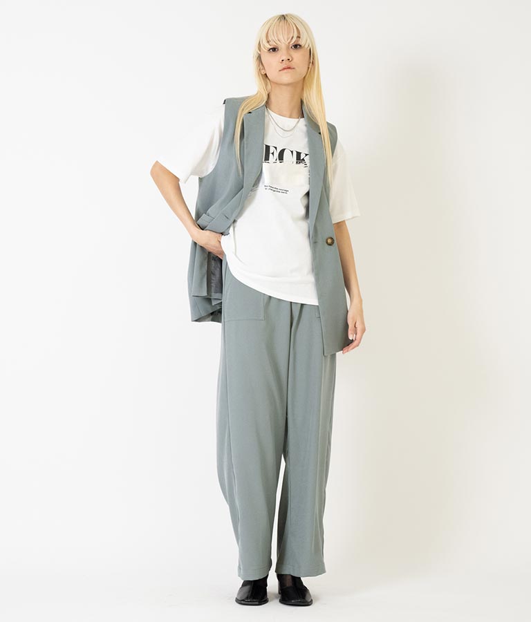 同素材を使用した【ウエストゴム スラックスパンツ】と合わせてセットアップでの着こなしもおススメ。