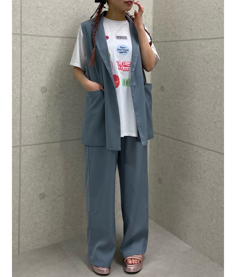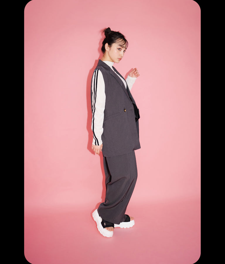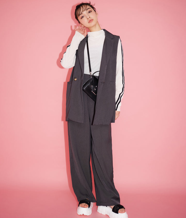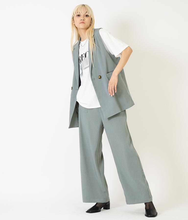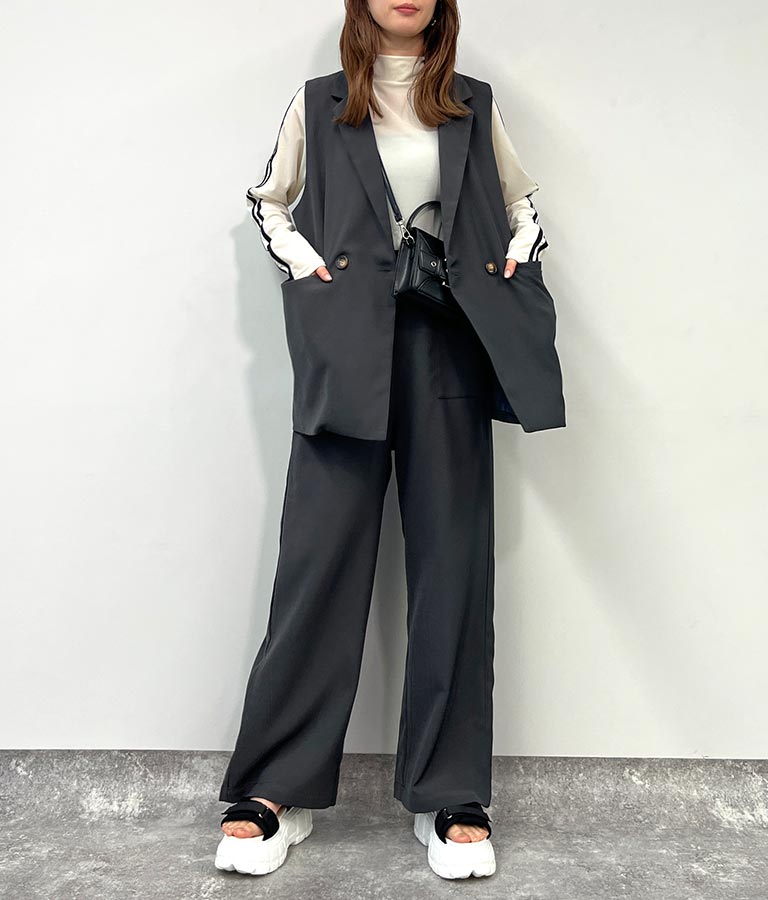 同素材を使用した【ウエストゴム スラックスパンツ】と合わせてセットアップでの着こなしもおススメ。