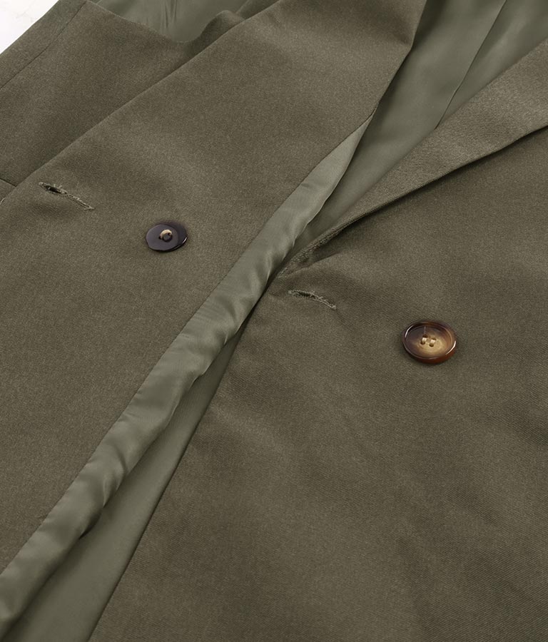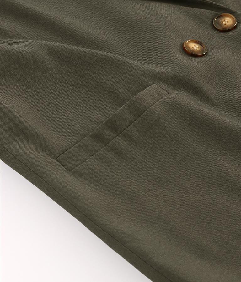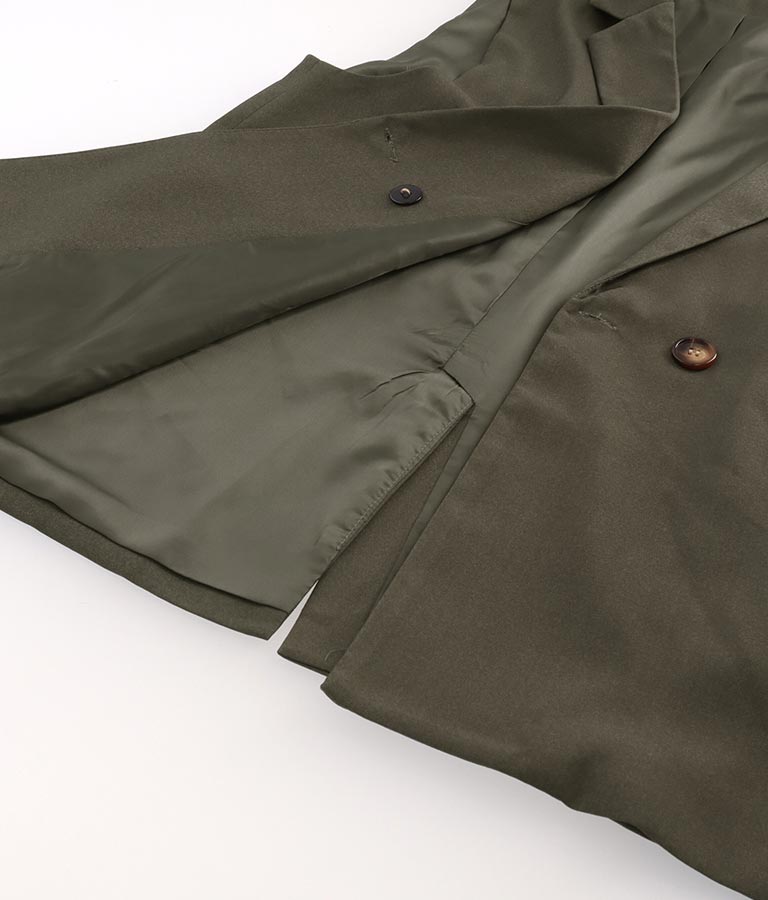 テーラードカラーがきちんと見えし、ヒップラインが隠れる長めの着丈が体型カバーを叶えます。