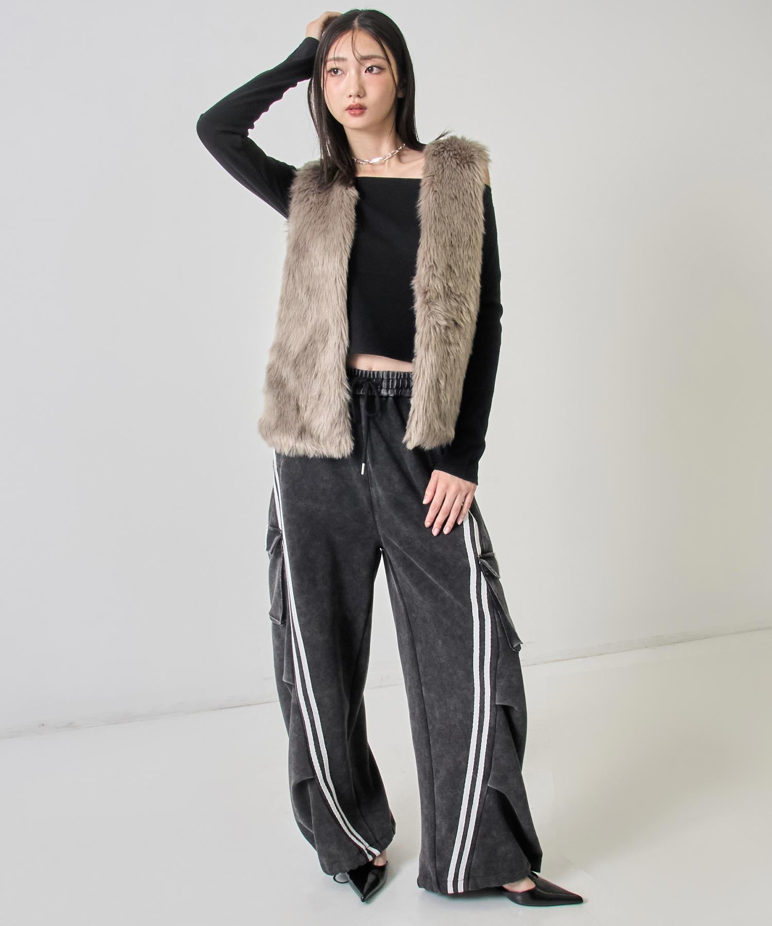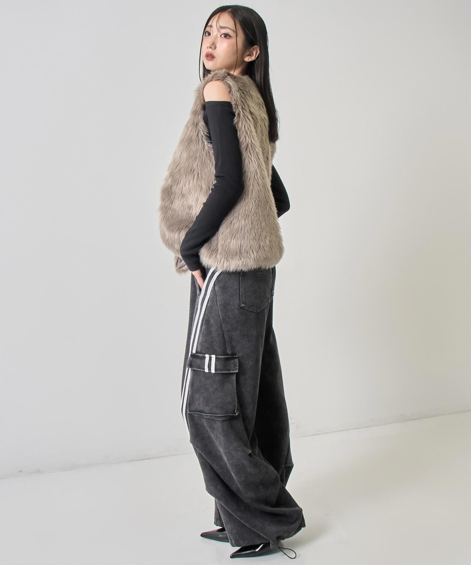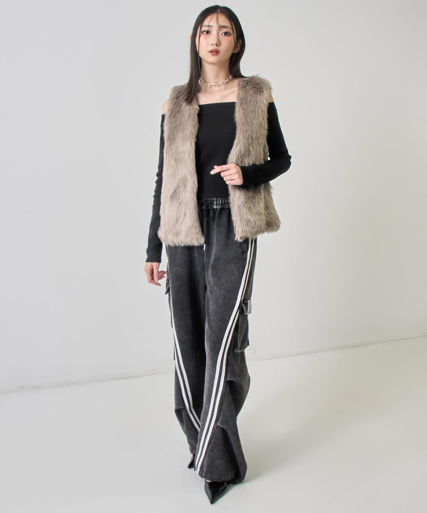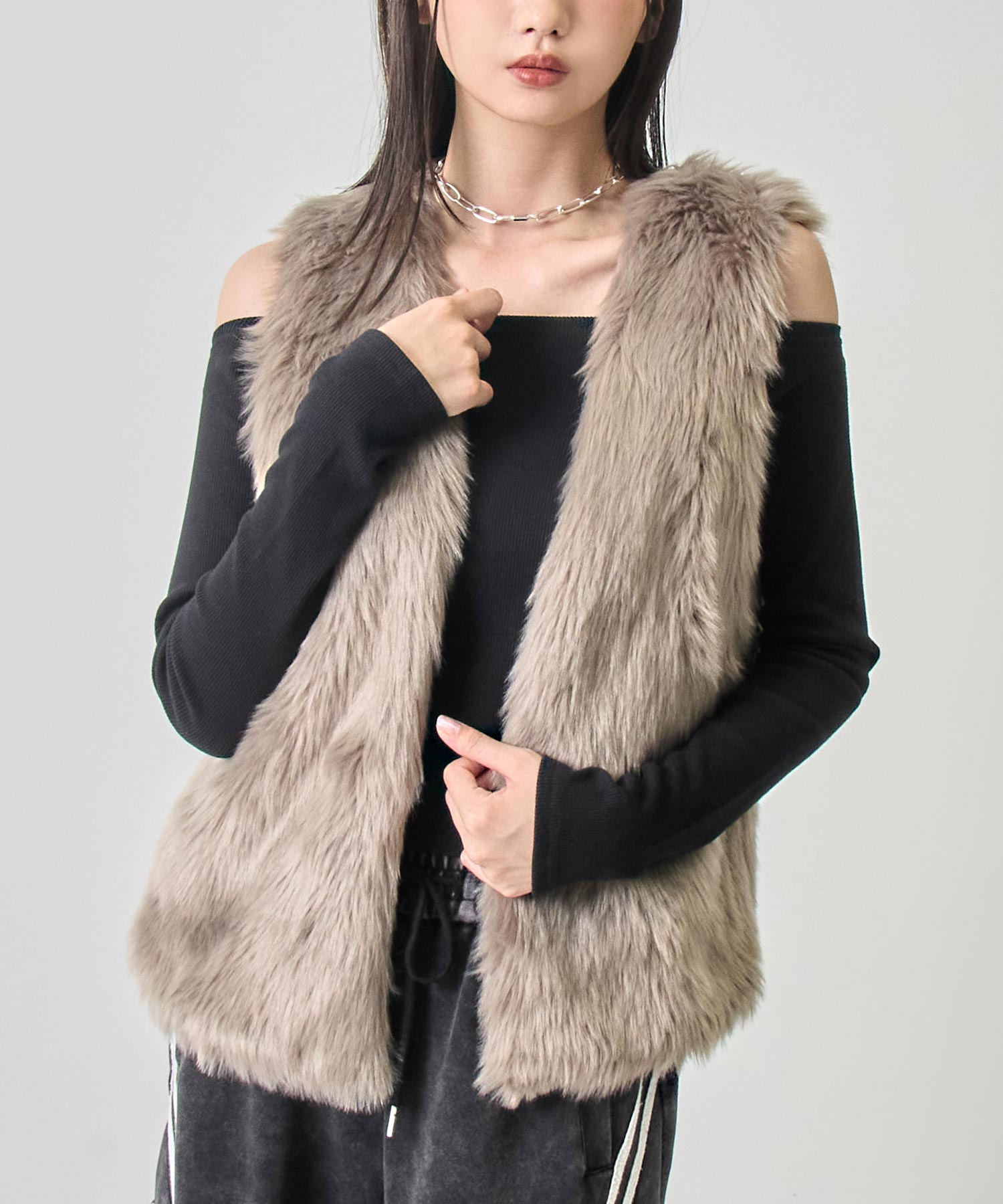 ふわふわでリッチな質感のフェイクファーを贅沢に使ったベストは、着るだけでシーズンムードを引き上げてくれる一枚。