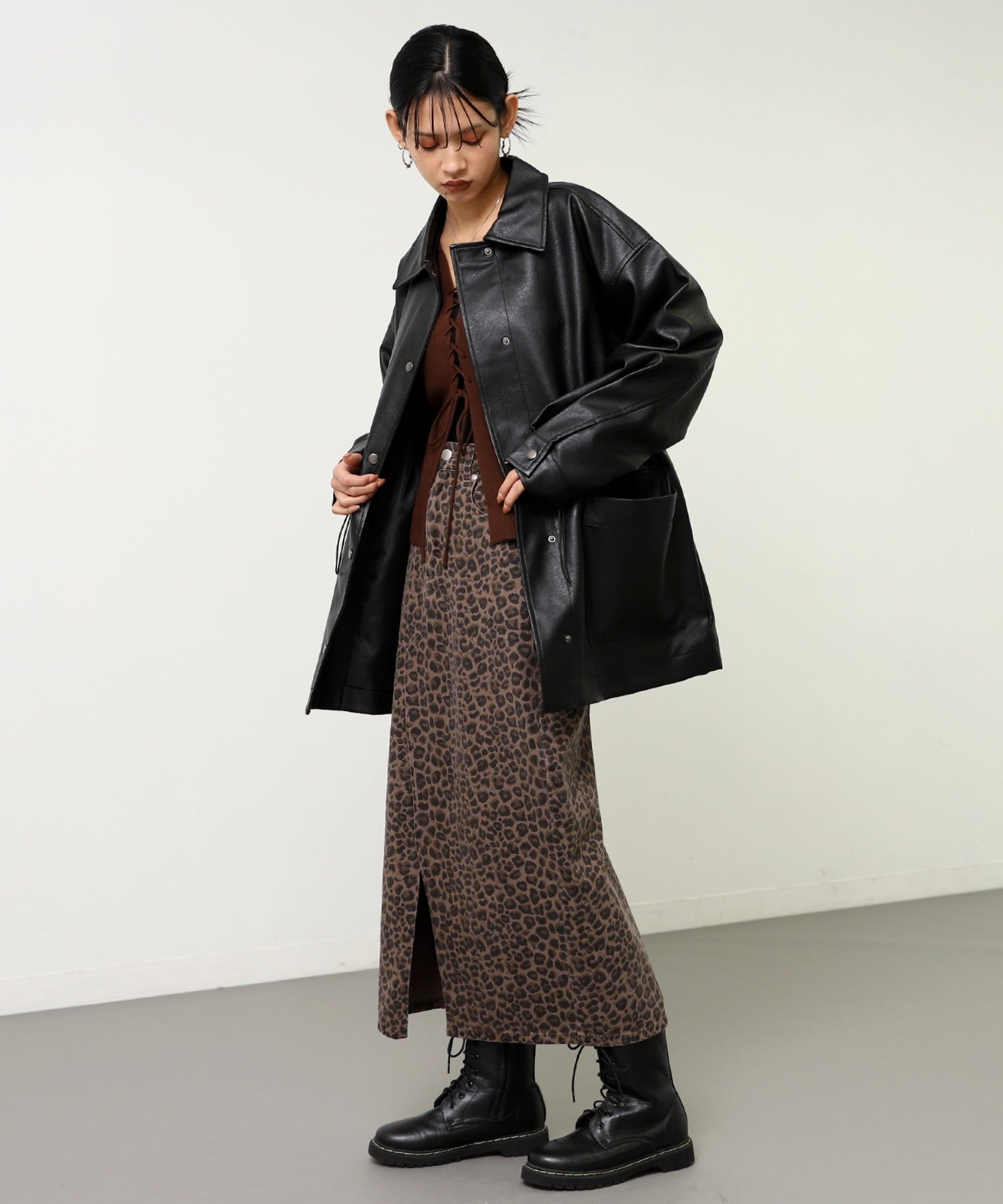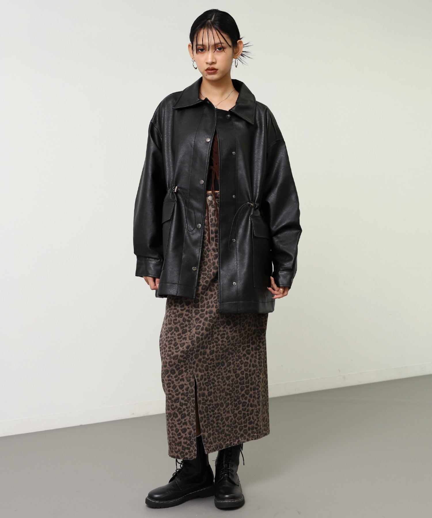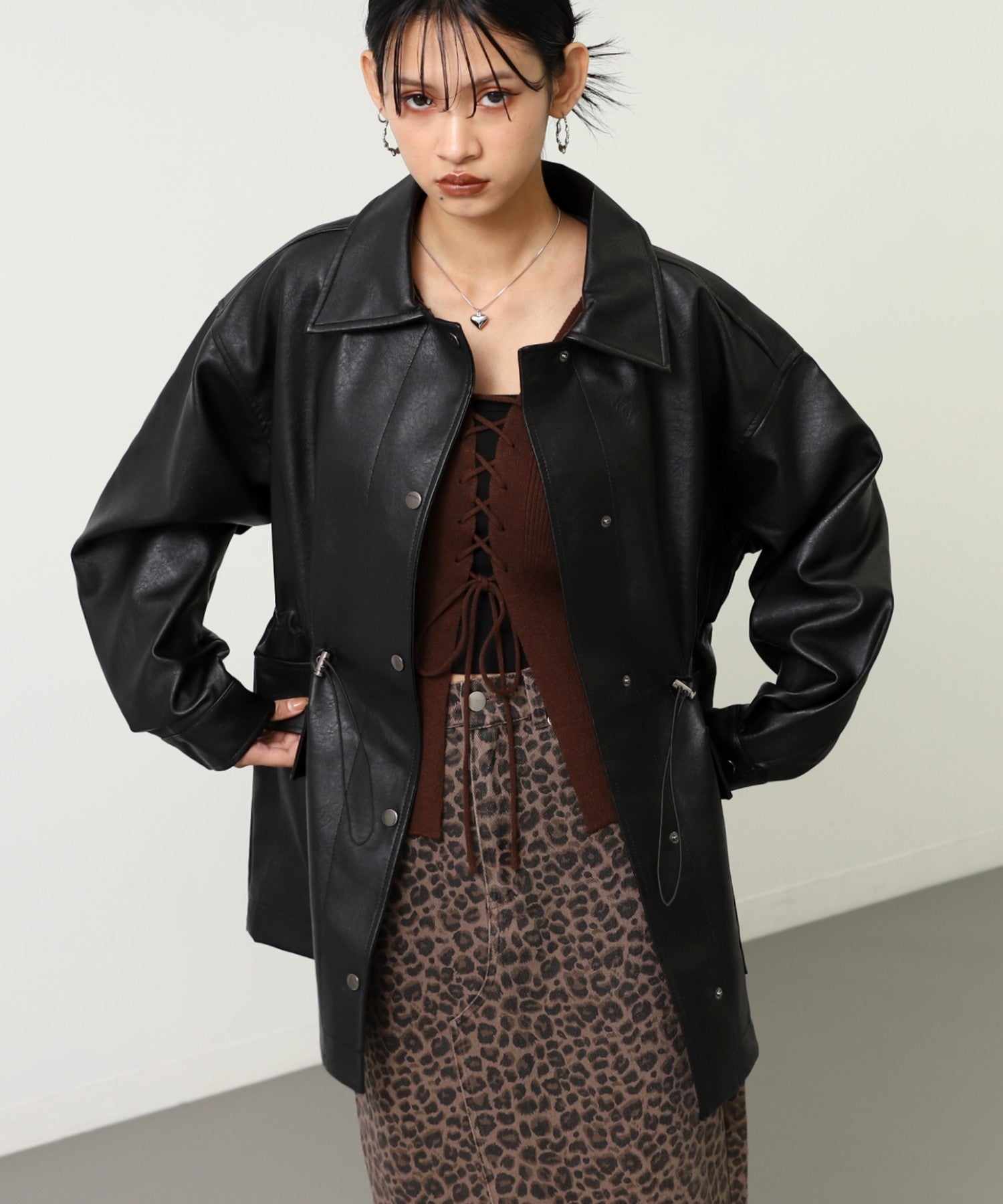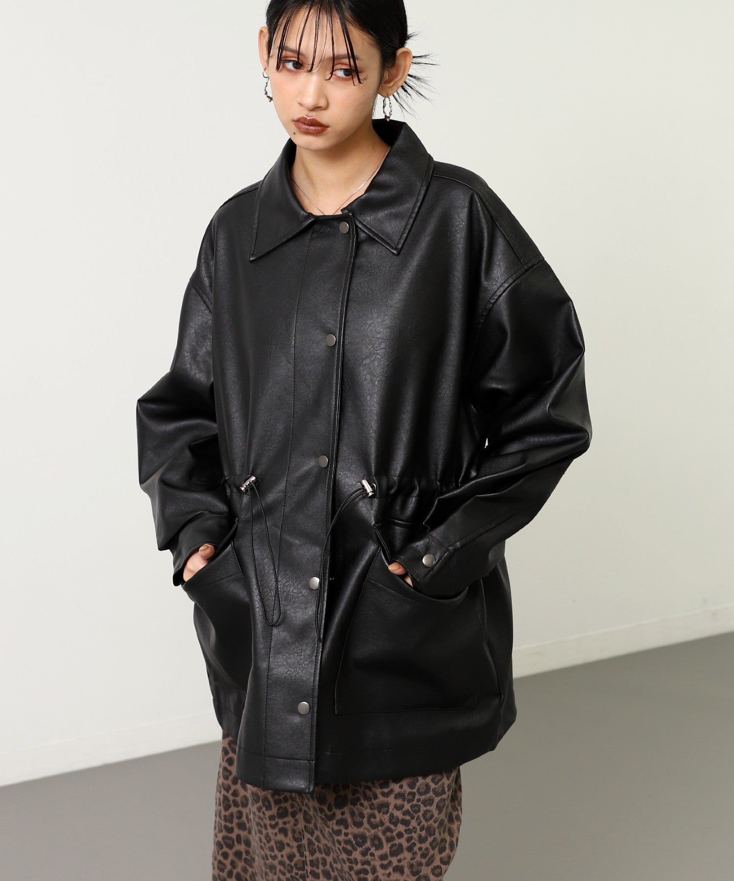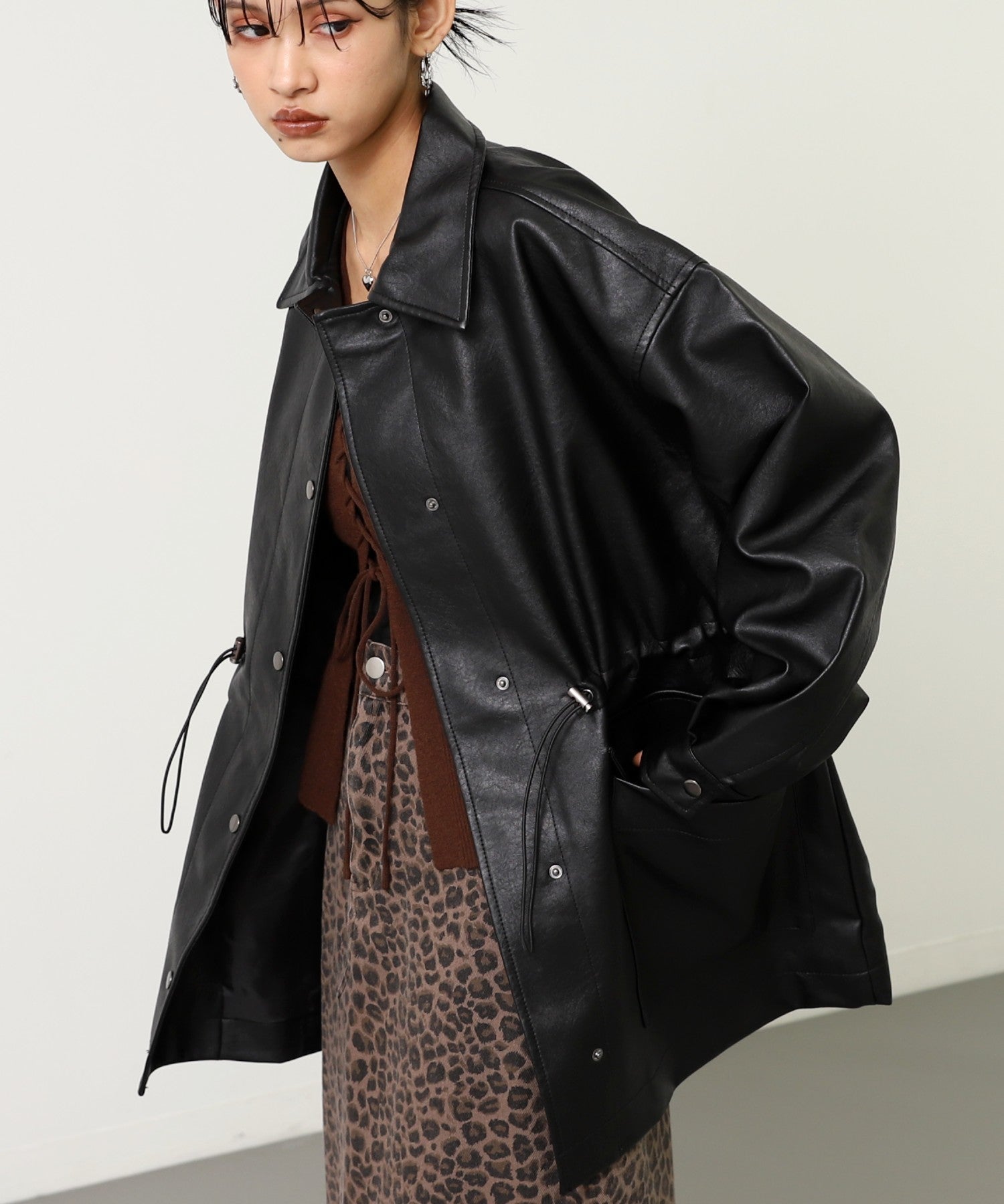 ドローストリング カバーオール フェイクレザー ジャケット 795-9433