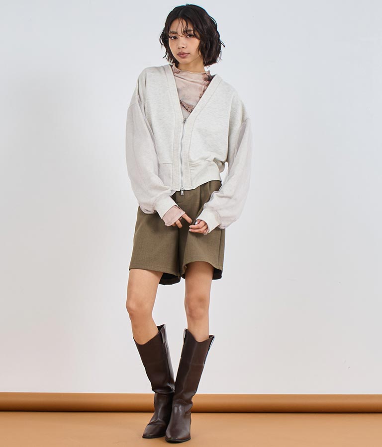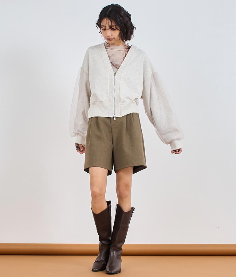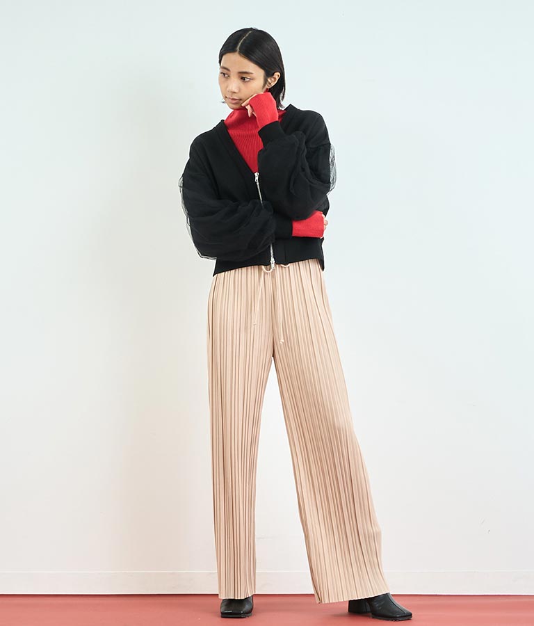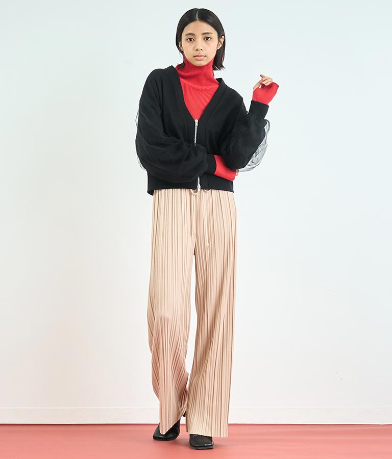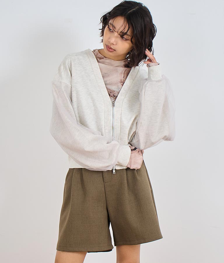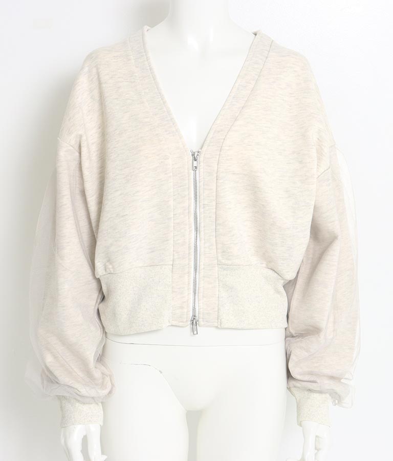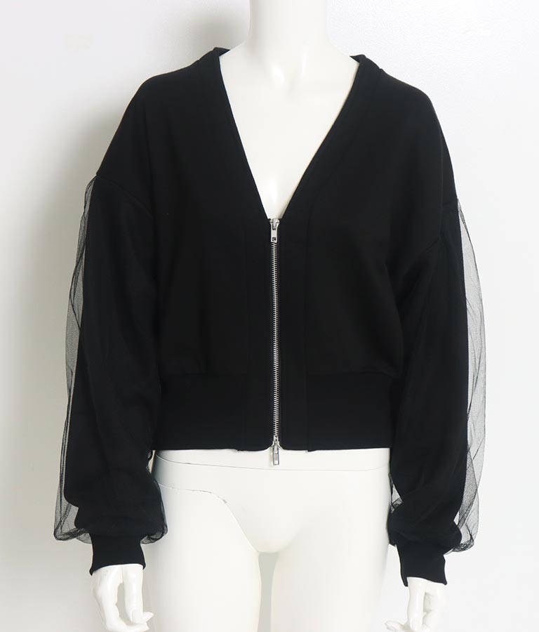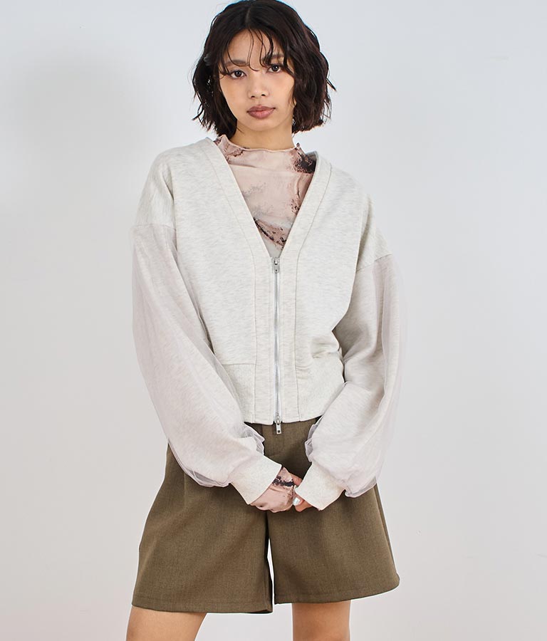 袖のチュール切り替えがポイントのカーディガン。
