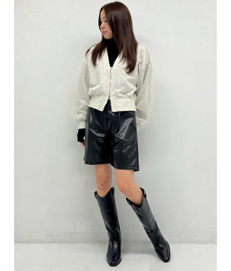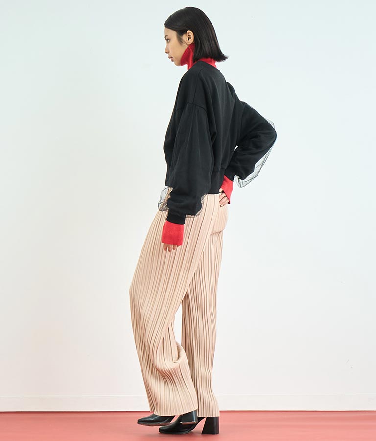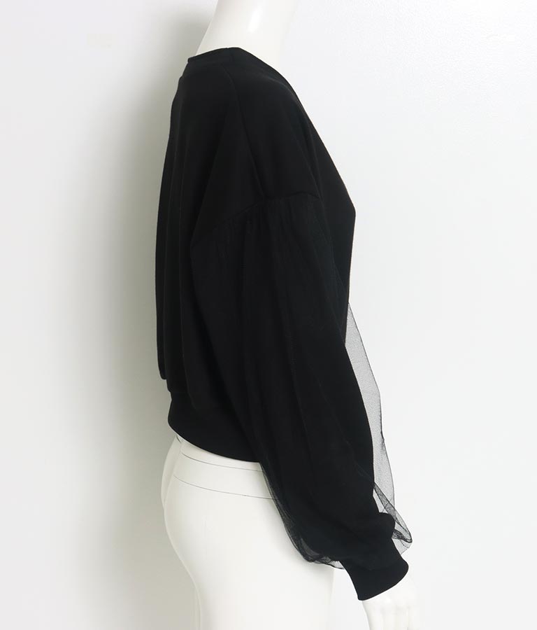 裏毛素材にチュールを重ねることで、カジュアルなデザインにさりげない女性らしさをプラス。