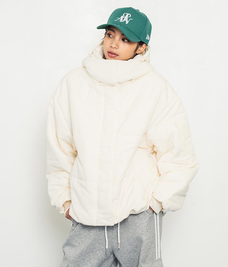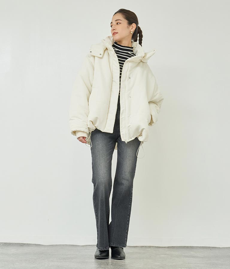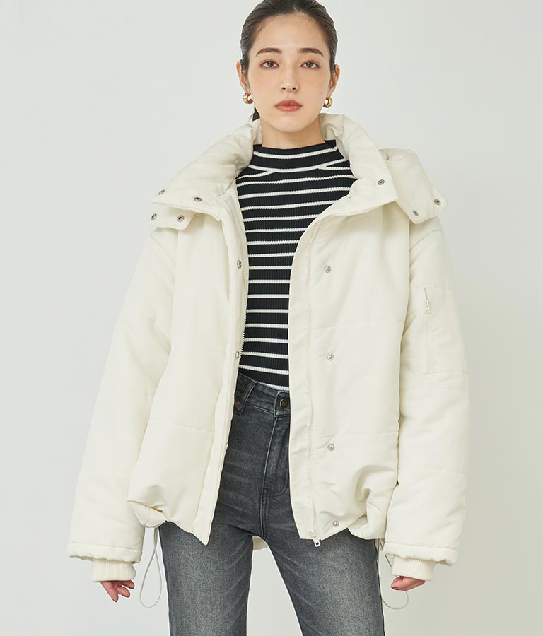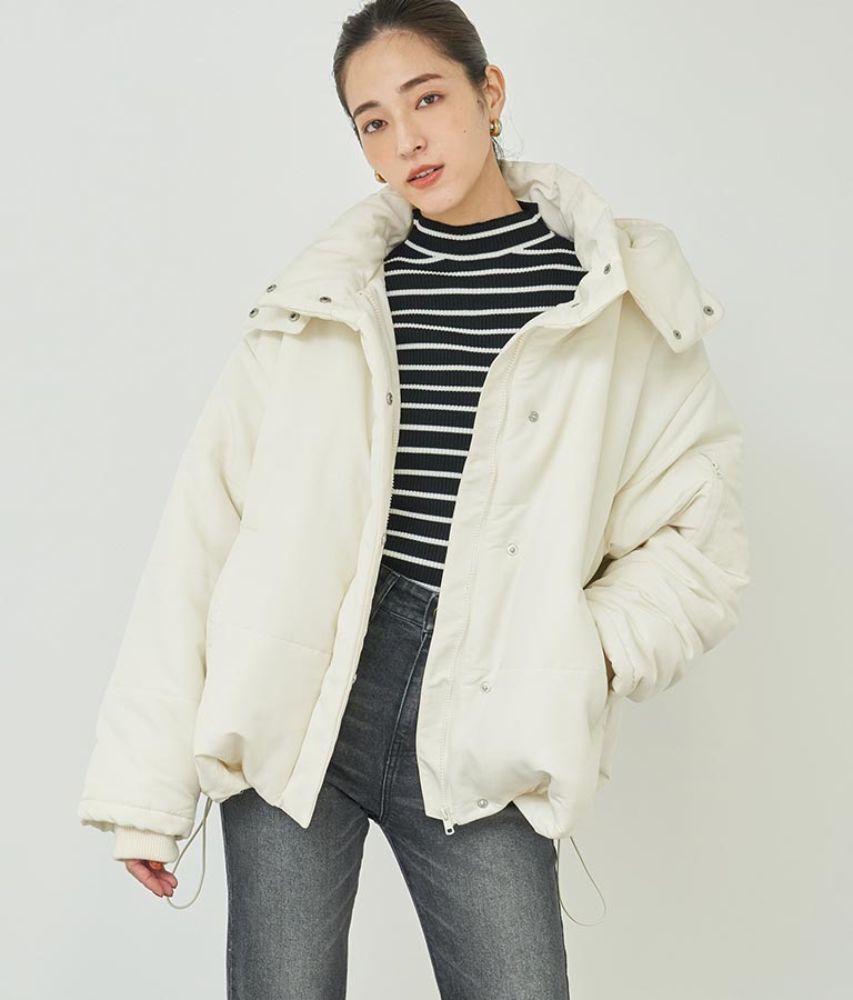 大人カジュアルも大人可愛いもスタイリングが叶うシンプルなエコクラウド中綿オーバーブルゾン。