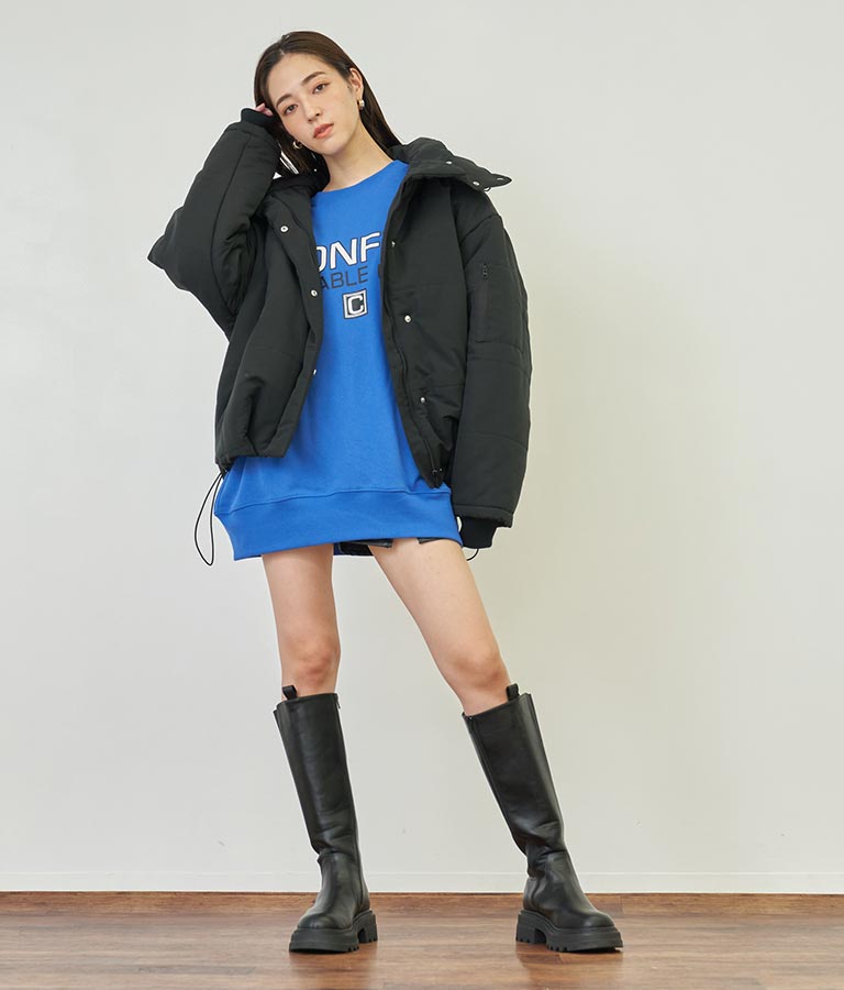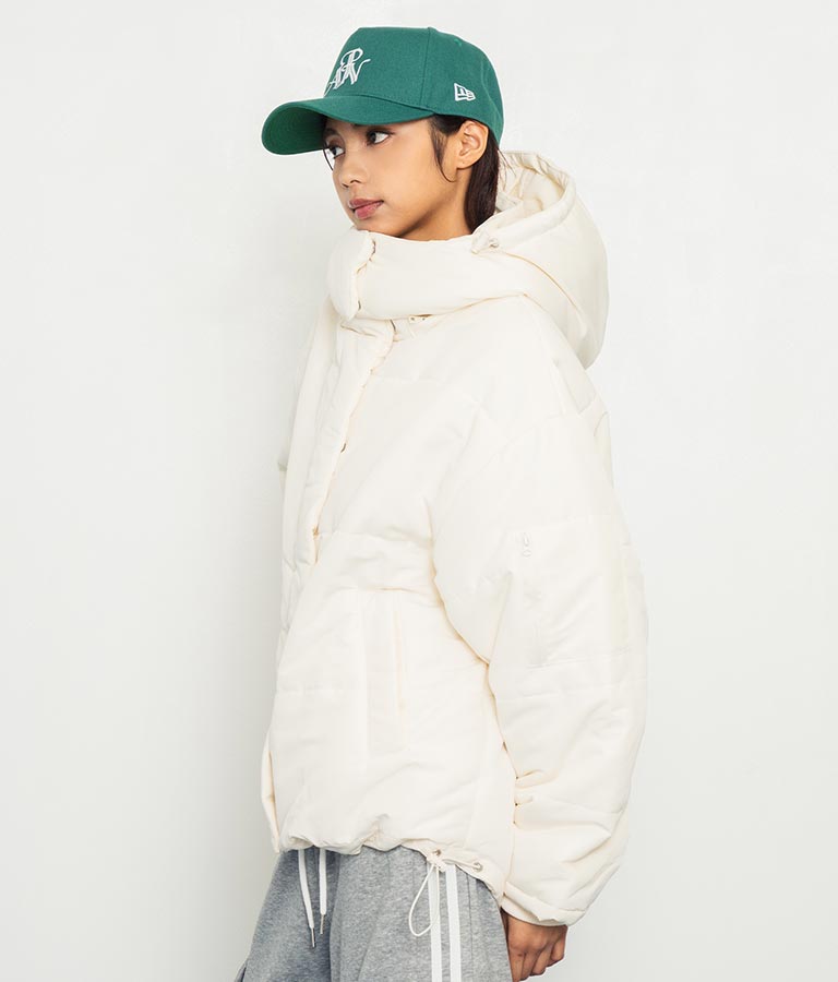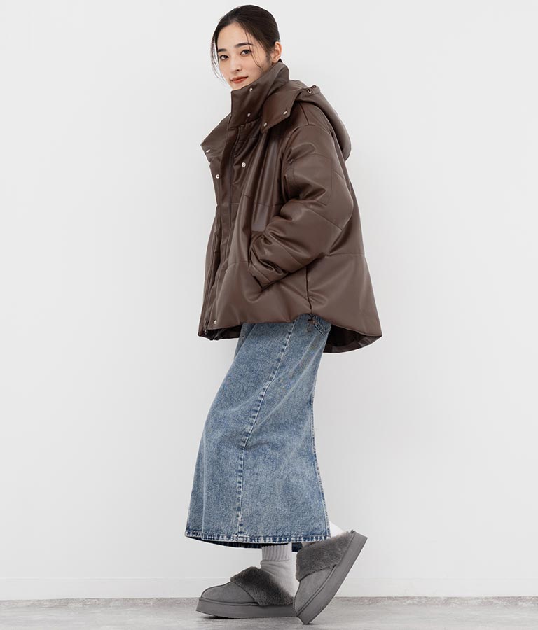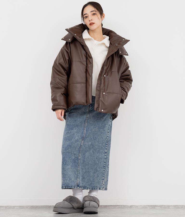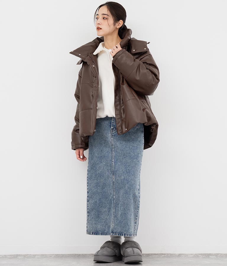 大人カジュアルも大人可愛いもスタイリングが叶うシンプルなエコクラウド中綿オーバーブルゾン。