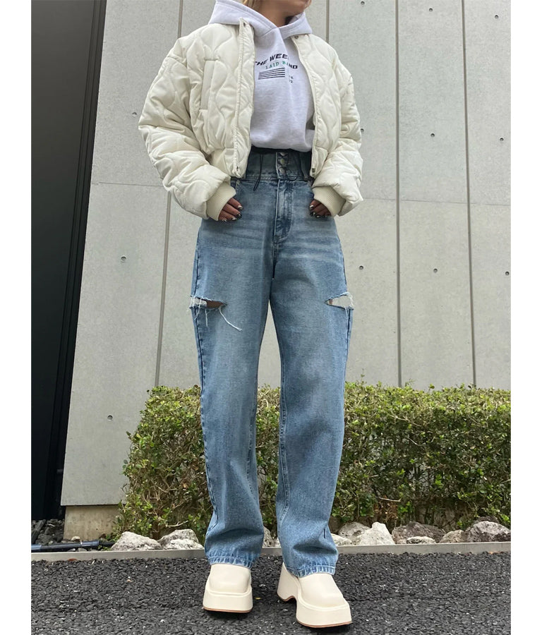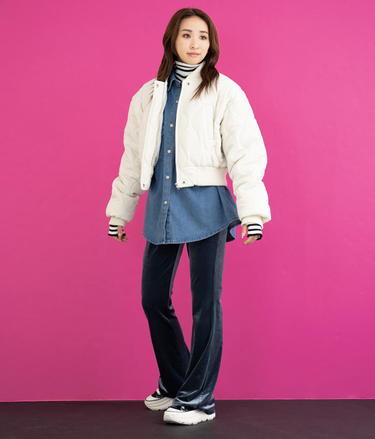 コンパクトな丈感のためボトムとのバランスも取りやすく、ハイウエストのボトムと合わせると脚長効果も期待できます。