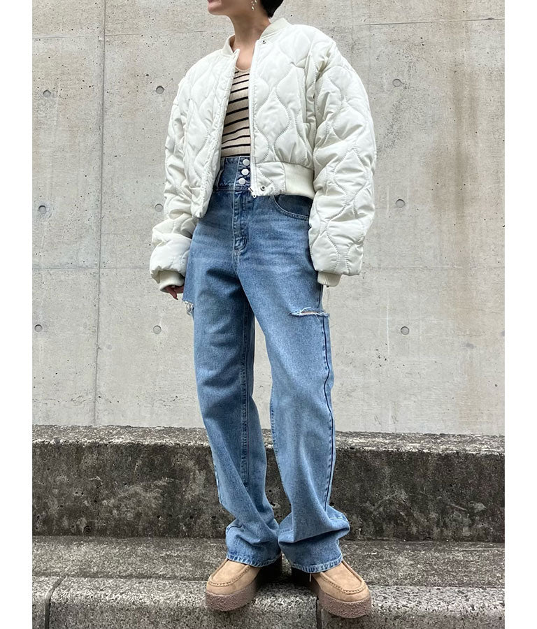 クロップド丈がトレンド感溢れるキルティングジャケット。