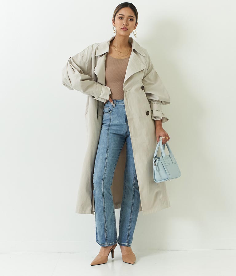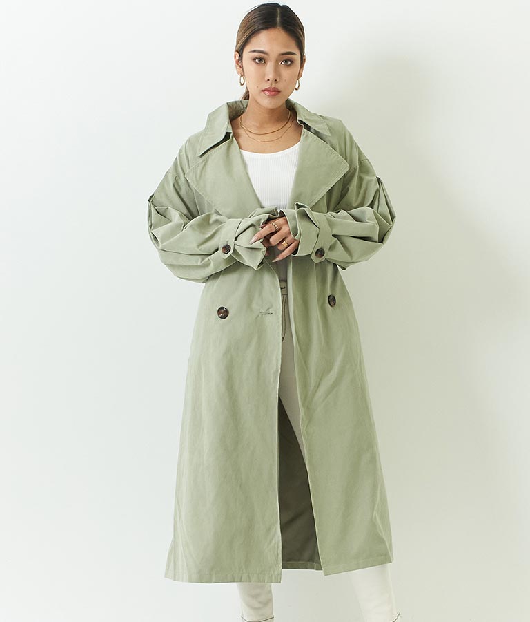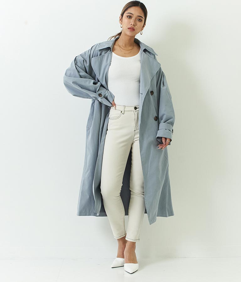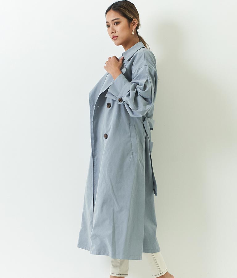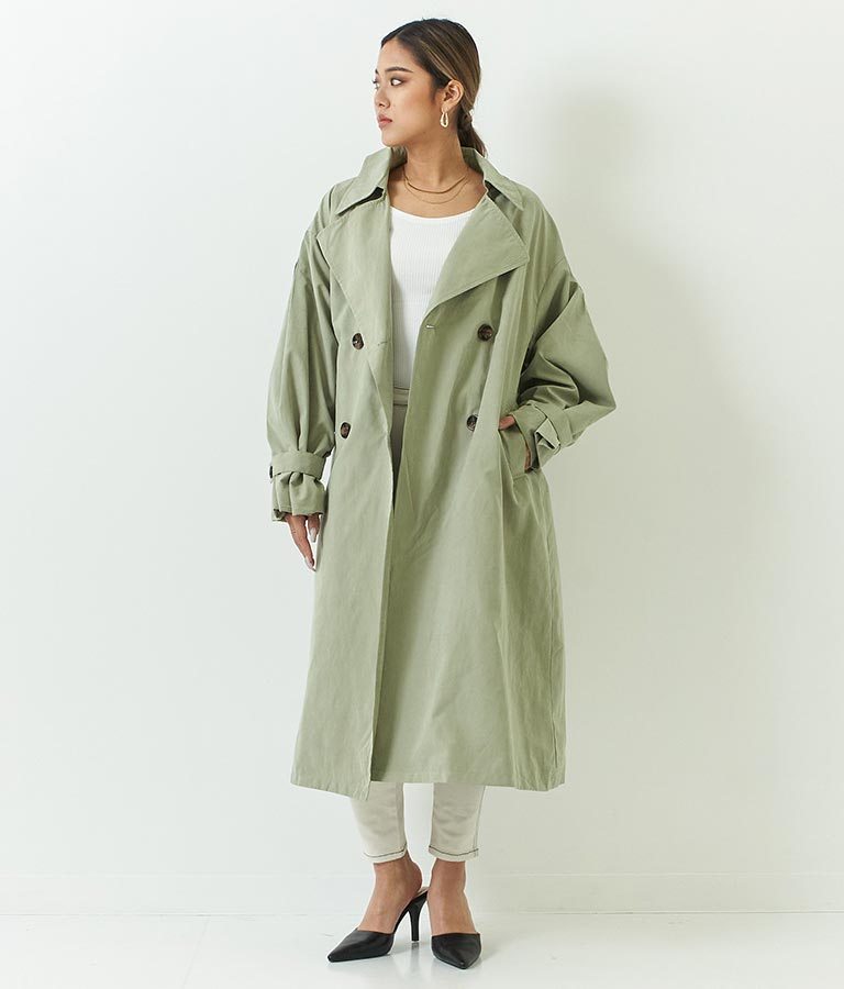 落ち感のあるスエード調の素材が大人の装いを格上げするトレンチコート。