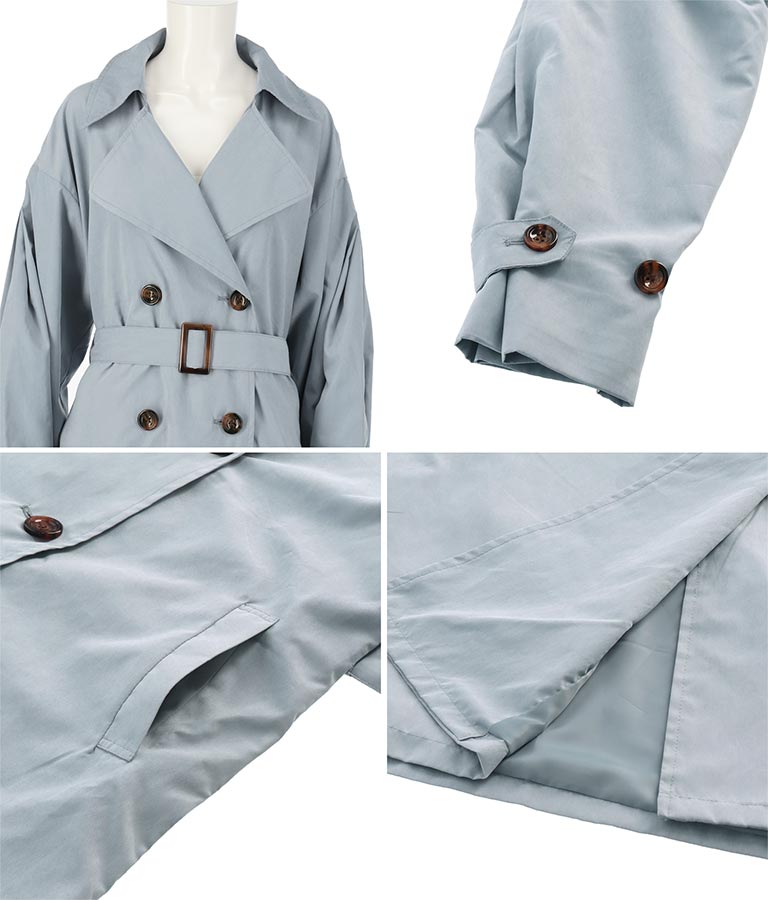 共布のリボンベルトでウエストマークしたり、ラフに羽織ったりとアレンジも自在。