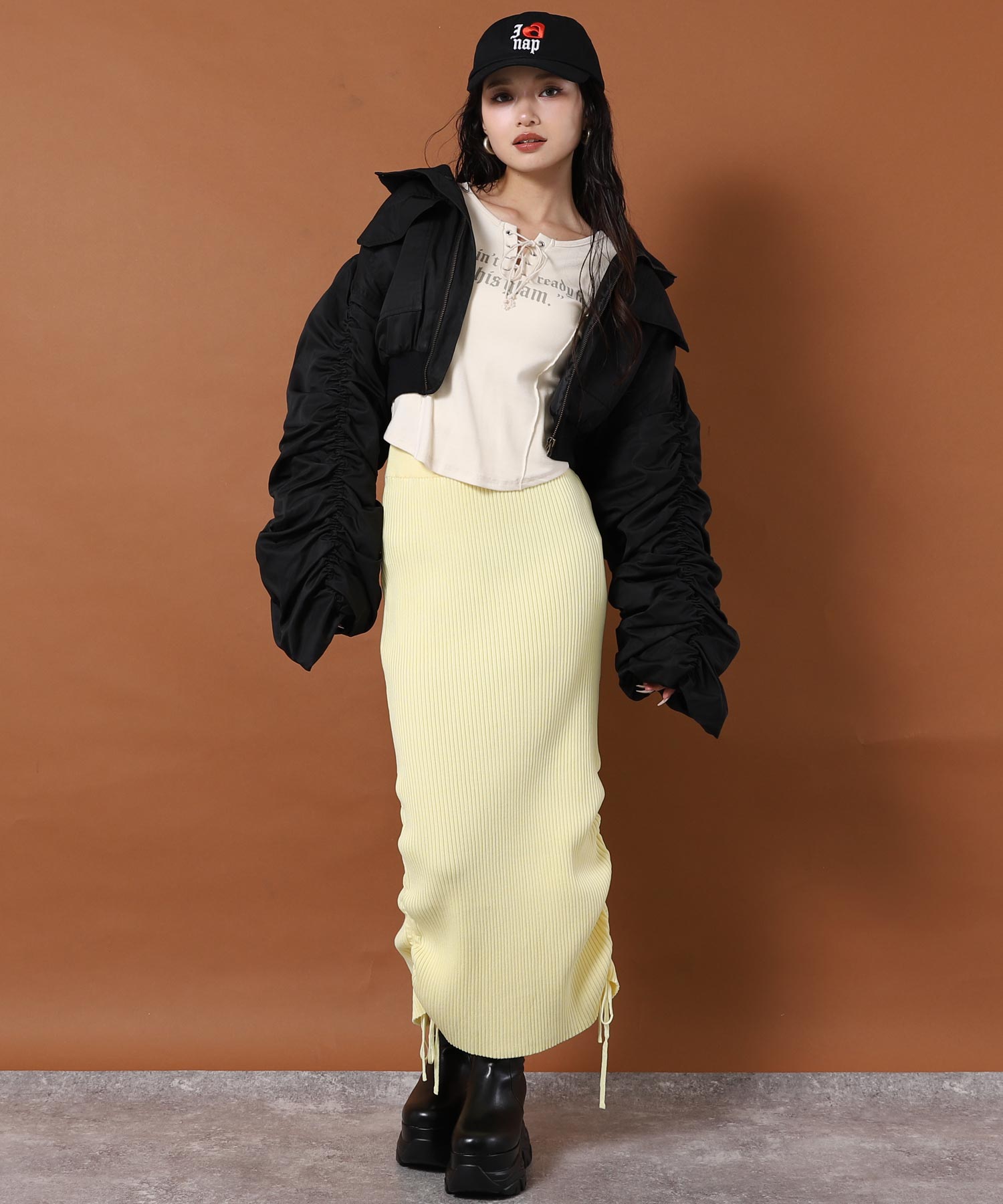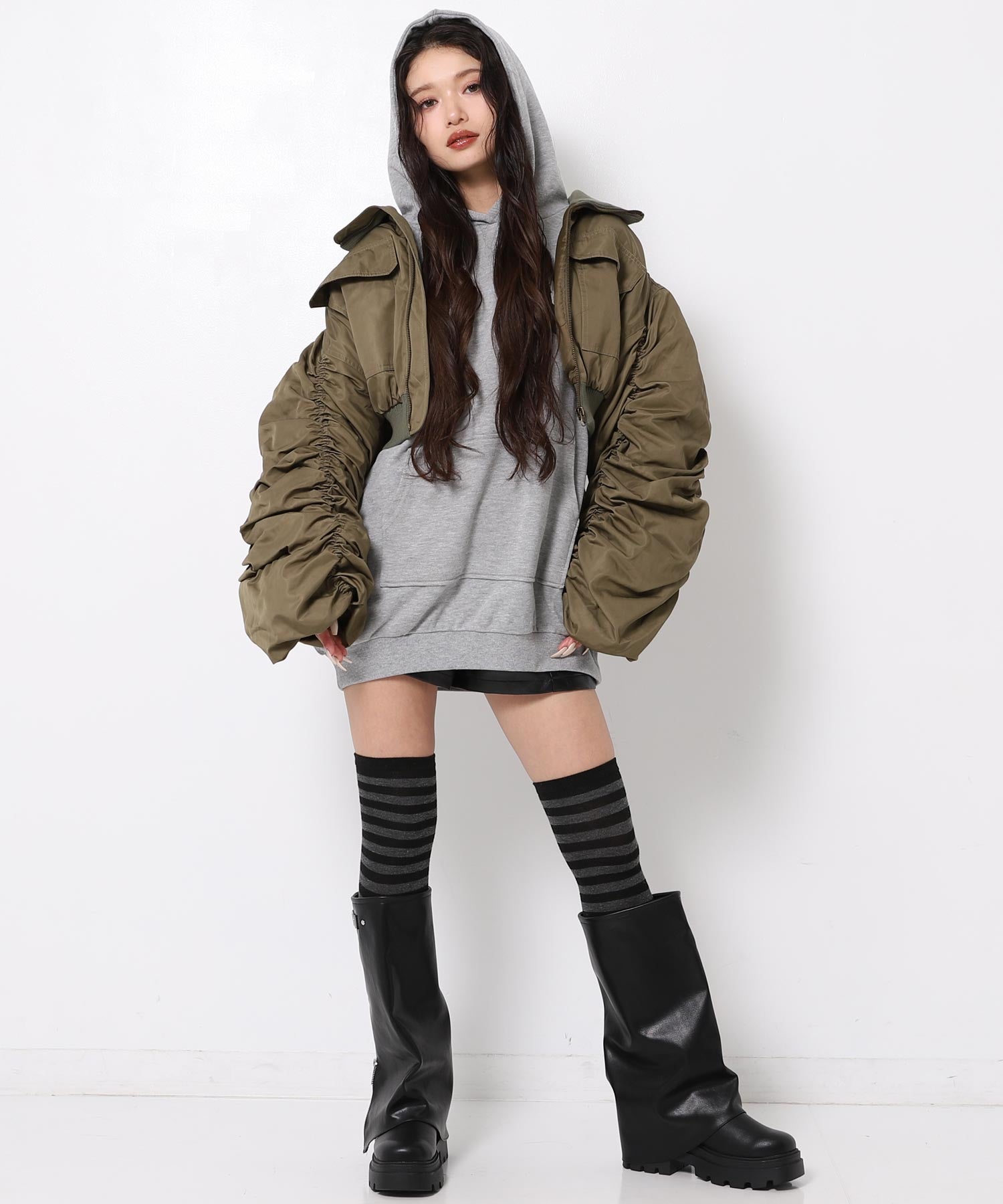 ミニスカートやショートパンツと合わせて甘辛ミックスに着こなすのもおすすめです。