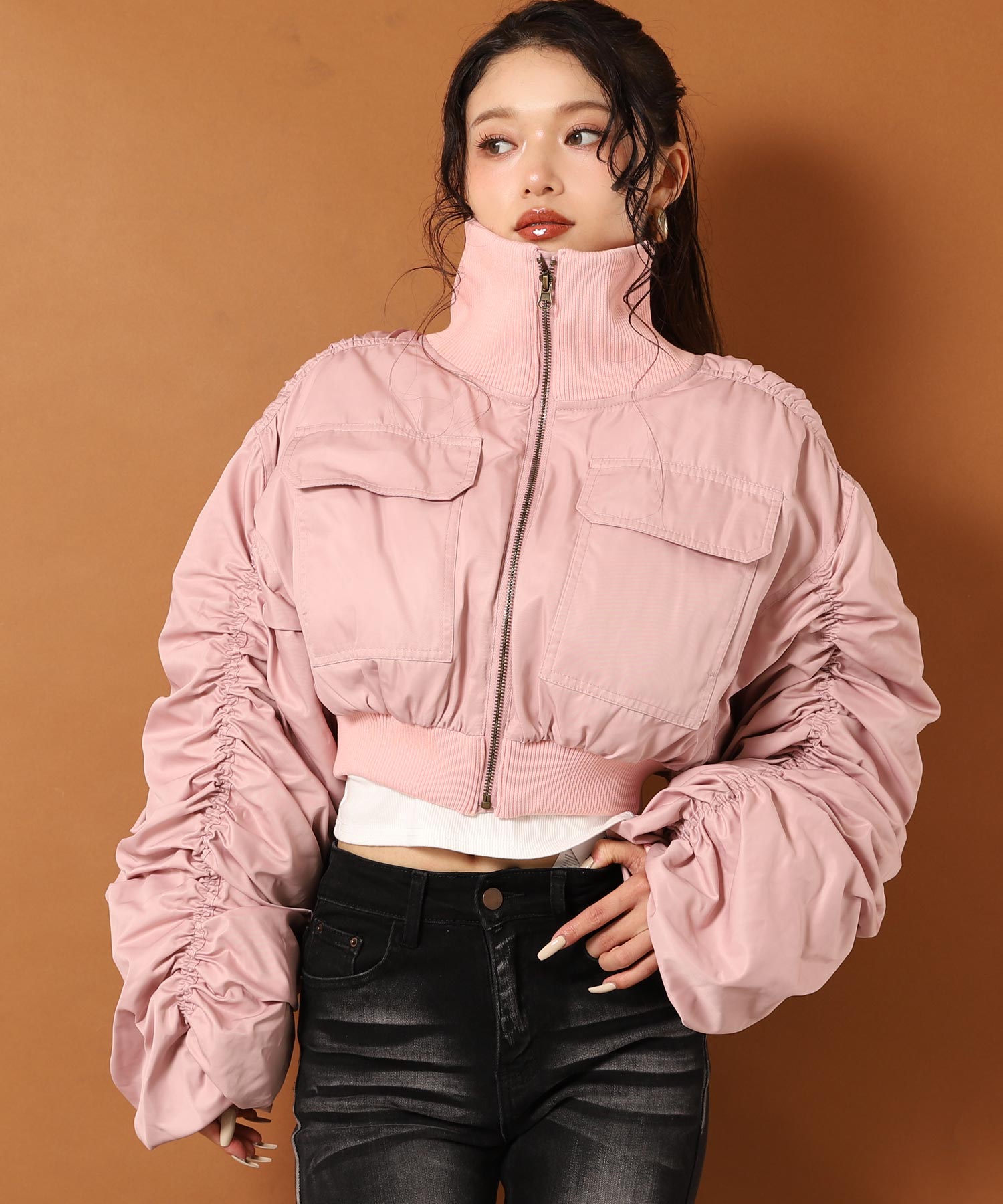 【販売間近】シャーリング スリーブ ショート ブルゾン 796-9367