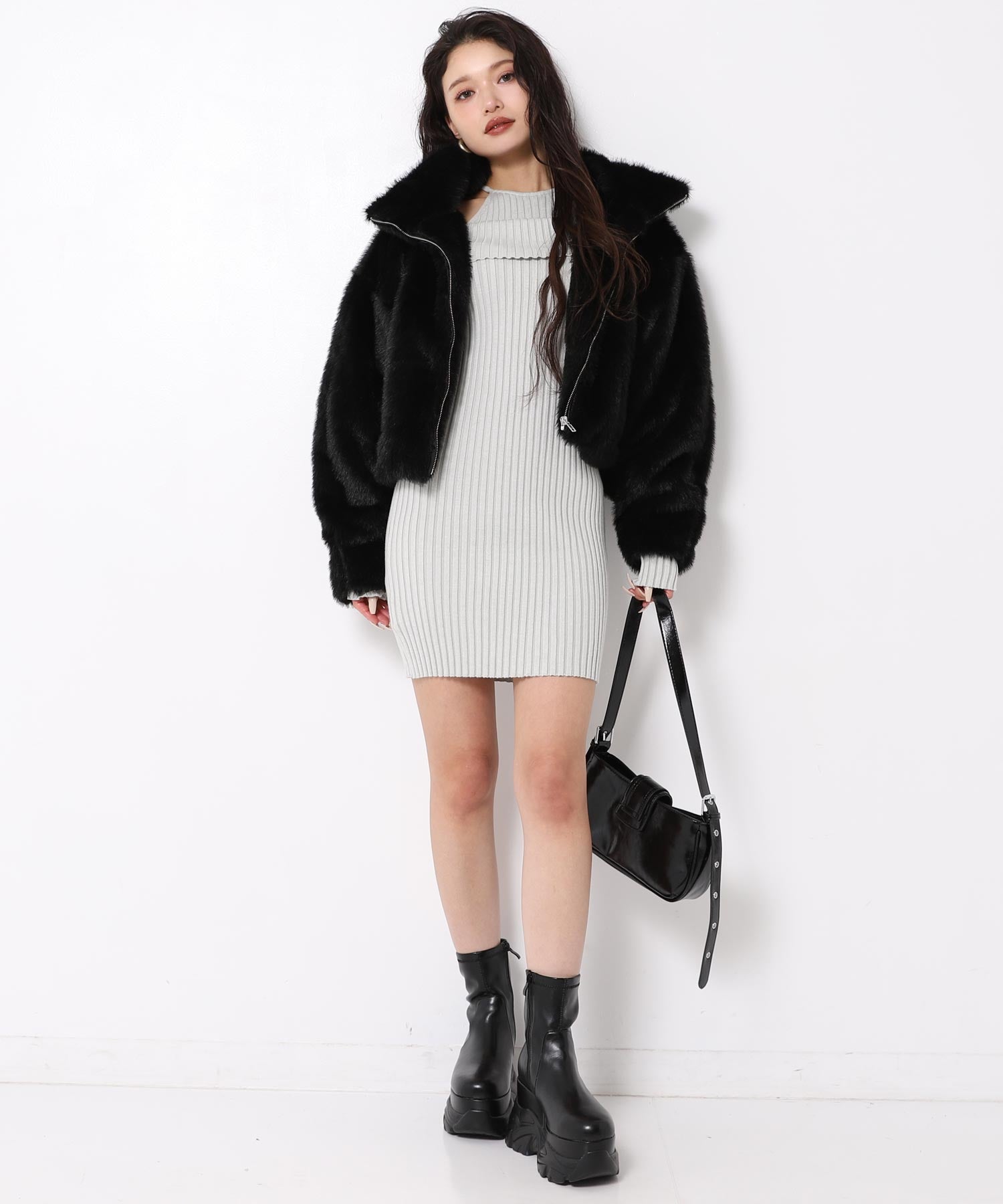 【販売間近】ハイネック フェイク ファー ブルゾン 796-9368