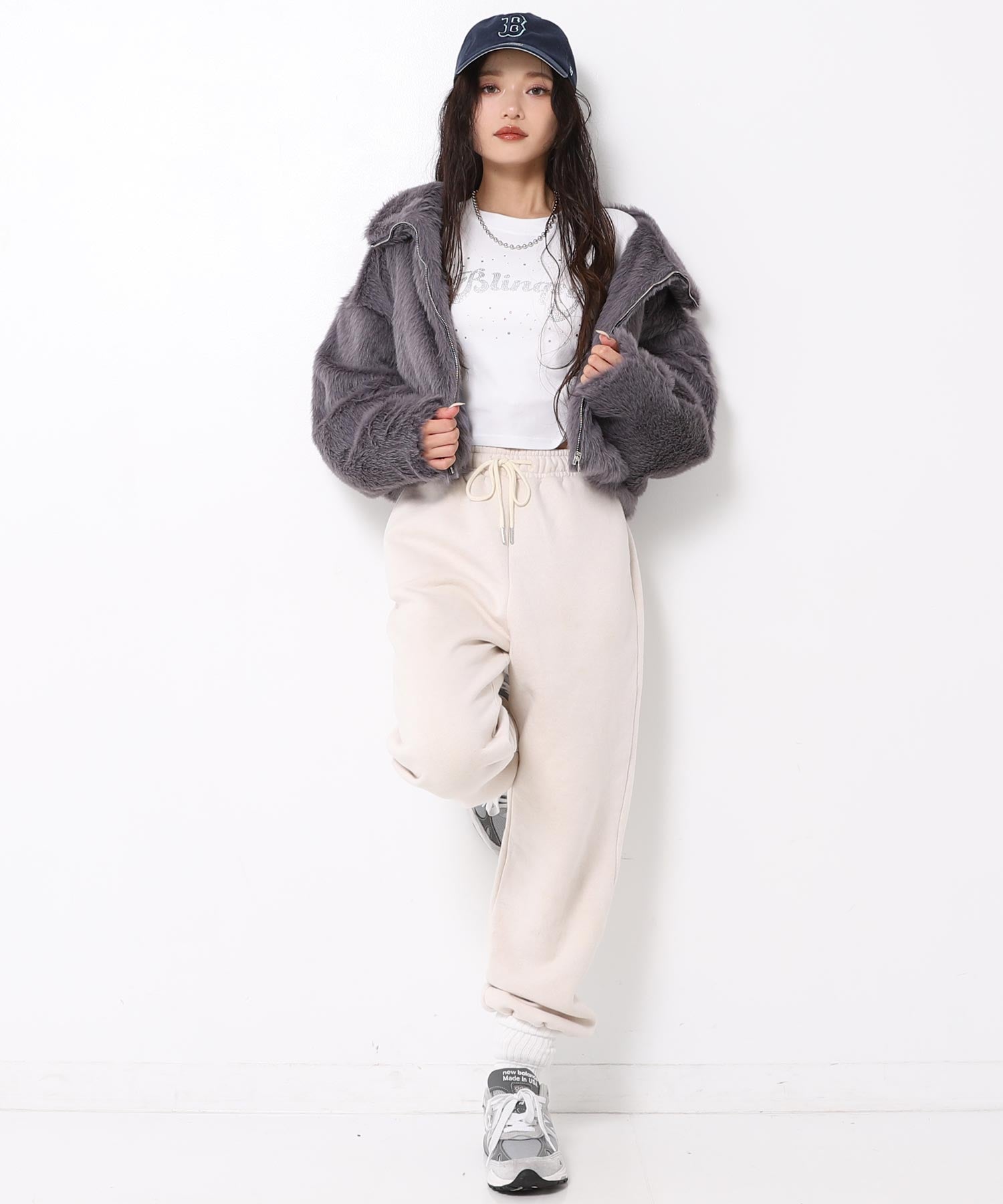 ショート丈で脚長効果もあり、ワイドパンツやスウェットとの相性も抜群です。