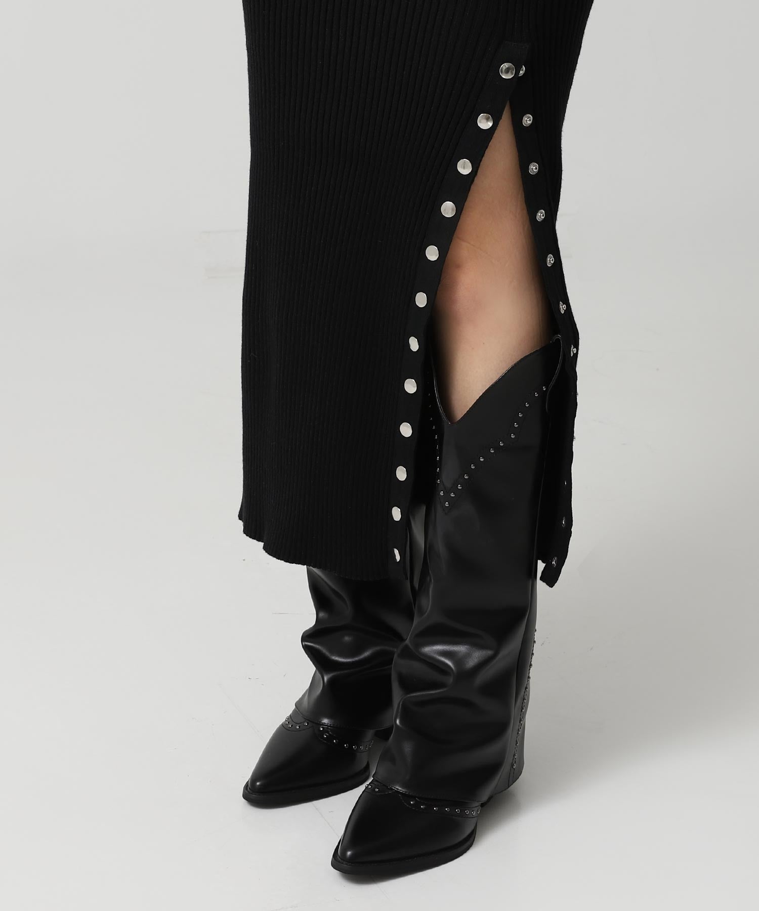 サイドに施されたドットボタン付きスリットは、動くたびに美しく揺れ、抜け感を演出。
