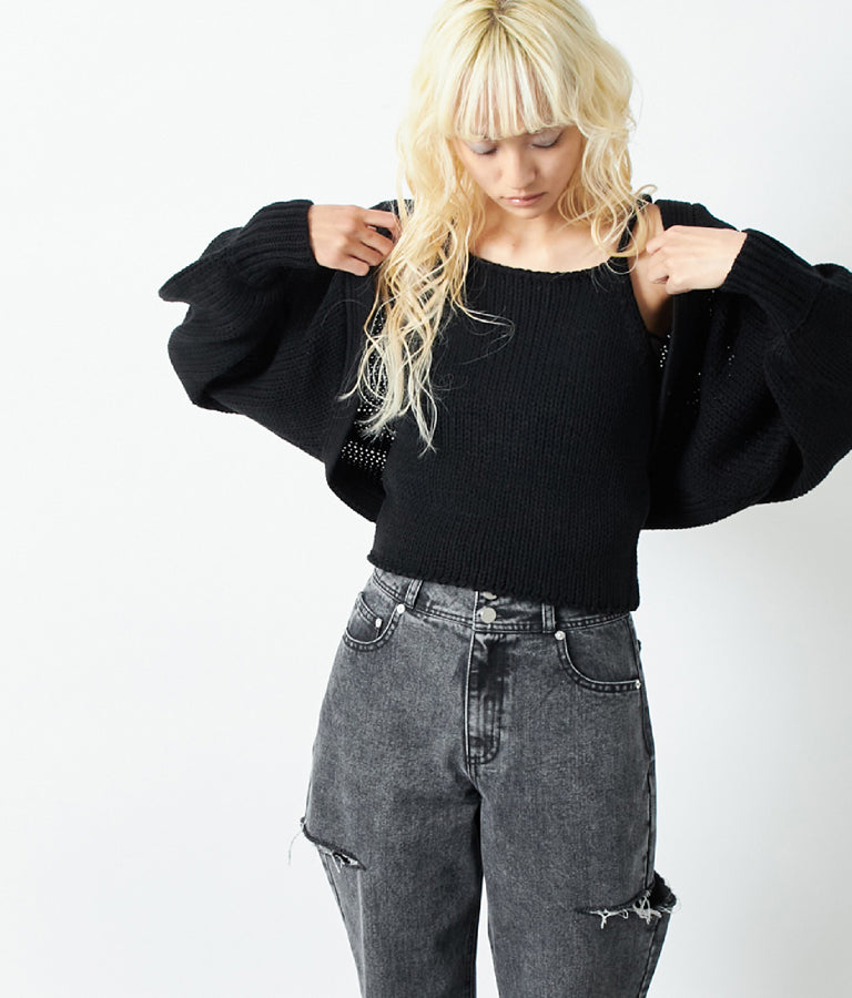 同素材のニットキャミソールとボレロがセットになったアンサンブル。