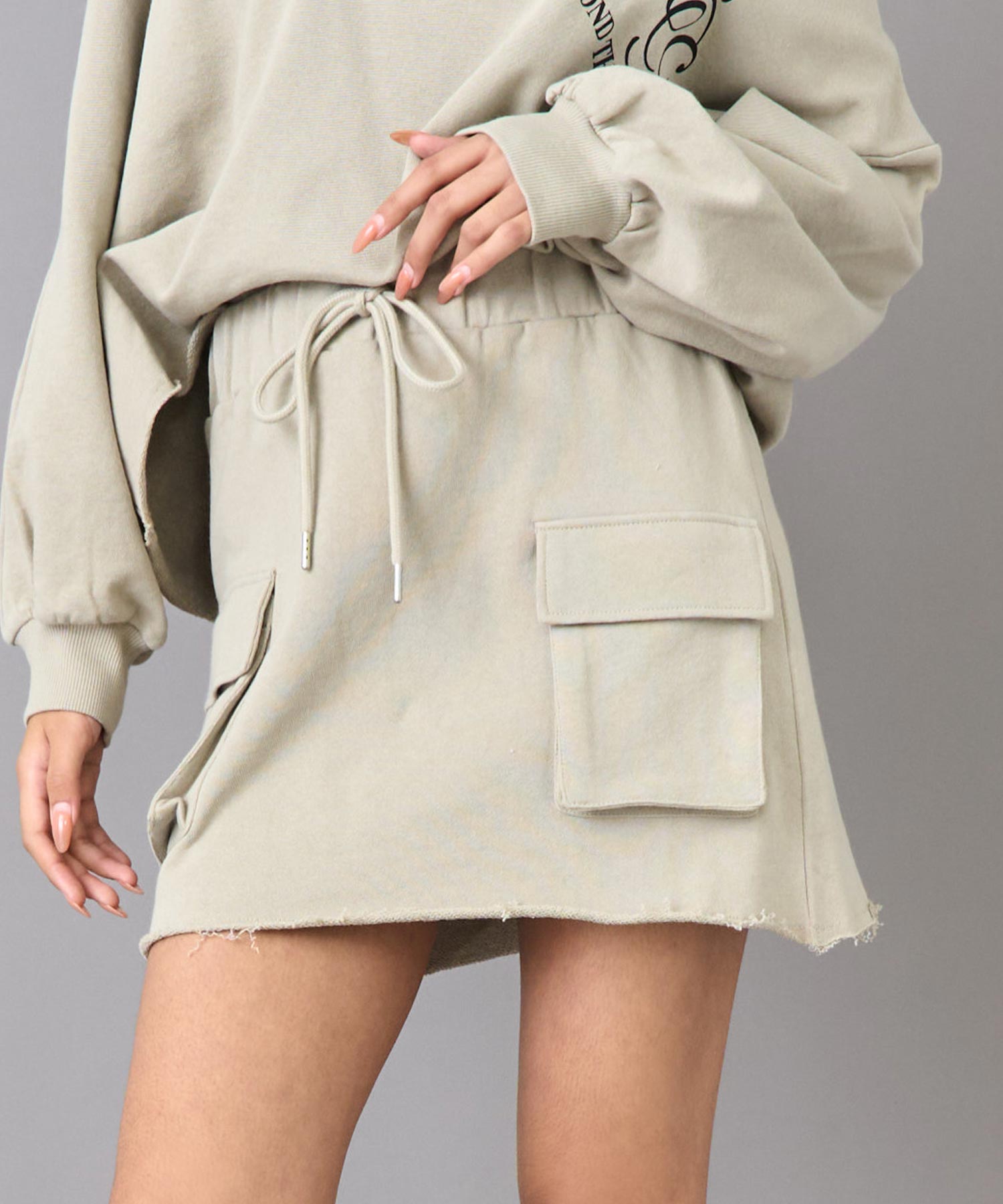 ワンショルダー トップス × カーゴ ミニスカート 裏毛 setup 798-9384