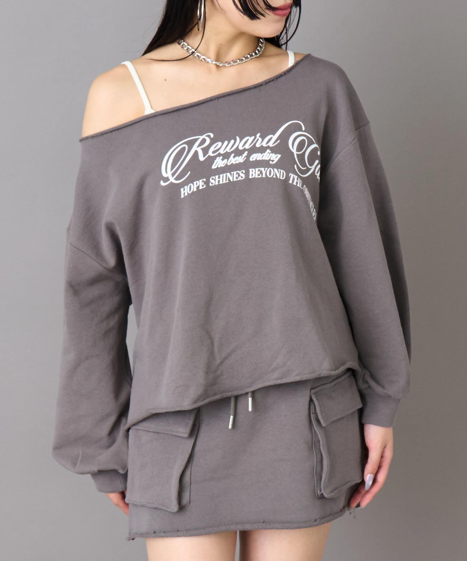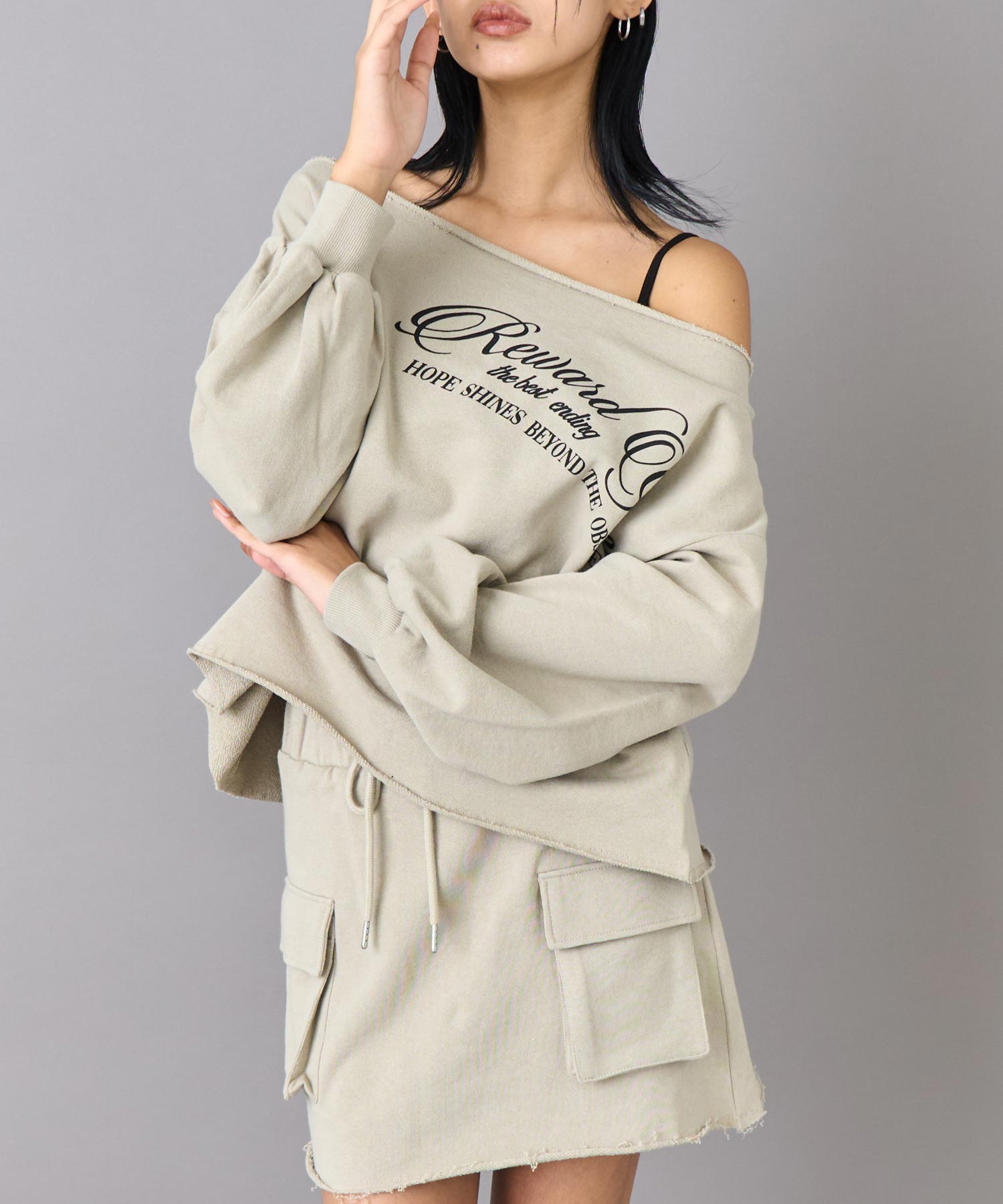 トップスは程よくルーズなワンショルダー仕様で、抜け感のあるスタイリングを叶えます。