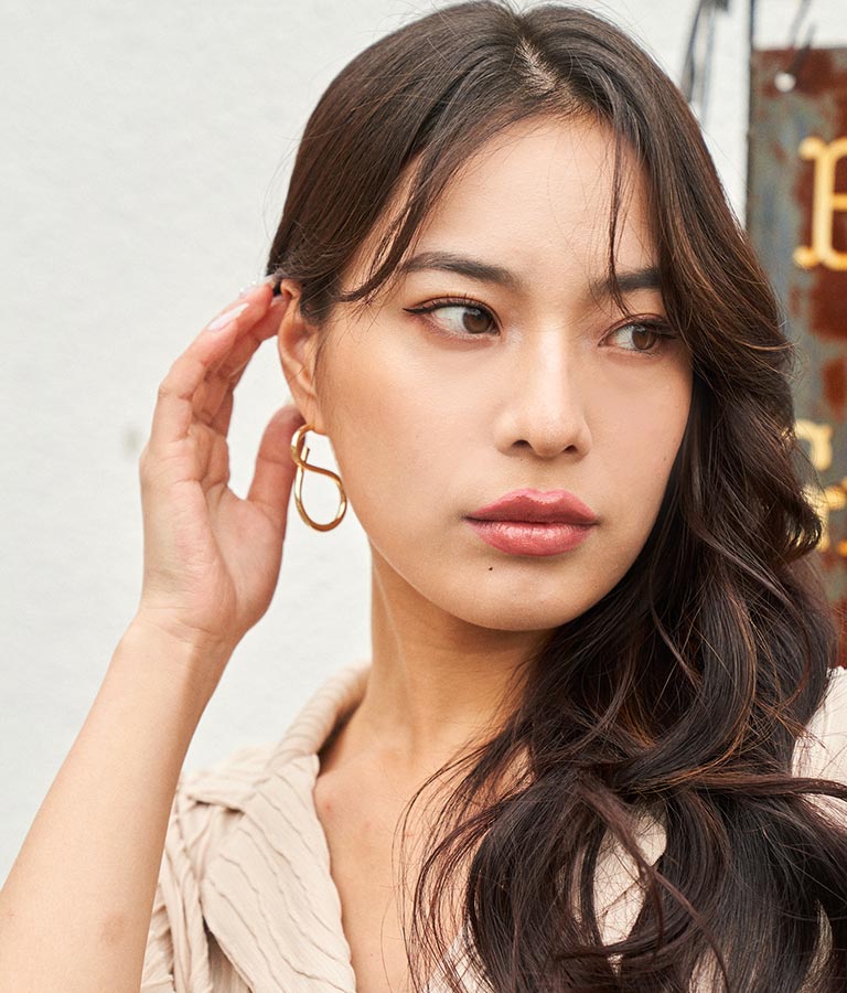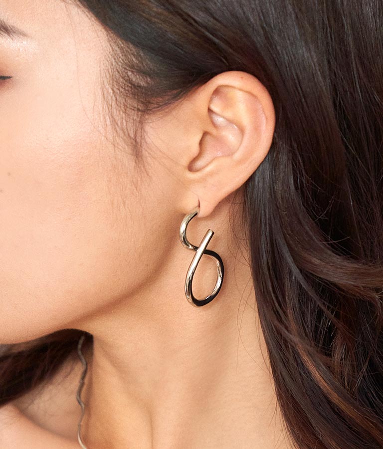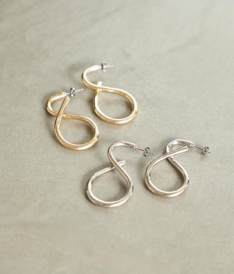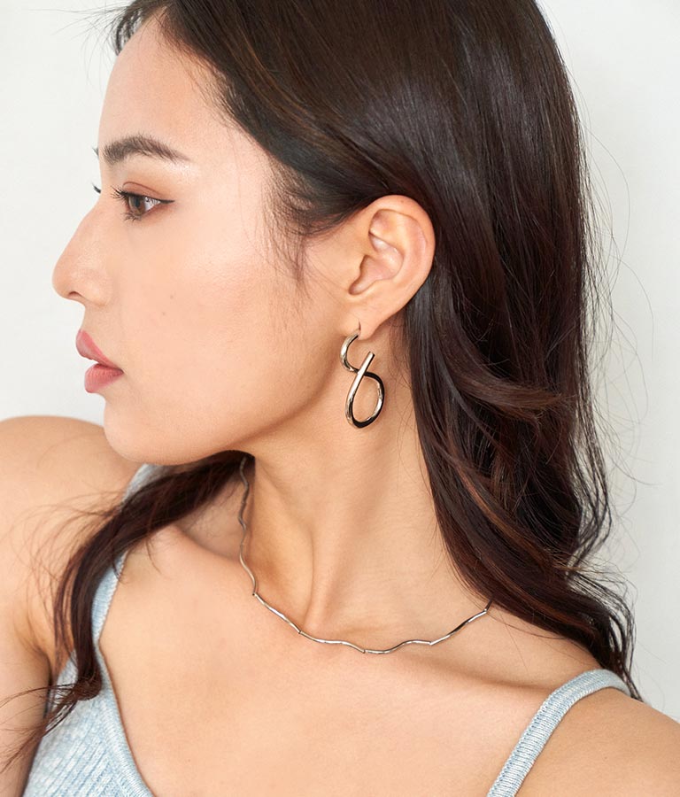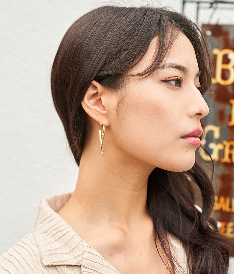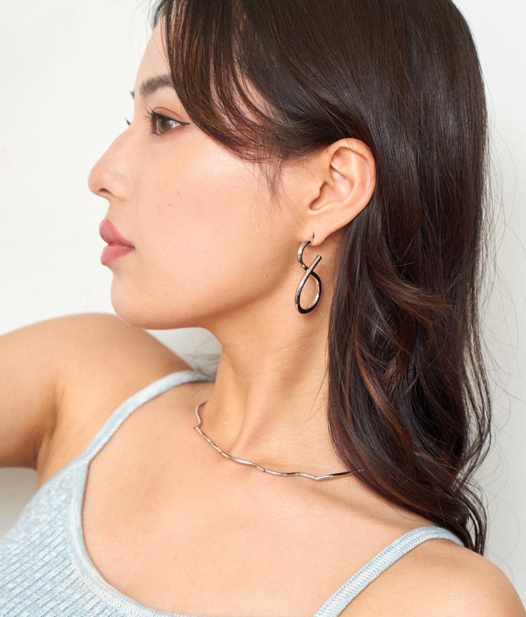 曲線がしなやかな印象を与え、ニュアンス感のある独特のシルエットが耳元に映えるデザインです。