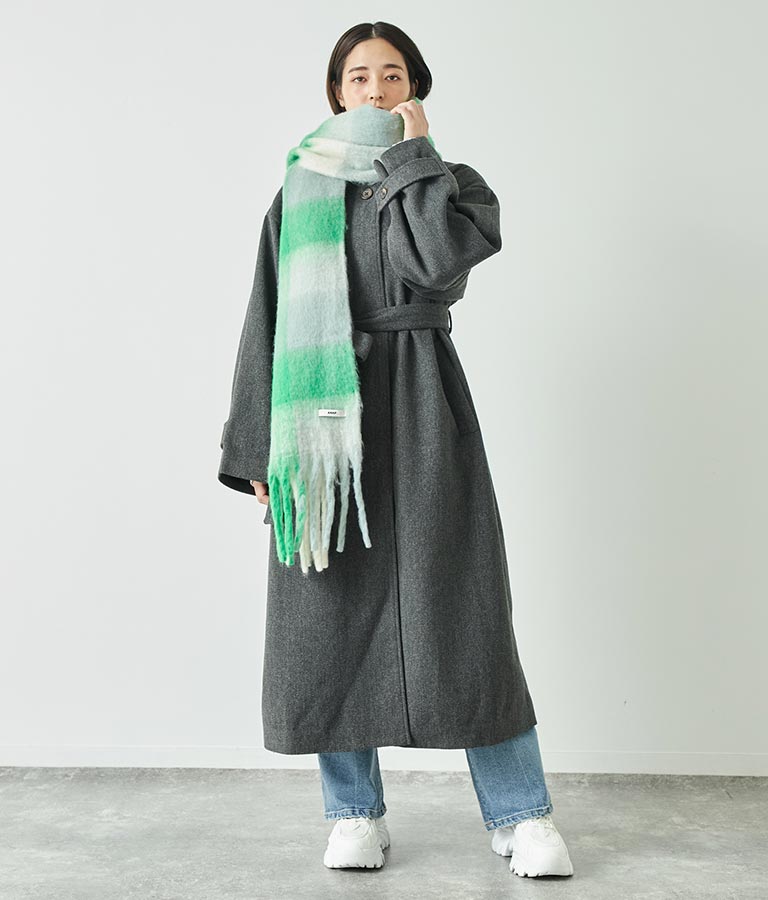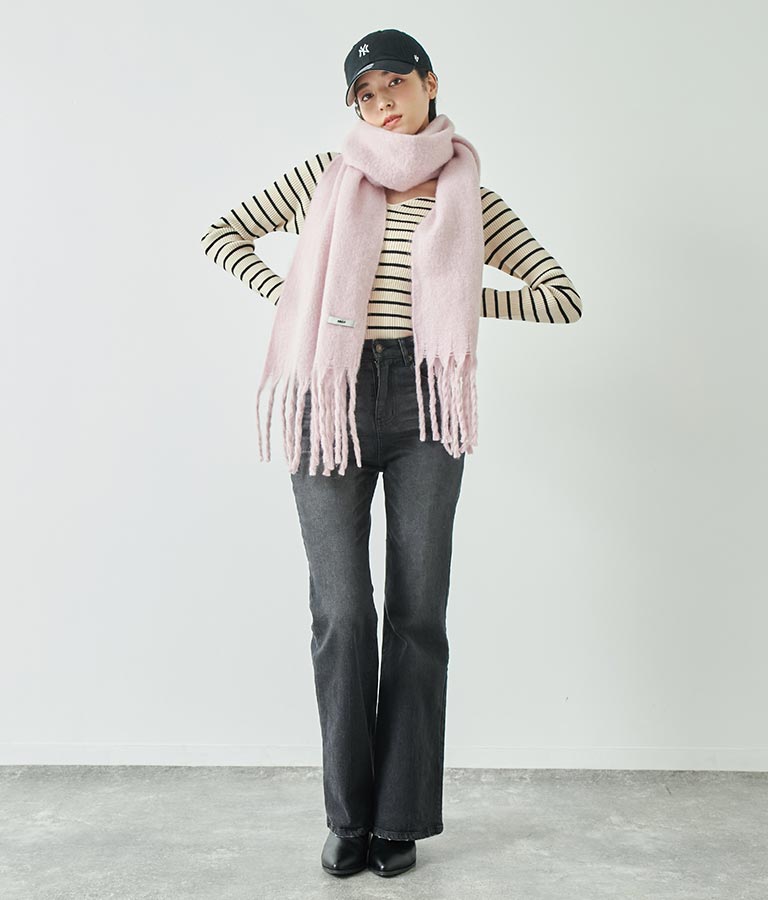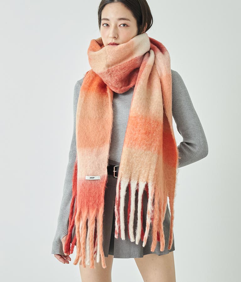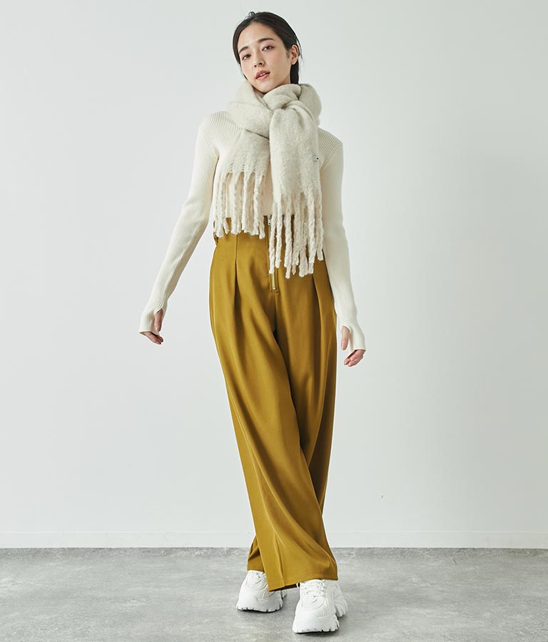 フリンジと、巻くことで出来るもこもことしたシルエットが小顔効果も◎