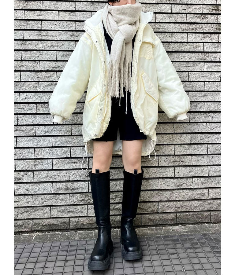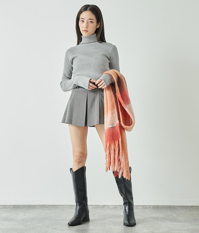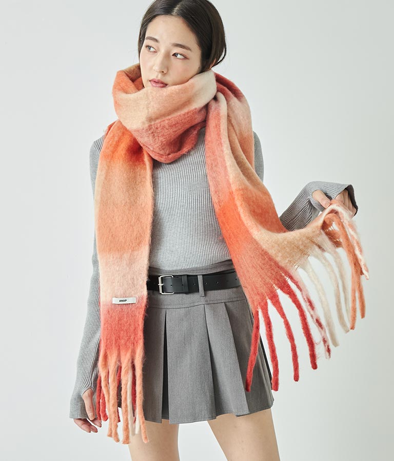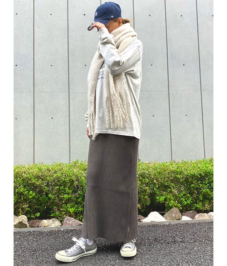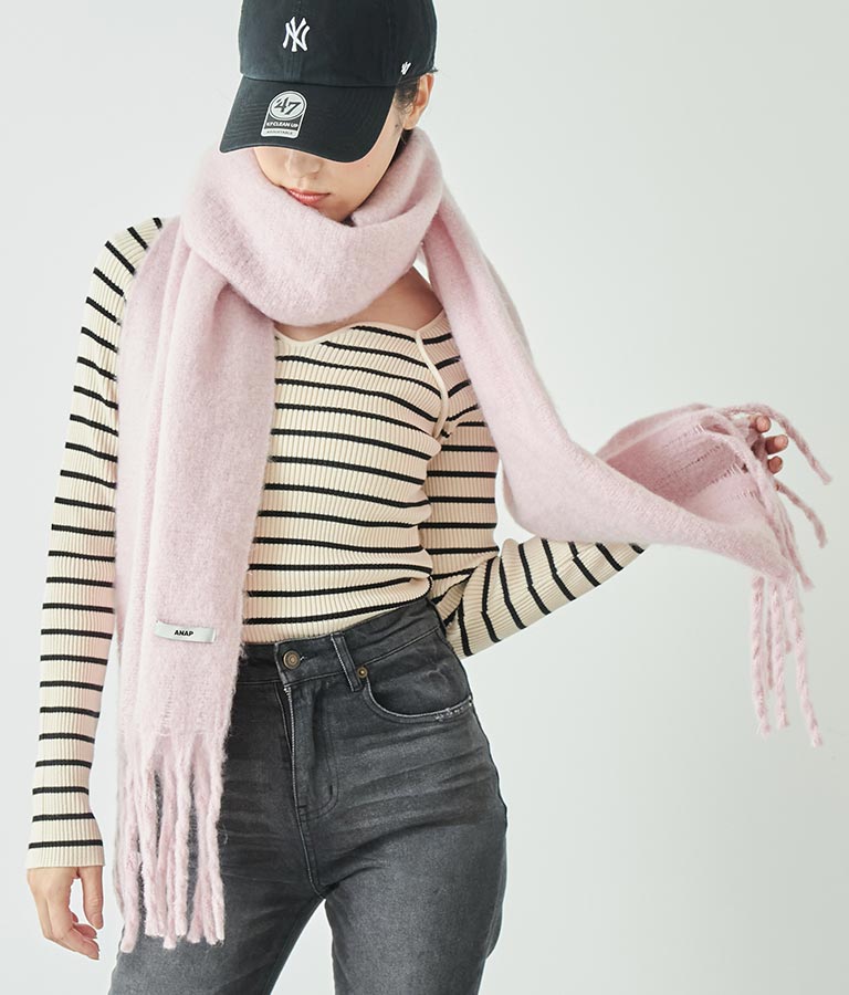 フリンジと、巻くことで出来るもこもことしたシルエットが小顔効果も◎