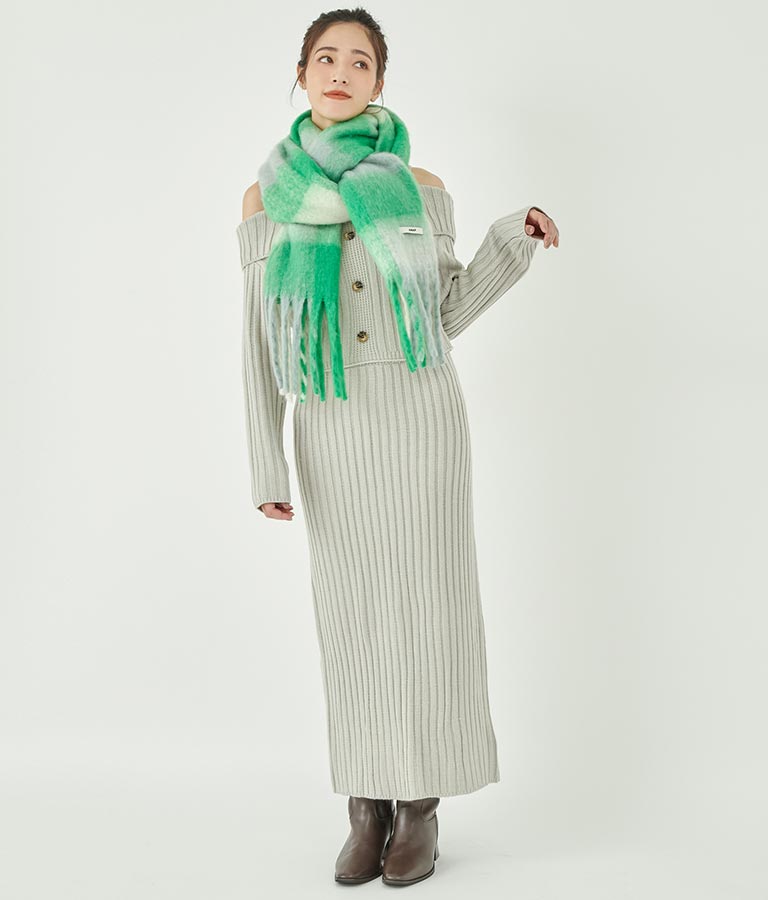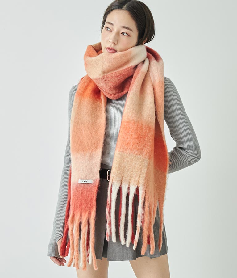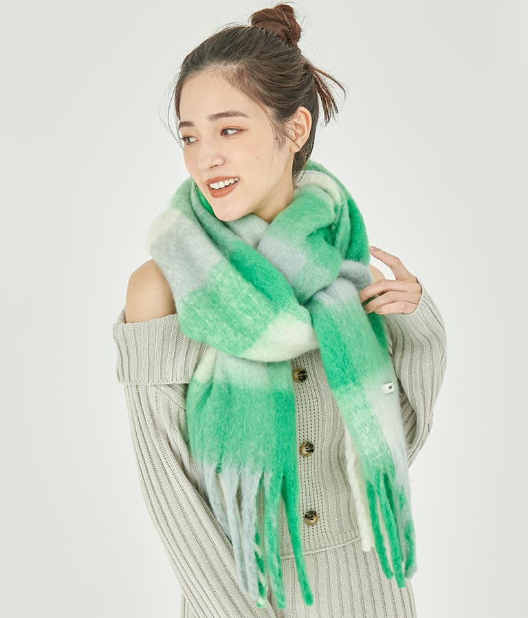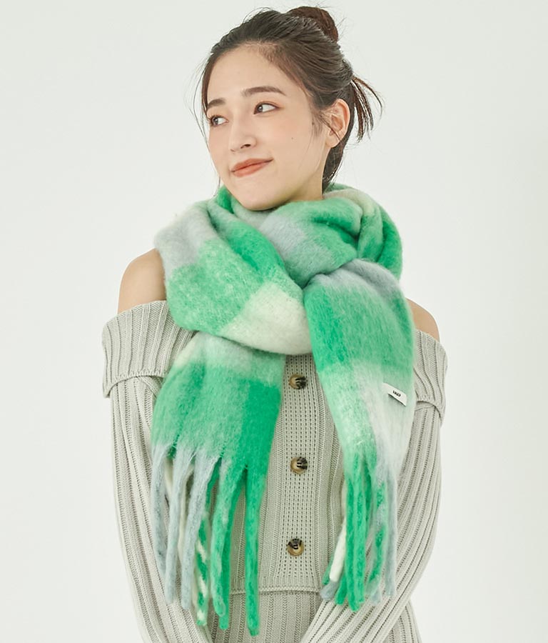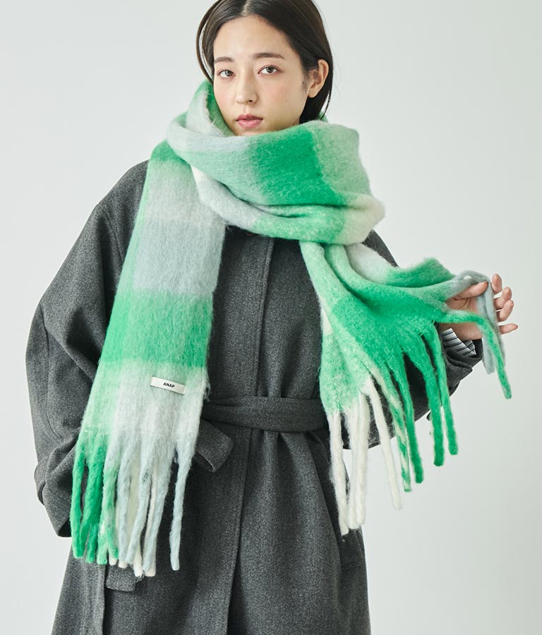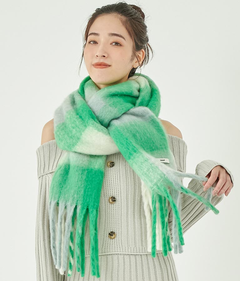 首に巻くのはもちろん、幅が広い大判タイプなのでマフラーやひざ掛け、肩にかけて着用できる便利なアイテムです。