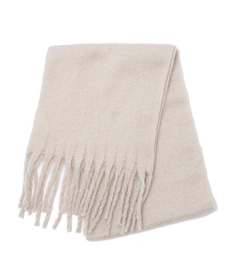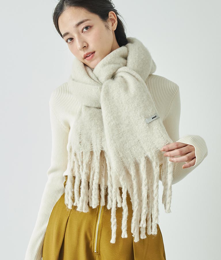 起毛した柔らかな心地よい肌触りのフリンジ大判ストール。