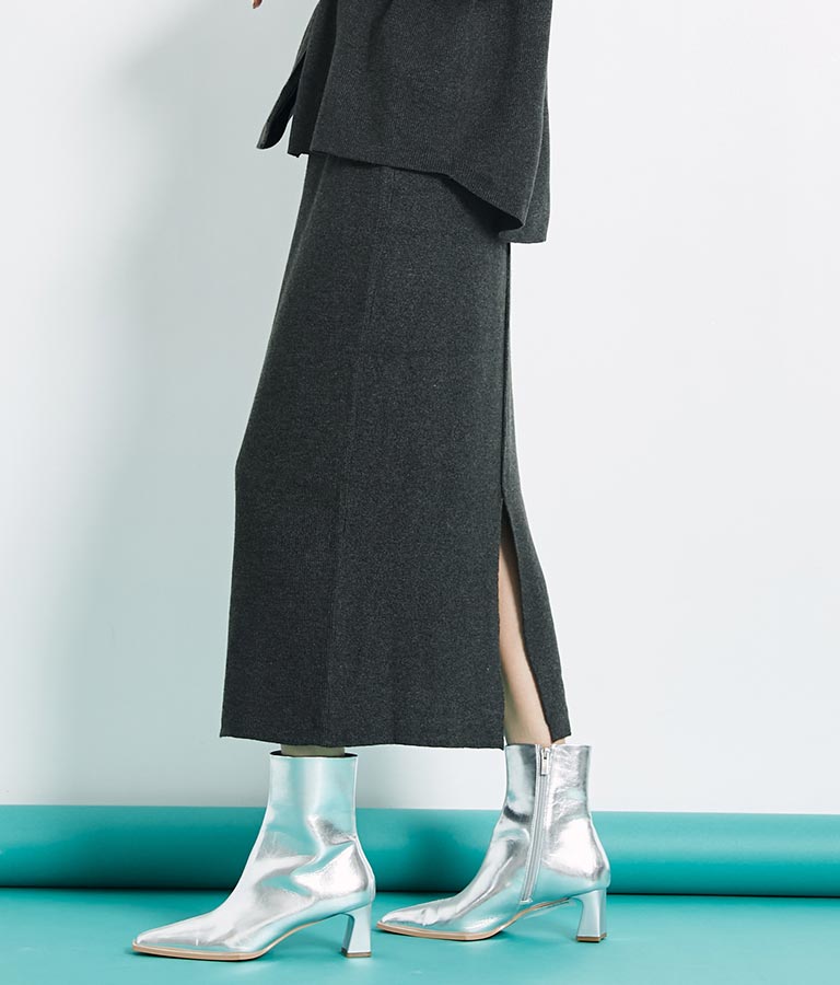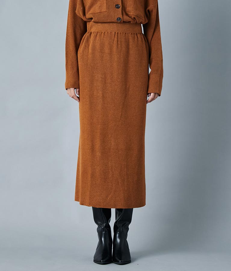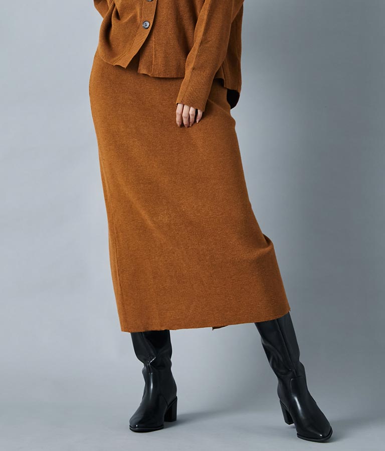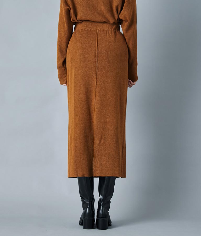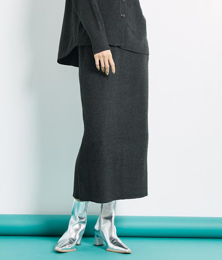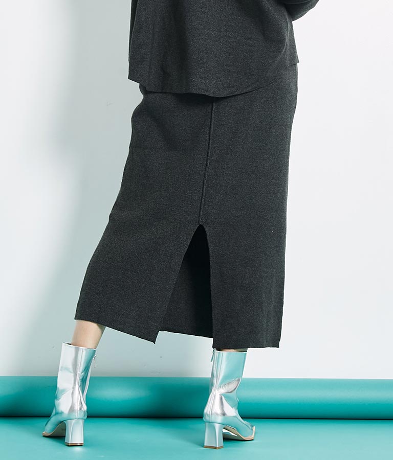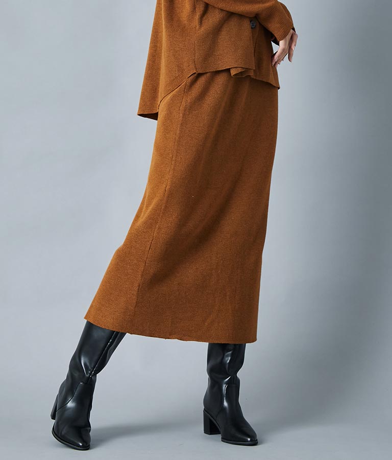 伸縮性のあるリブニット生地を使用し、体のラインをきれいに見せてくれるナロースカート。