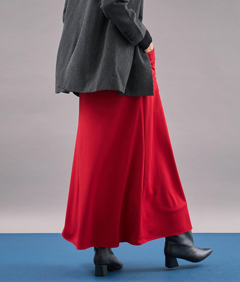 裾に広がるセミフレアシルエットが大人っぽくトレンド感を演出、シンプルながらも女性らしいコーデにまとまる落ち着きのある1枚。