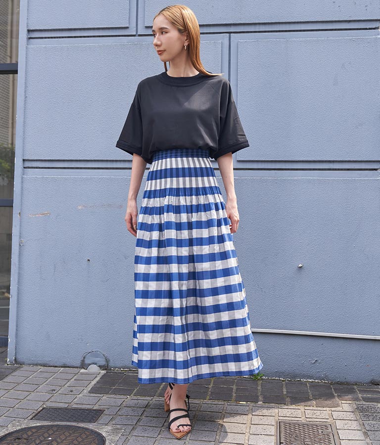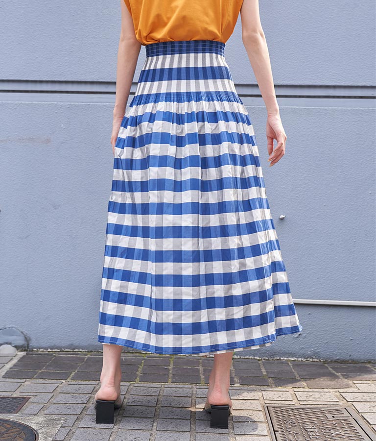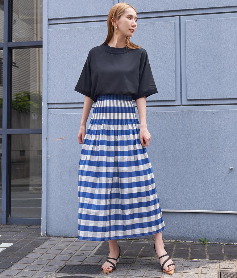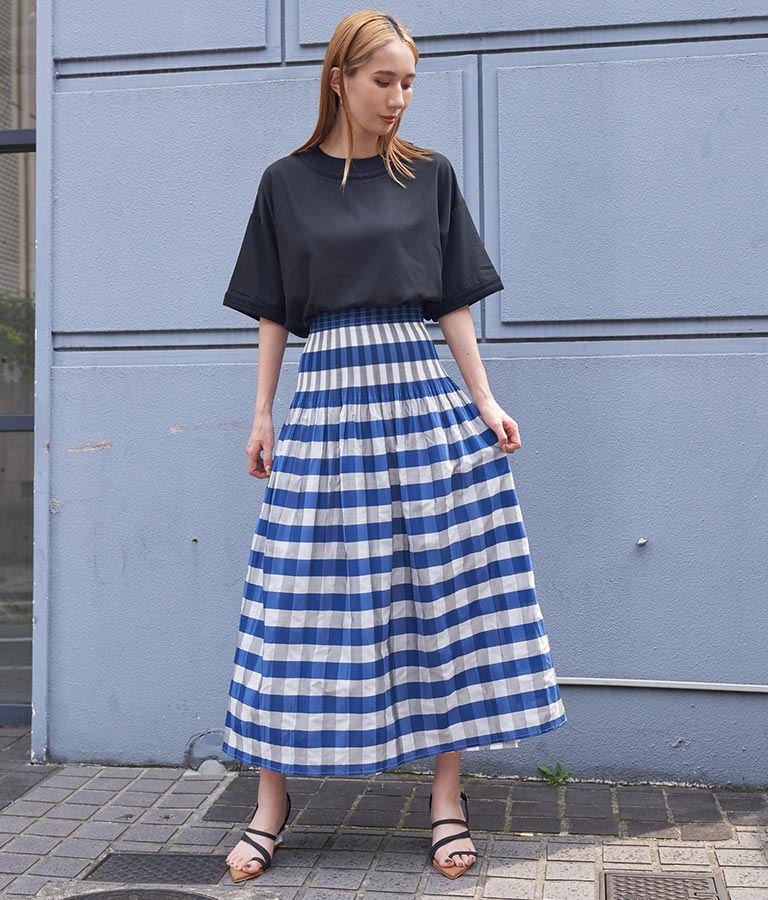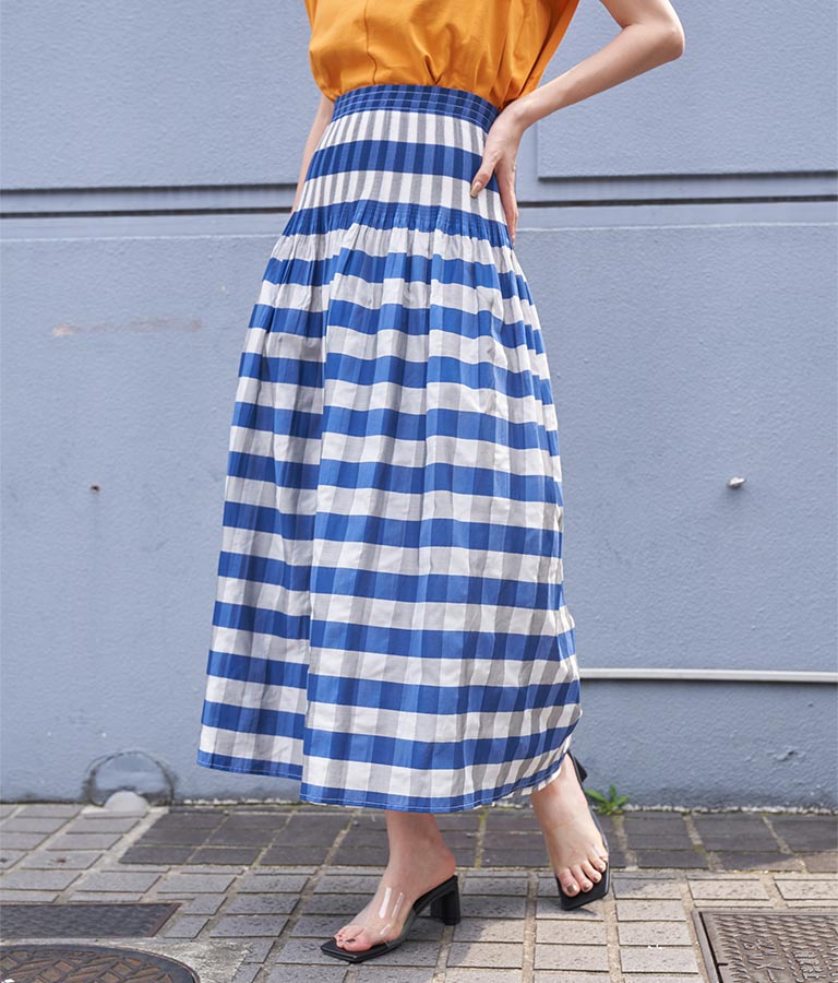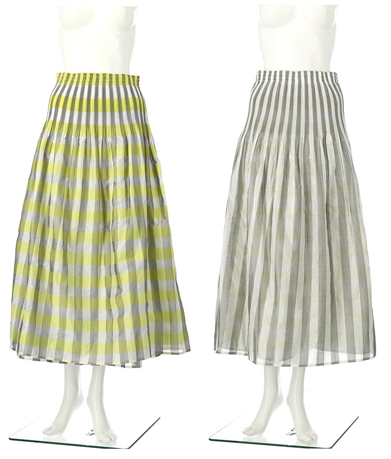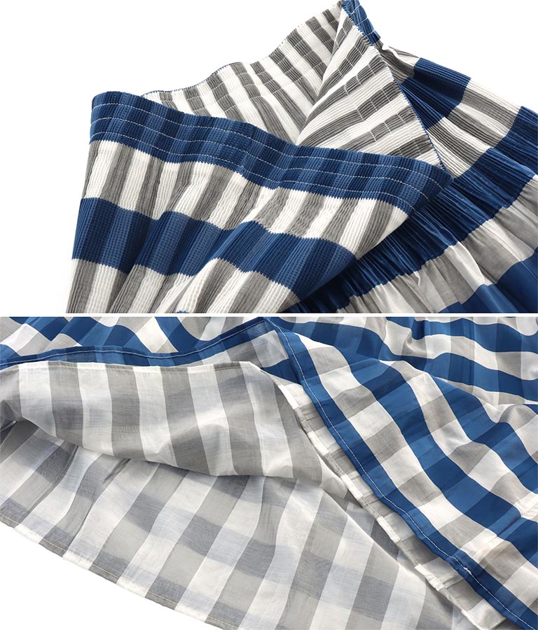 表面はチェック柄、裏面はストライプ柄と2WAYで楽しめるスカート。