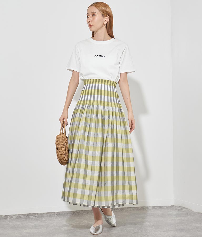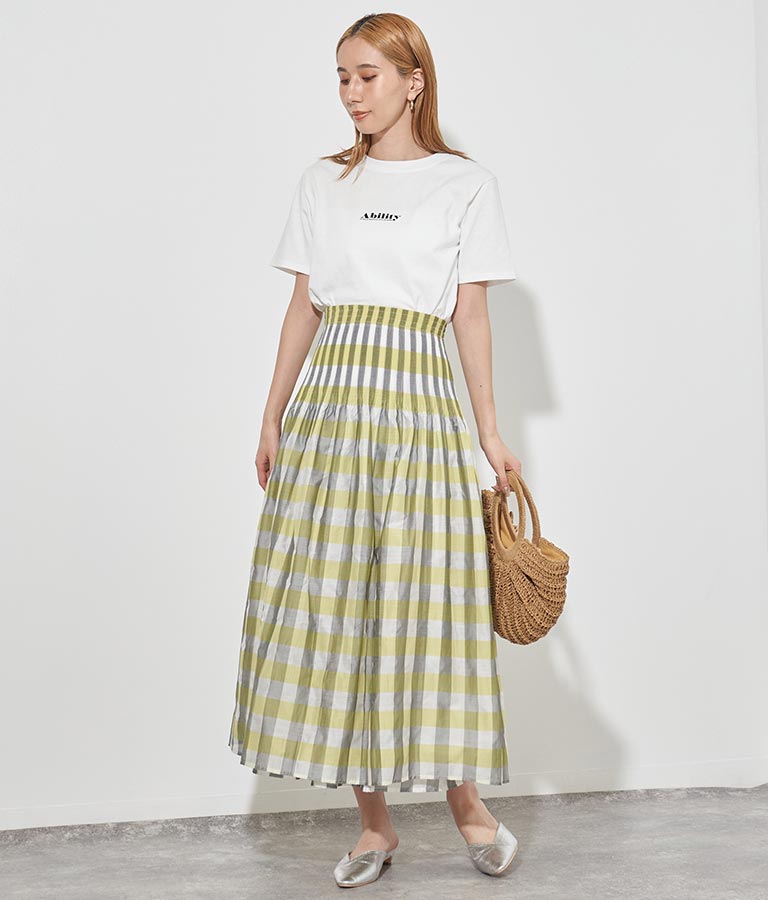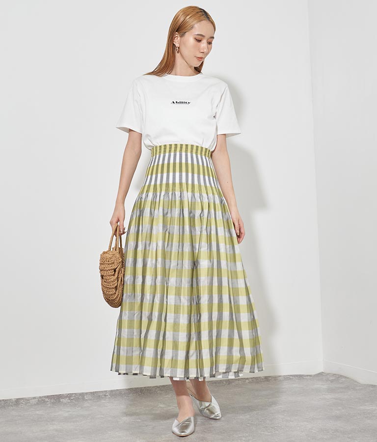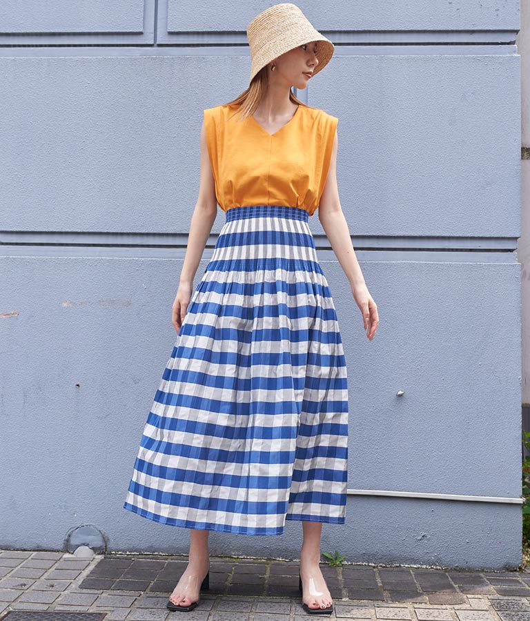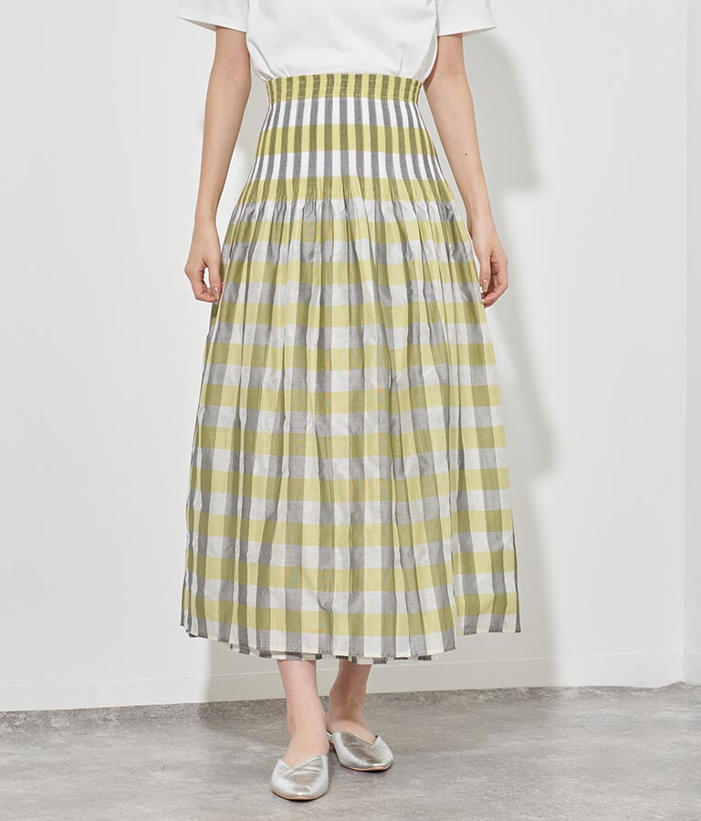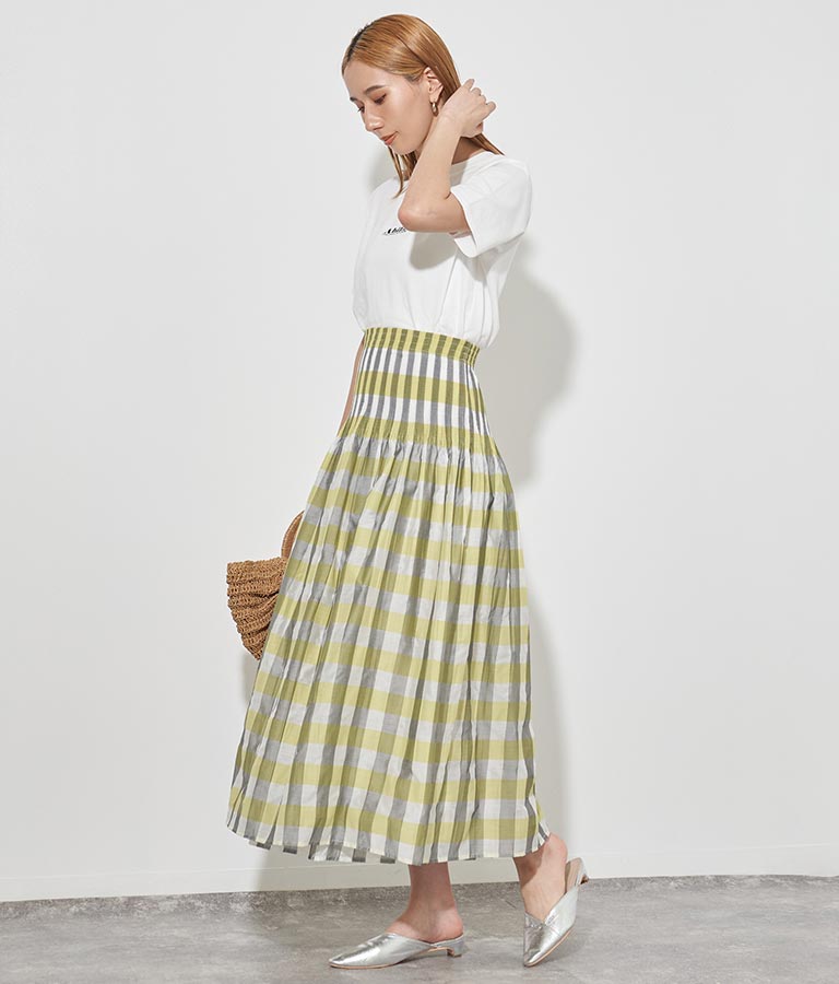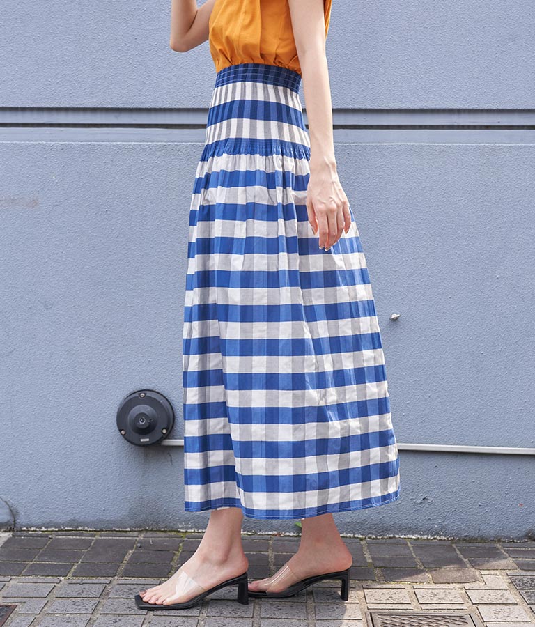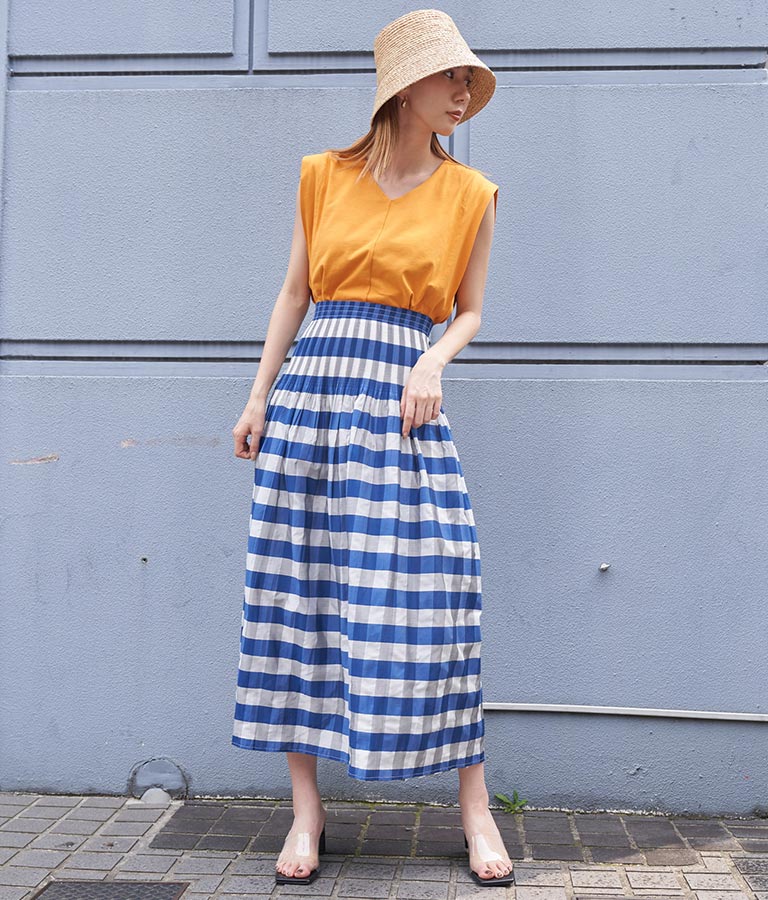 表面はチェック柄、裏面はストライプ柄と2WAYで楽しめるスカート。