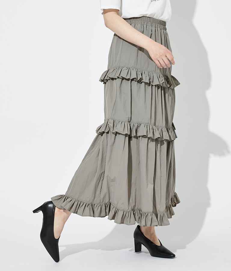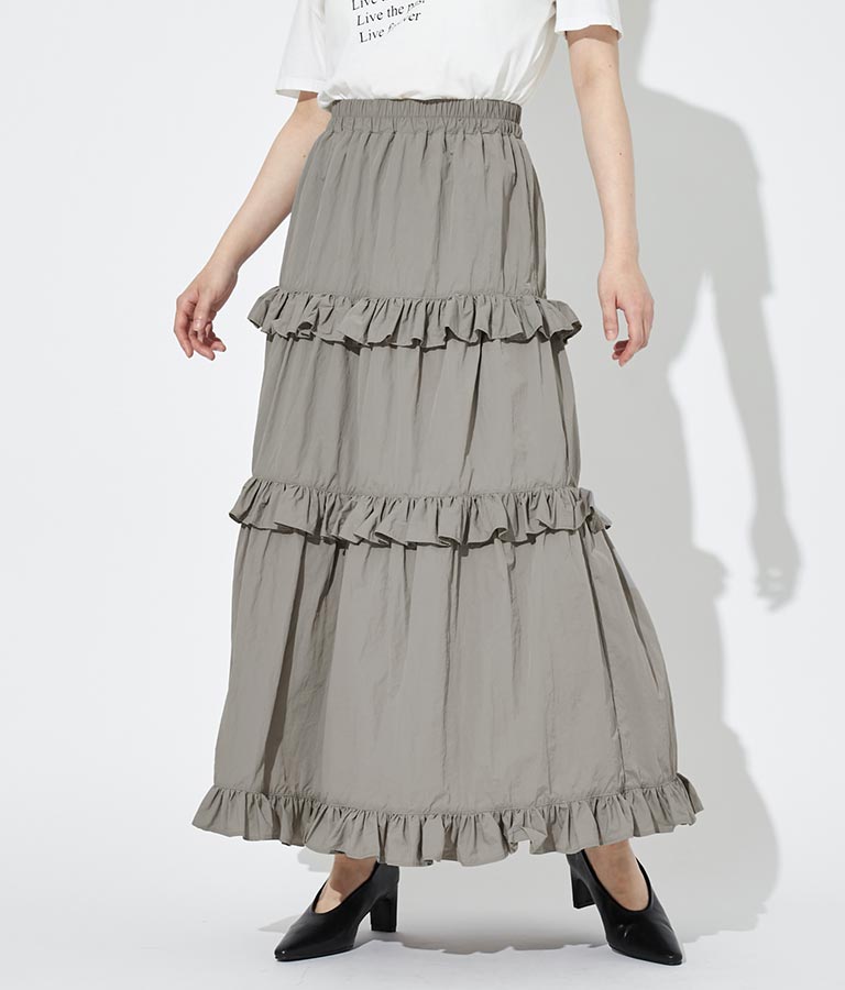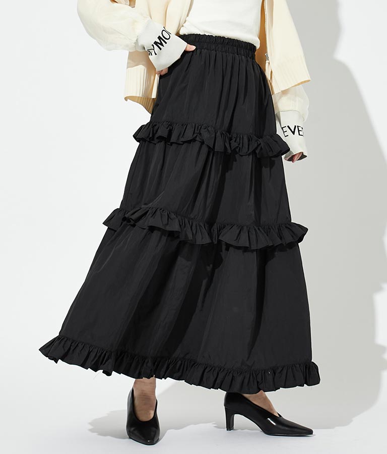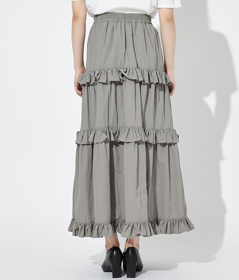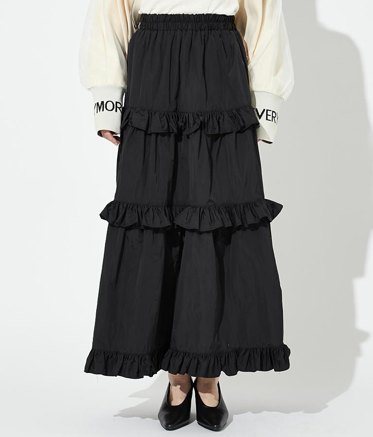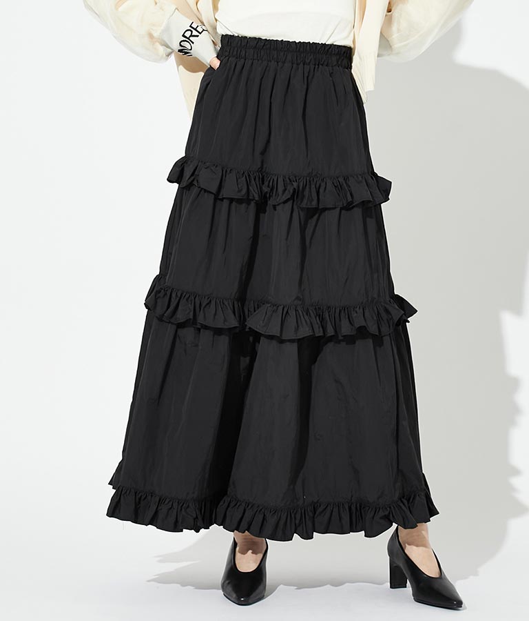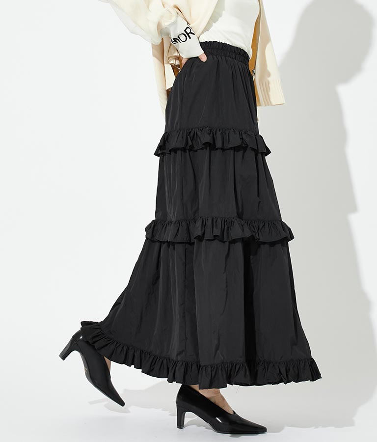 ナイロンタフタ フリル ティアード フレア スカート 361-9404
