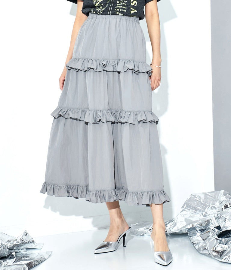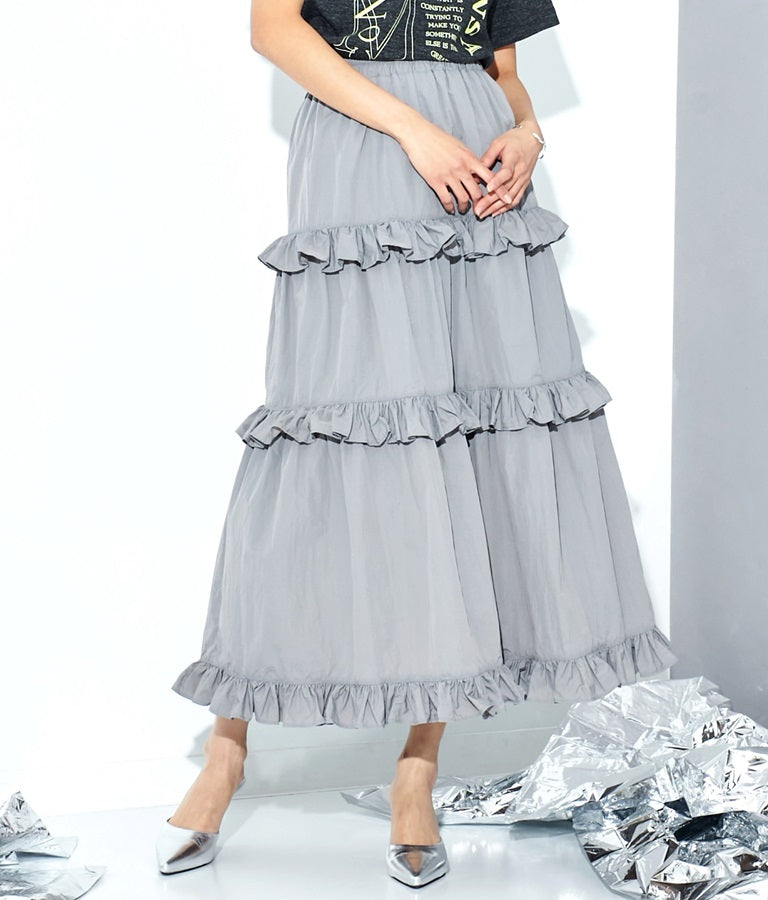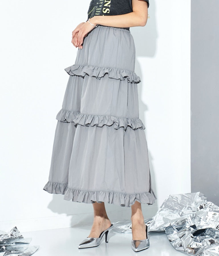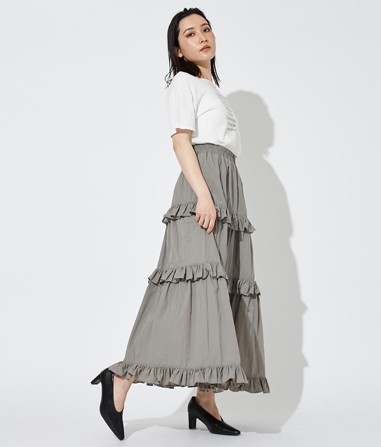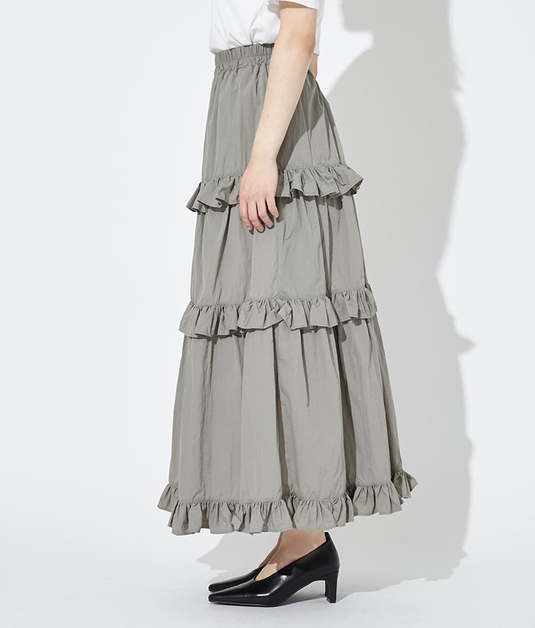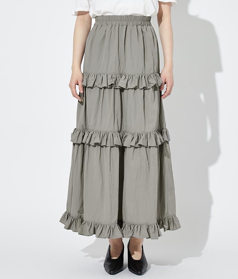 ナイロンタフタ フリル ティアード フレア スカート 361-9404